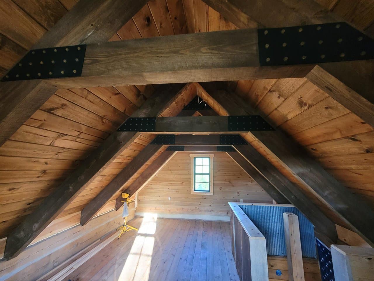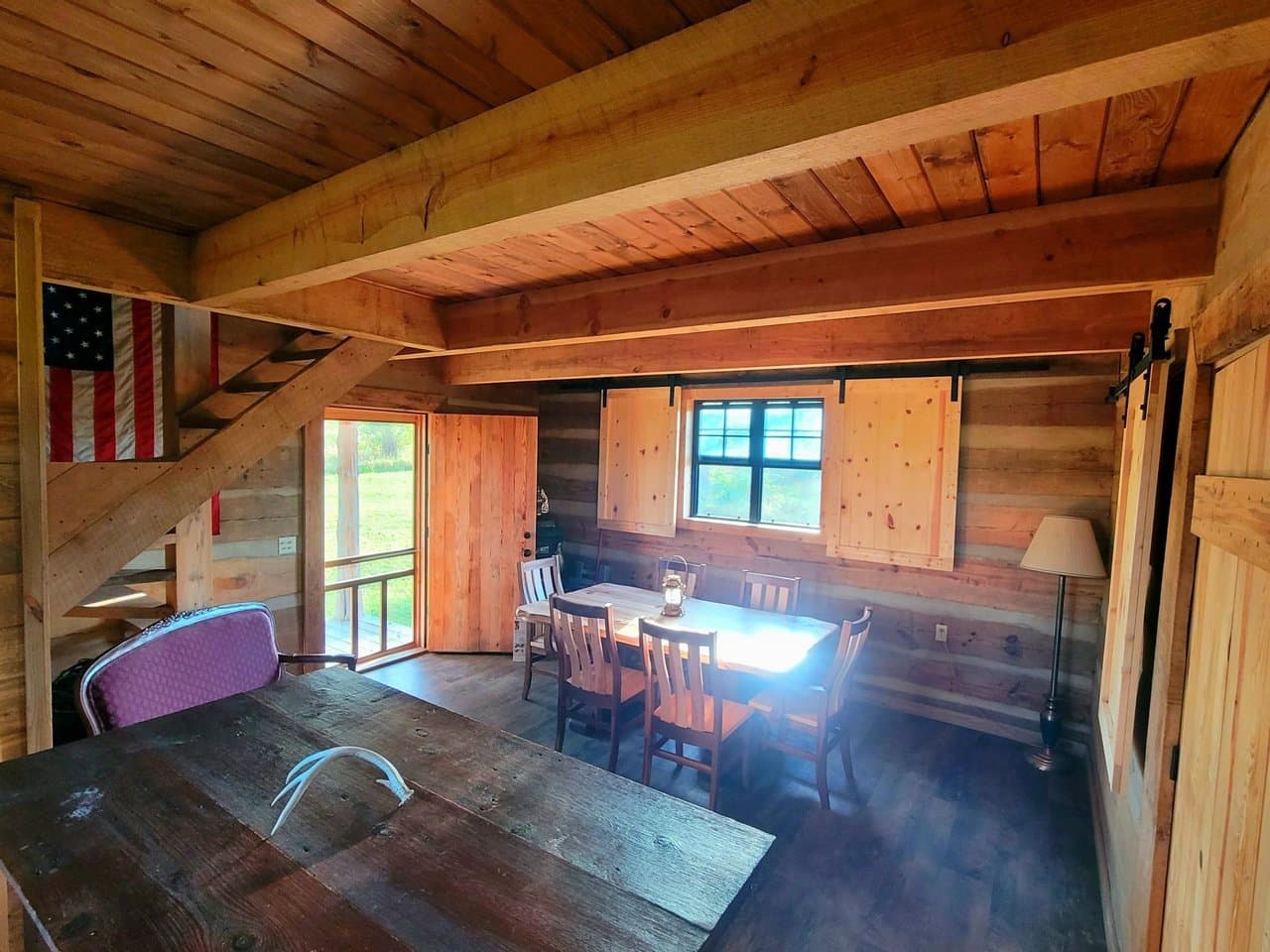 Where are the tiny home and conservation lovers? Just in time for the beautiful fall season. This property features a gorgeous timber frame log cabin that has around 600 square feet. It has all of your modern-day conveniences like electric, well and a septic tank. Inside you'll find a kitchenette, full bathroom and living area along with sleeping quarters upstairs.