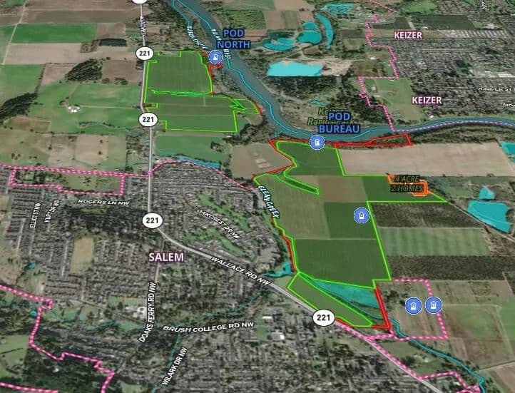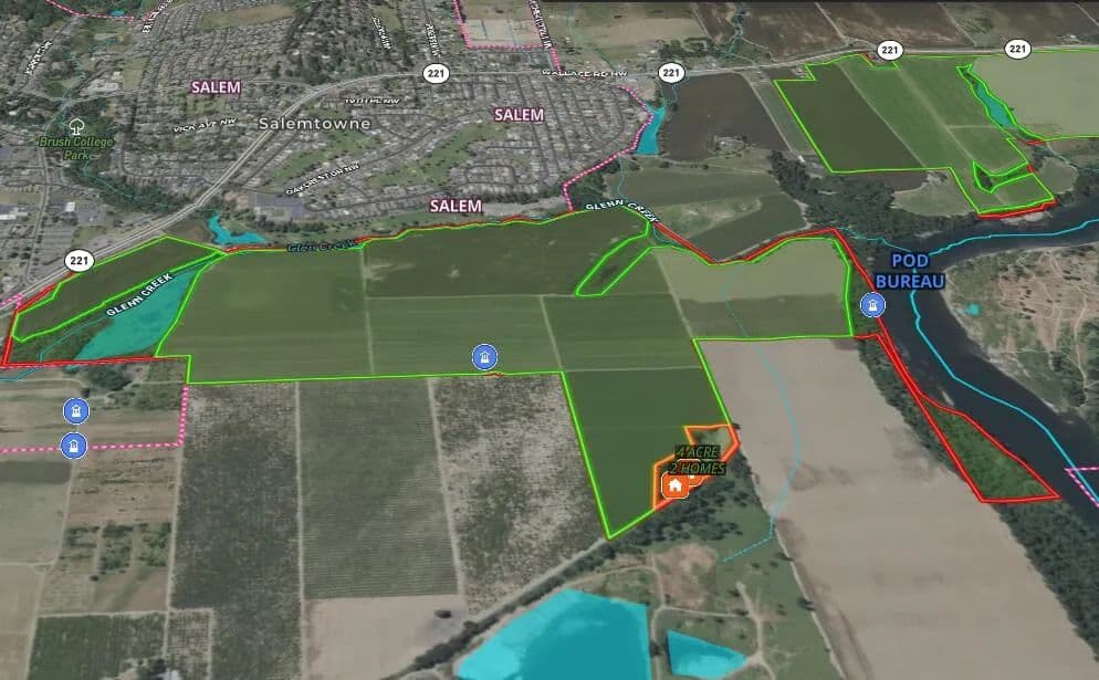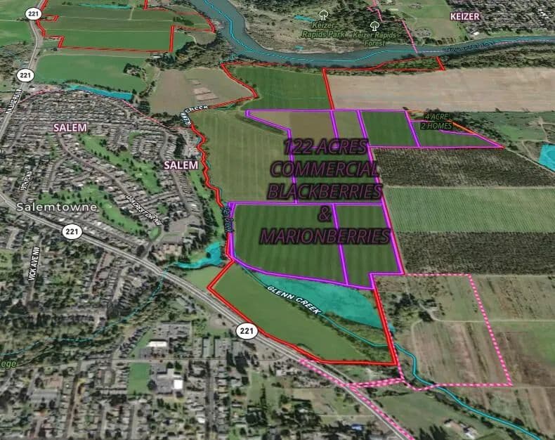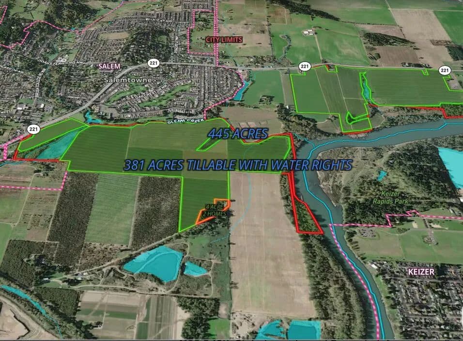 This 445-acre Willamette Riverfront Farm offers 381 tillable acres with top-tier soils and double-covered water rights, making it ideal for blueberries, hazelnuts, row crops, or any high-value agriculture. Strategically located in the path of progress, a significant portion of this farm presents a generational opportunity for absorption into the City of Salem Urban Growth Boundary. This is a rare opportunity to purchase a productive farm with the rare opportunity to expand future generational wealth. This unique farm comes in two separate blocks that have distinctly different opportunities. Both have top tier soils and excellent water rights.