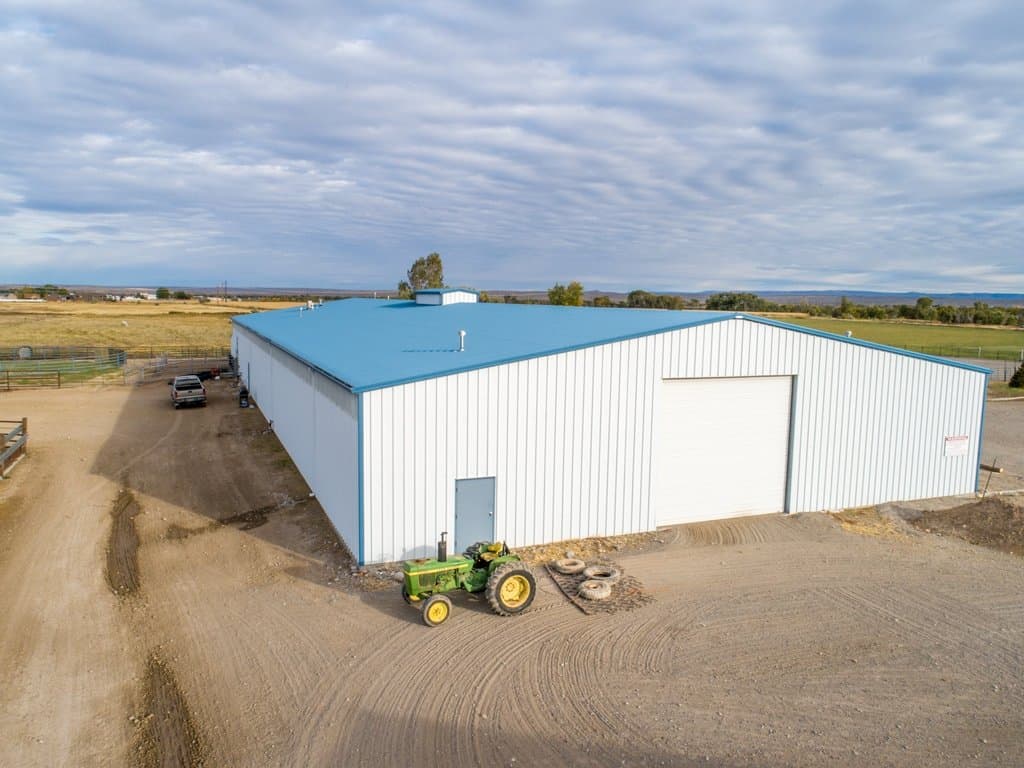 Equestrian Facility, state of the art 80’x200’ steel structure with 80’x 144’ indoor arena with living quarters, overhead radiant heat , Halogen lighting, indoor and/or outdoor wash stations, 6 Preifert Premier horse stalls w/ outdoor runs, tack room, storage/maintenance room, intercom system, ½ bath with laundry, observation deck, and outdoor patio. An optional 160’ x 240’ outdoor arena and separate 68’ round pen for training and warm ups. 7 stock water stations each facilitating multiple paddocks & pastures. Several support buildings & 3 grain bins for equipment, feed, stable bedding, and machinery storage.