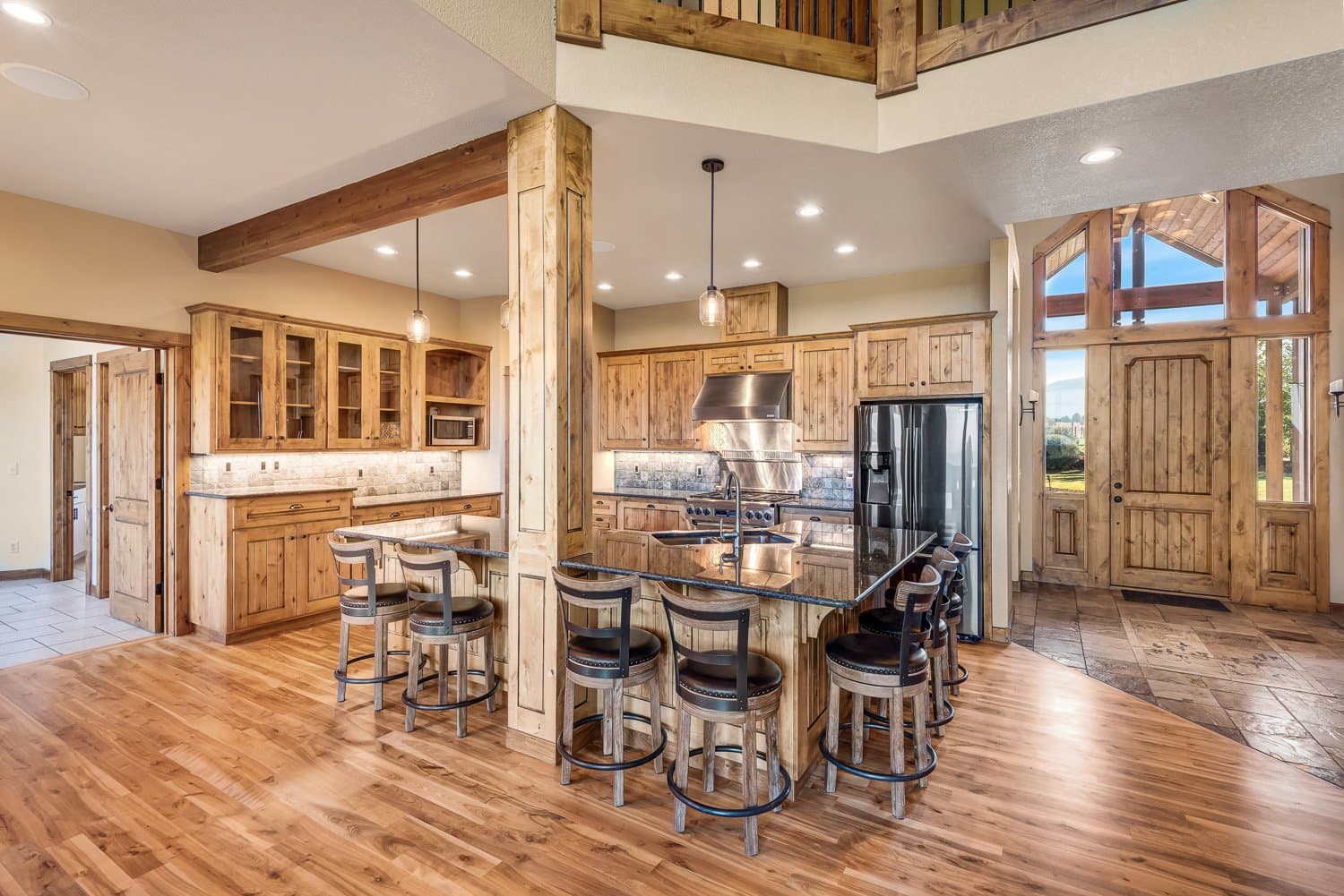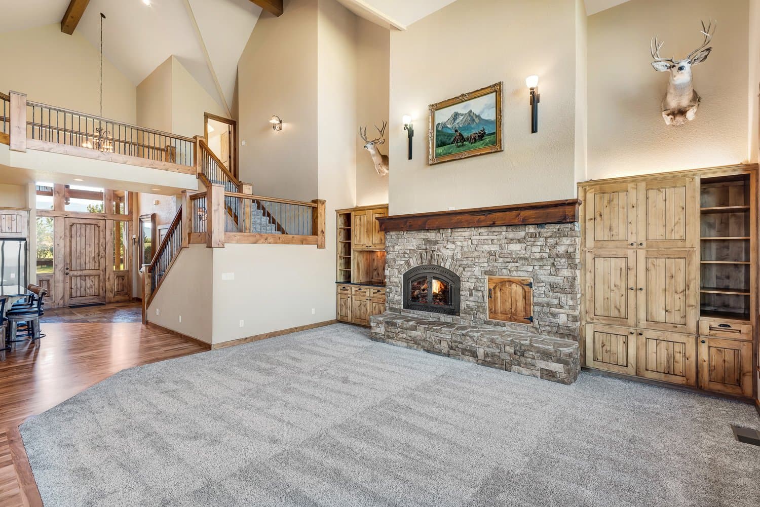 The home boasts a large bonus/family room, granite countertops, a dedicated office, and a cozy rock fireplace. Recently updated, it now includes Energy Star windows, refinished hardwood floors, new carpet, a heat pump, garage doors with openers, upgraded bath fixtures, and fresh exterior paint. Designed with both comfort and convenience in mind. For equestrian enthusiasts, the barn includes a tack room, overhead hay storage, and a covered feeding area, complemented by well-maintained corrals. A paved driveway offers easy access and plenty of room for vehicles and trailers.