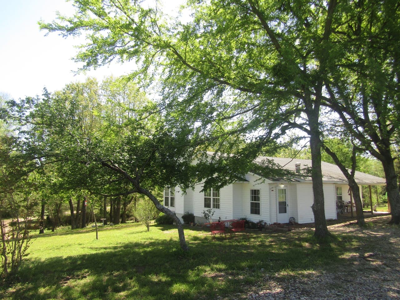 NEWLY RENOVATED , this County Gem is privately located on HWY 271 between Antlers and Hugo, Choctaw County on 5 beautiful acres. This newly renovated 3 bedroom, 2 bathroom home boasting 2104 sq. ft built in 2013, with well water and PSO electric throughout is tucked away in a nice neighborhood off the beaten track adorned with fruit trees of plum, mature pecan, and other native nuts & berries for the wildlife to eat to their heart's content. I noticed a narrow corridor where the whitetail deer are traveling through with an amazing canopy of the fall foliage creating a picture perfect backdrop reminding me of something you's see upstate New York or in the Berkshires. Open-living- concept which allows full view of the the kitchen including center isle with large sink, dinning and living room giving you that cozy country comfort feel wonderful to entertain the relatives during the upcoming holidays. 2 smaller bedrooms with shared bathroom, Master bedroom with bathroom, but what really attracted my attention are the large bay windows in living room and sun room displaying the scenic views of the lush picturesque landscape and colorful changing of the leaves. The property also offers a 16 x 12 storage shed for your storage needs, or you could convert this into the perfect man-cave of she-shed for arts and crafts and dried flowers. This 5 acres offers offers an abundance of wildlife so birdwatching, whitetail deer gazing and other indigenous wildlife is not an issue on this property. While I walked around with Lucy, the Seller's amazing cat while taking photographs, she shared with me all of her the secret areas and lead me right down the path to the storm shelter as we sat on the bank of the creek which must be spring fed because it didn't run dry at during this unusual dry spell we're just coming out of. So wonderfully private and secluded tucked off HWY 271 creating this as an ideal location to jump off the HWY and retreat in the seclusion of your home. It's truly a wonderful space with so much potential to create a outdoor fire pit and grill for your private parties outside. This is definitely a MUST-SEE property if you're looking for a property which has easy access yet is so tucked away that you almost can't see it exists. The newly graveled road meanders in an S-curve so you can see anyone coming over before they arrive at the house. Easy access to Dallas TX Metro area with just a 2.5 hour drive; 2.5 hour drive to Oklahoma City; 1.55 minutes to Mena Arkansas; and 45 minutes to Hochatown Oklahoma's new resort and vacation area. Great price for a property with so many amenities and expansion possibilities, don't delay and make that call today!