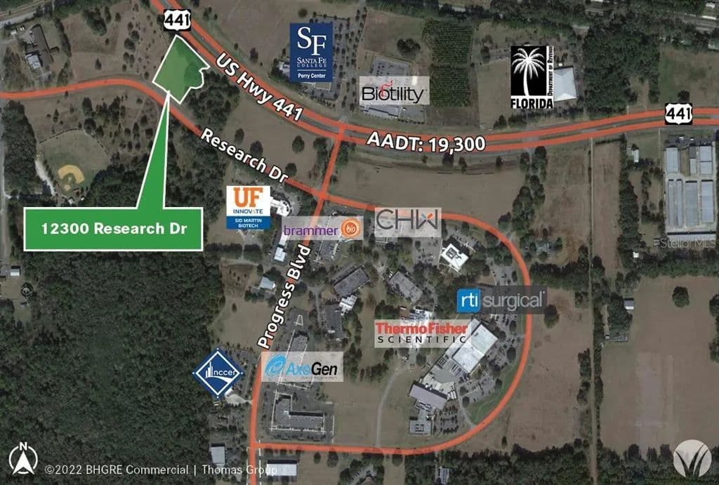 Prime 2+ acre lot suitable for office, research, lab, bio-tech, etc. with US HWY 441 visibility in the heart of Progress Corporate Park. Minutes from I-75, Progress Park is located along the fast growing US Highway 441 corridor, just a short drive to Gainesville. Progress Park is home to many global leaders in the professional and biomedical industry, such as RESILIENCE, RTI Surgical, University of Florida Sid Martin Biotech, CHW, FAME, Firebird, Particle Solutions, NextGen, Flucell, and AxoGen. Available upon request, existing due diligence materials include civil, geotechnical, and architectural plans for multiple buildings totaling 18,000 square feet. Centrally locate your headquarters in the heart of the Alachua Tech Corridor and position yourself for years of future growth with this fantastic property!