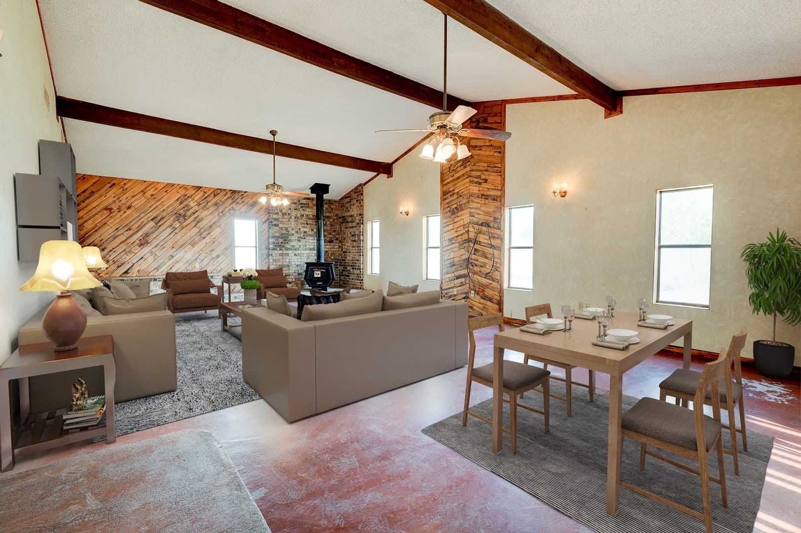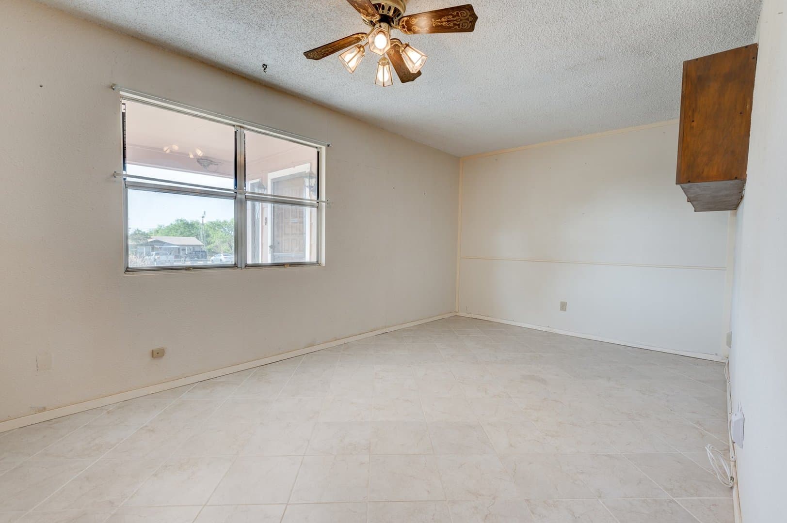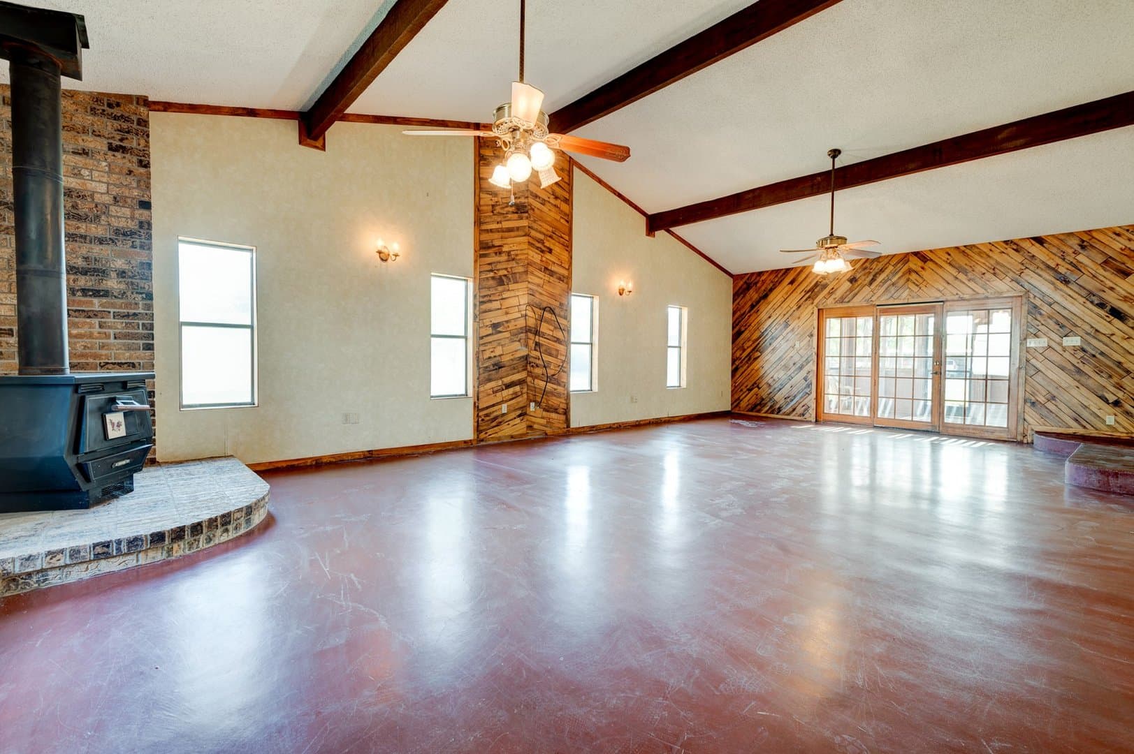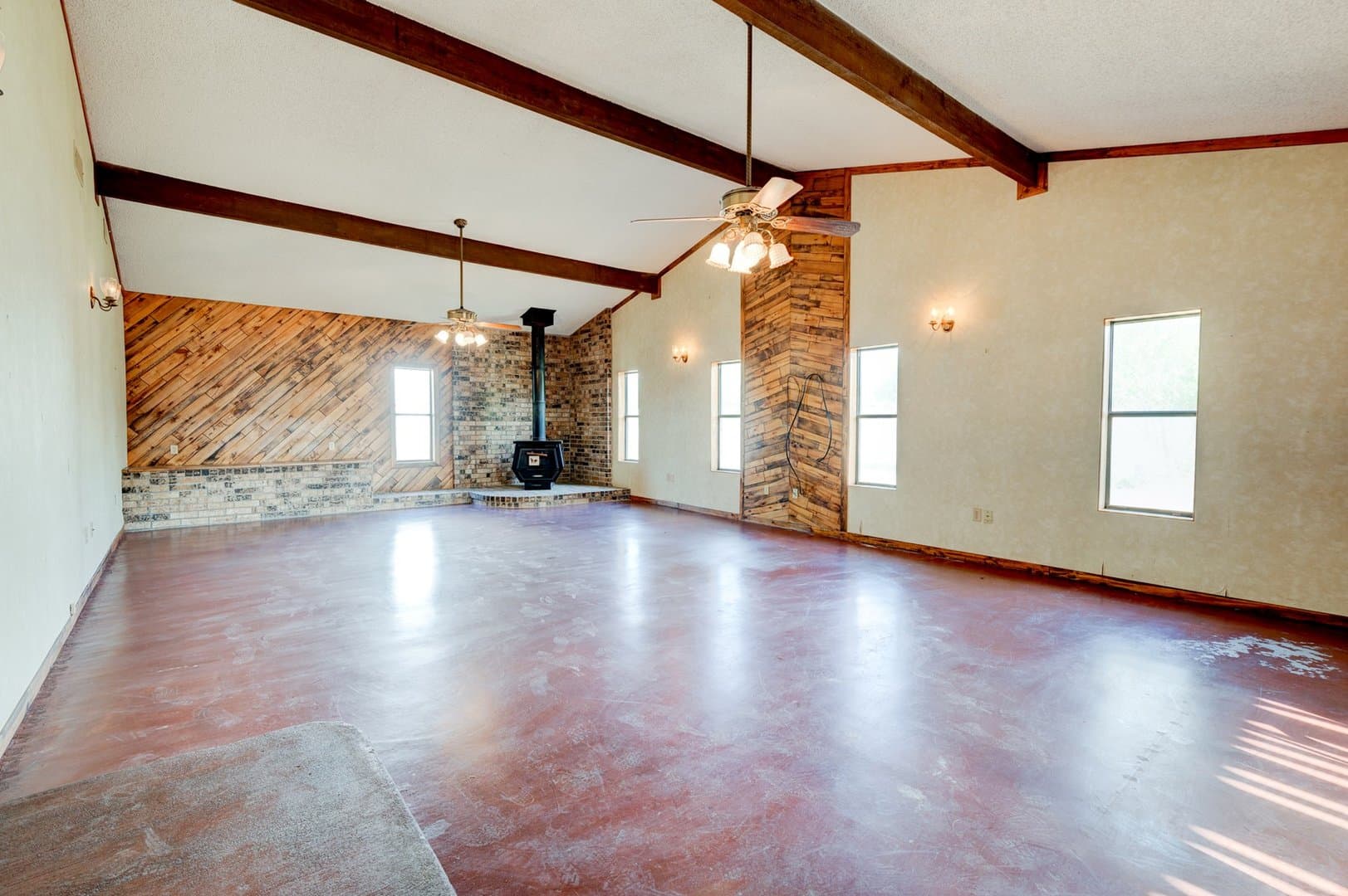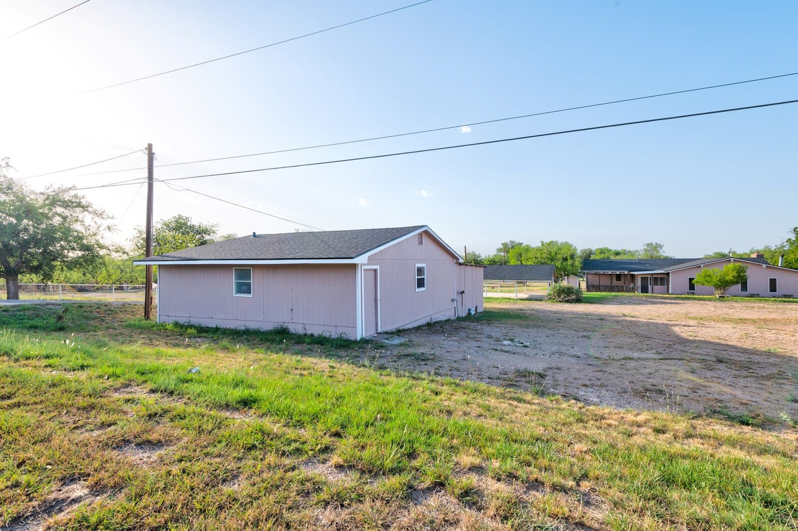 This wonderful, large 4-bedroom 2-bath home sits on one full acre of land with 3 water wells, workshop, carport, and more near Spring Creek in Mertzon, Texas! It is located just outside the Mertzon city limits in Irion County in the community of Sherwood. The home has tile floors, a large kitchen, a large den with a vaulted ceiling and wood-burning stove, a nice sized living room with a bay window, and a wood-burning fireplace. The bathrooms have been recently remodeled, and the roof was recently replaced. The workshop has an extra room and a one-car garage. It has a large overhang for trailers and equipment and there is a nice sized carport as well as extra storage and a screened-in porch.