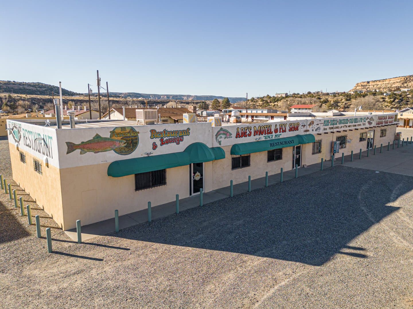 Abe’s Motel and Fly Shop has been a staple of the NM fly fishing scene on the trout mecca that is the Quality Waters of the San Juan river since 1958. This successful family-owned business includes a fly shop, motel, RV park, grocery store, gas station, restaurant and lounge conveniently located just below the Navajo Dam in northern NM. Land Abe’s is located on 8.14 acres in the high desert beauty of San Juan County, NM. Surrounded by sage brush and pinion-covered high mesas, cliffs, and valleys, the sunrises and sunsets are breathtaking with colors that have to be seen to be believed.