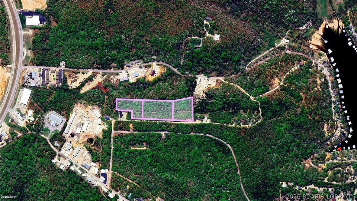 Ready to invest or develop? This 7.67-acre tract on the edge of Osage Beach offers a rare opportunity for small acreage so close to town. With over 950 feet of road frontage, the land is a mix of gentle, moderate, and steep wooded terrain—perfect for creative development or a private retreat. Located just minutes from Hwy 54 and a short drive to shopping, dining, and all that Osage Beach has to offer. Potential for 20+ home sites or design your own layout. Surrounding area features charming homes and a quiet setting, while still being close to conveniences. No utilities currently in place—bring your vision and plans! Currently zoned I-1. Zone down for residential or leave it as it is and use it for light industrial.