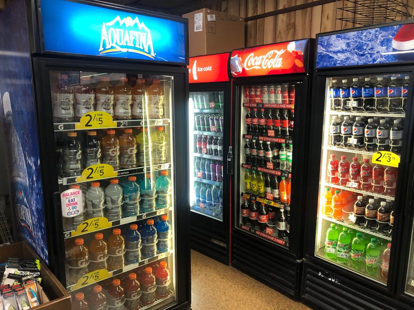 All coolers, freezers, shelving, live bait tanks, permits, and equipment except for the coolers that coke and pepsi own will transfer.