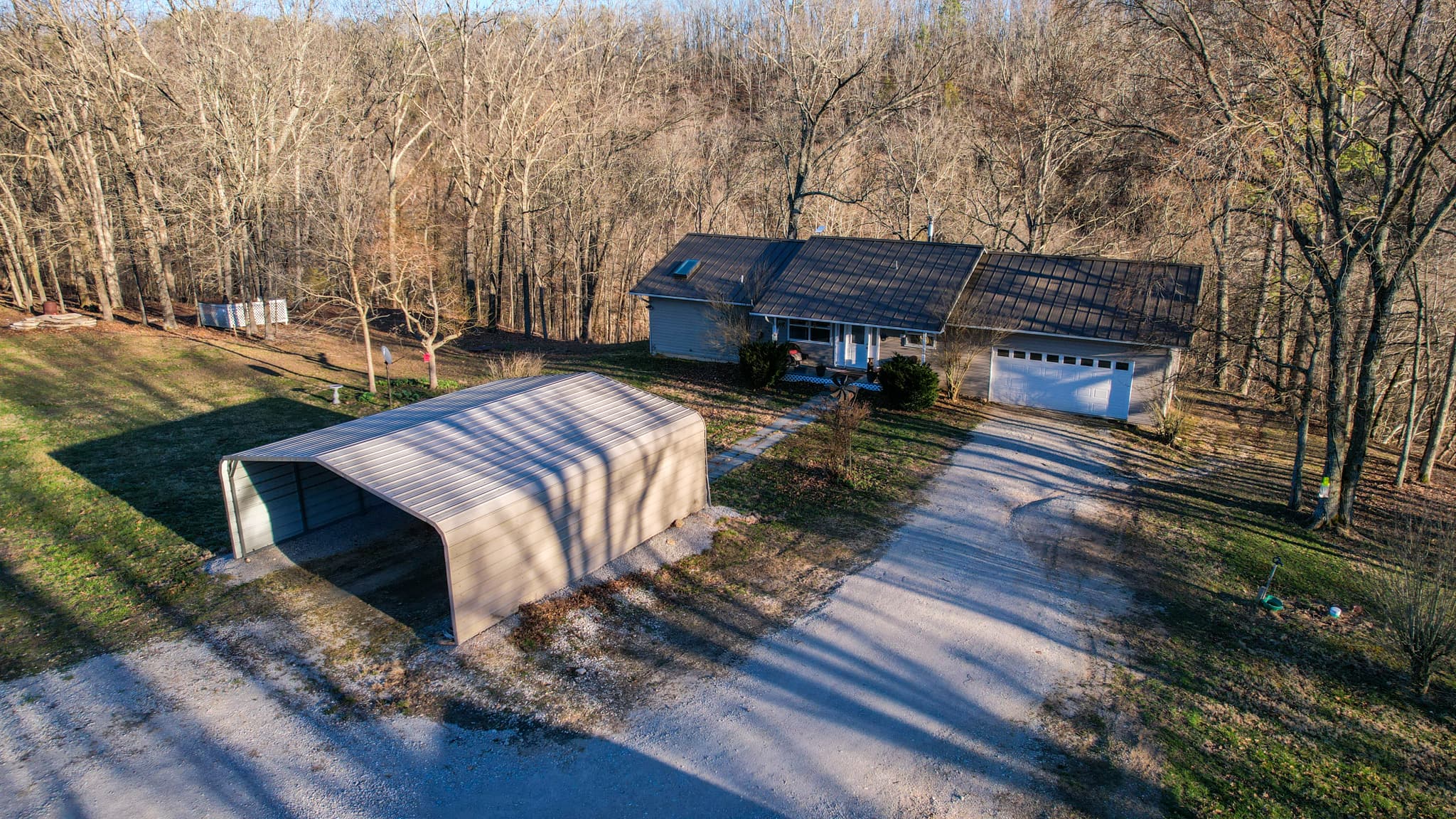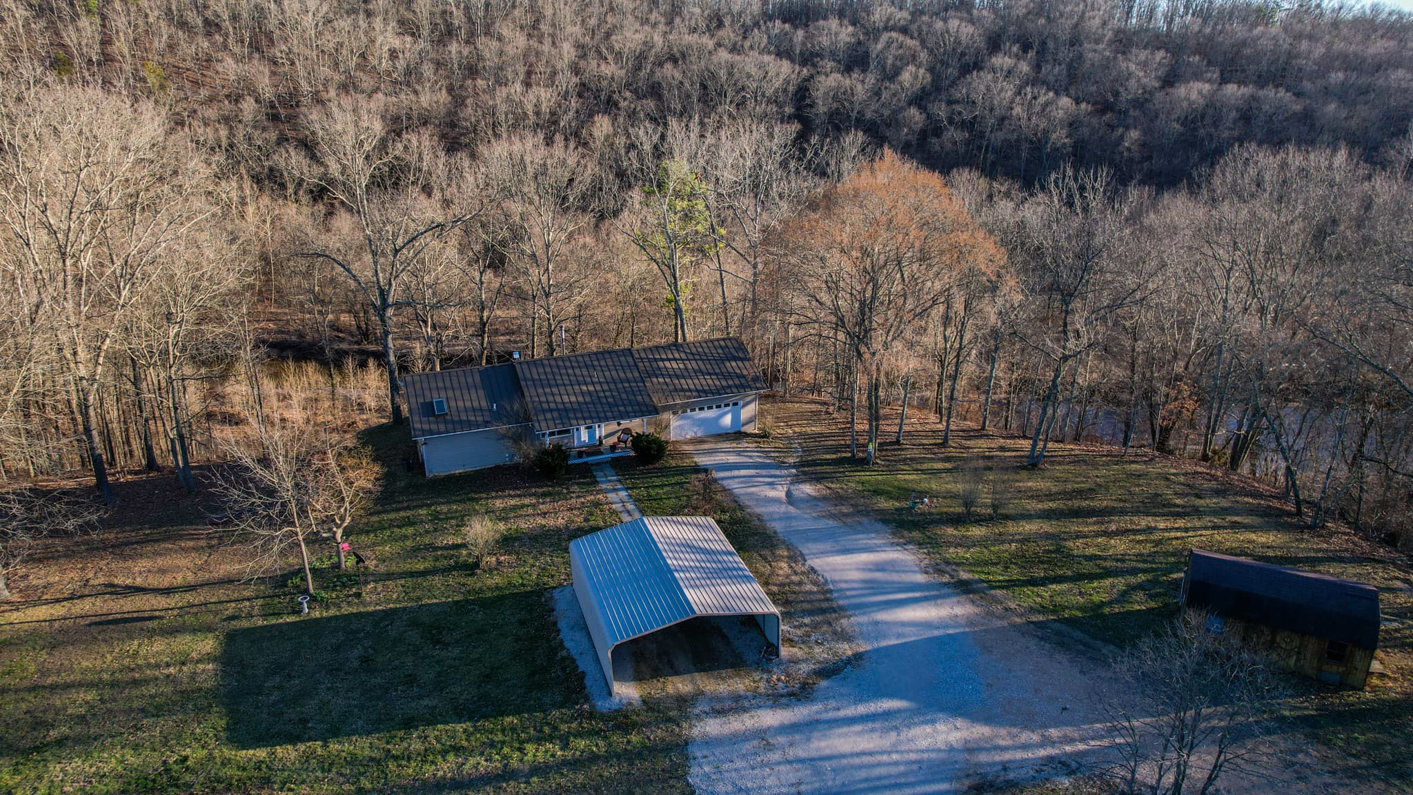 Improvements The ranch style home on Pine Creek Ranch is situated at the end of the 3/4 mile long driveway offering incredible privacy. The 3 bed, 2.5 bath home spans 2,240 square feet and sits on a fully finished basement. It was beautifully updated in 2021 with new countertops, flooring, sheetrock, cabinets, a walk in shower, just to name a few! The main level boasts a gorgeous open concept kitchen, living room, and dining room. Just off the kitchen is a large deck that overlooks the creek and is perfectly suited for grilling and entertaining guests. Also on the main level is the very spacious master bed and bath that features a large walk in closet. The master bedroom has a small walk out porch that is ideal for drinking coffee in the mornings! There’s also a half bath, laundry, and a room that would be ideal for an office space. The basement features 2 bedrooms, a large living space, bathroom, utility and a large utility room that also has laundry hooks ups as well. The basement would make a great space for a mother in law quarters. Just adjacent to the home is a large pole barn with stalls, a storage building, and a carport. Also on the property is a chicken coop and hay barn. Pine Creek Ranch is a one of a kind property located in the Heart of the Ozark Mountains! Call today for your private showing!