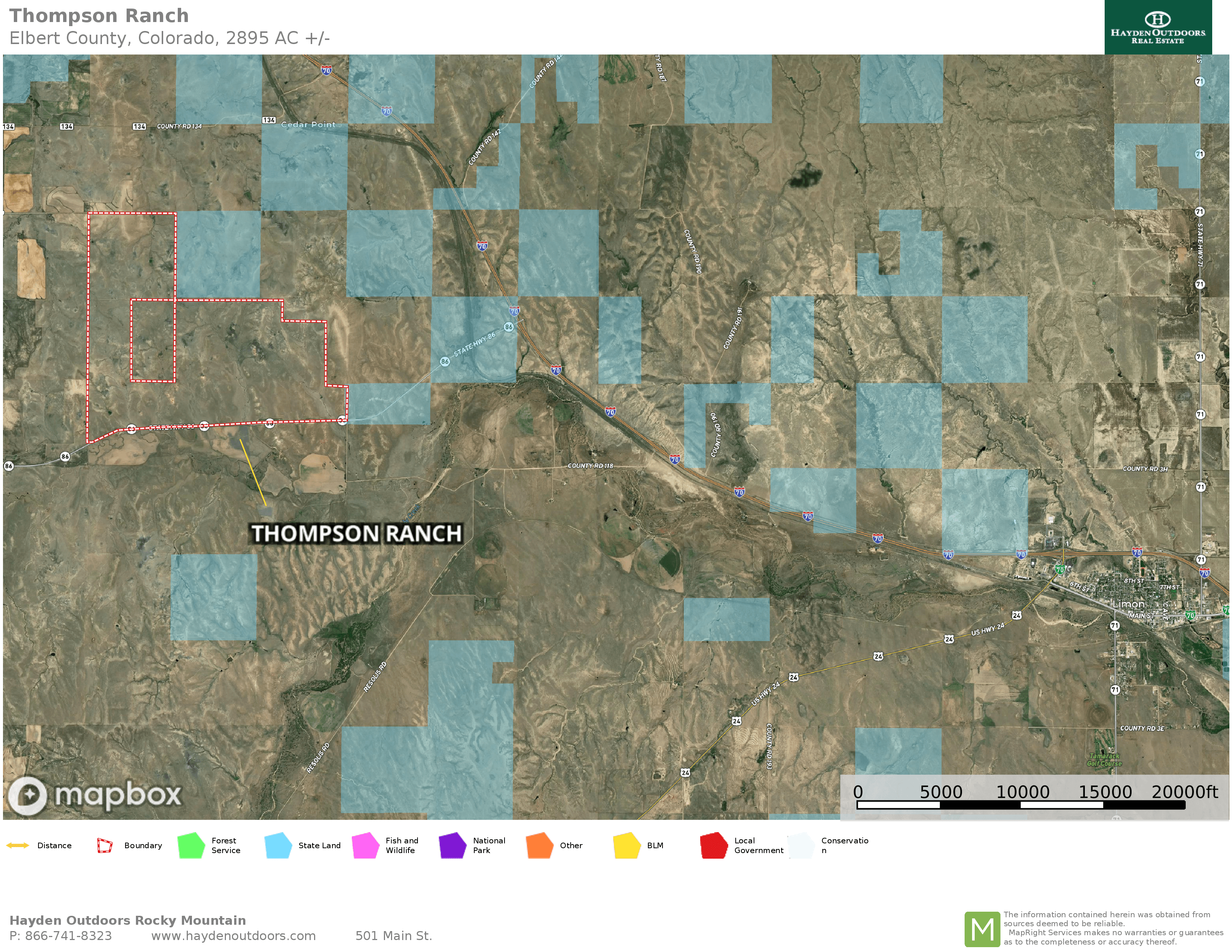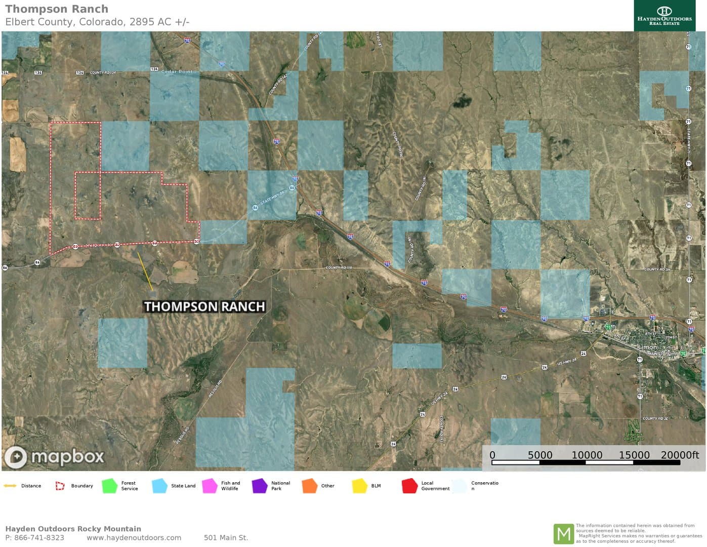 The Thompson Ranch North is located Northwest of Limon Colorado and consist of 2895+/- deeded acres. The ranch is located just North of Hwy 86 offering tremendous access off a black top highway and minutes from Interstate 70. With the abundant snow fall from this past winter, the Summer grasses will be bountiful, and stock damns recharged. Land It is rare that a large contiguous ranch of this caliber comes to market in this region of Colorado.