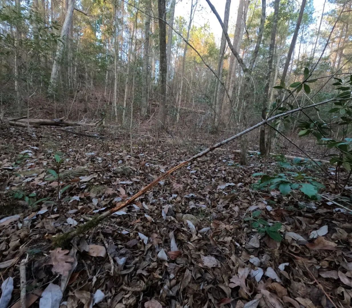 One of the standout features is a small spring-fed branch that provides year-round water, a critical element for wildlife and an increasingly rare natural asset. This water source enhances the property’s appeal for deer hunting, supporting consistent game activity throughout the seasons. The terrain gently transitions from sloping hills to hardwood bottoms, creating natural travel corridors and ideal stand locations.