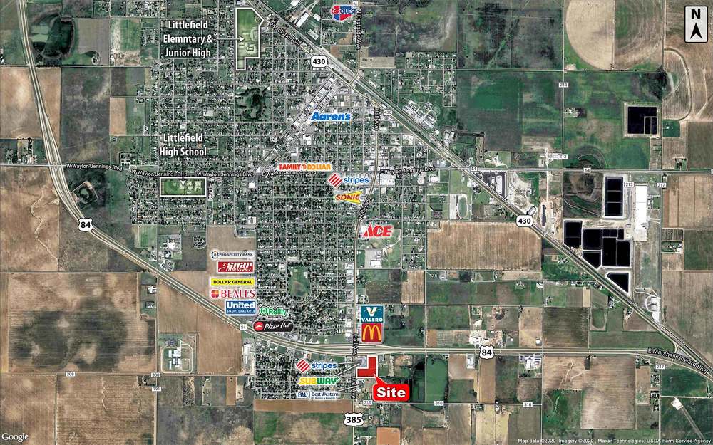 A development tract available in one of Littlefield’s best retail locations. This tract is conveniently positioned at the intersection of the main highway and a main arterial road. This tract sits on highway 84, which is one of the main passages between Texas and New Mexico. This tract is 20 minutes away from Levelland, TX and 30 minutes away from Lubbock, TX. Property is not in the floodplain. Zoned C1 - Commercial (city allows for 100+ uses under C1 zoning).