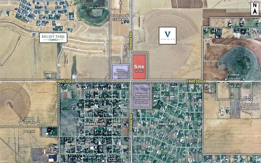 A large development tract in south Lubbock on the edge of the city limits. Conveniently located in the Cooper School District by the newly developing Kelsey Park subdivision.