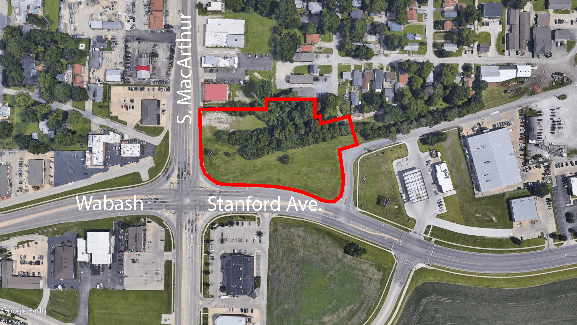 This property is a 3.4 acre premium development site at the intersection of Wabash/Stanford and S MacArthur Blvd.