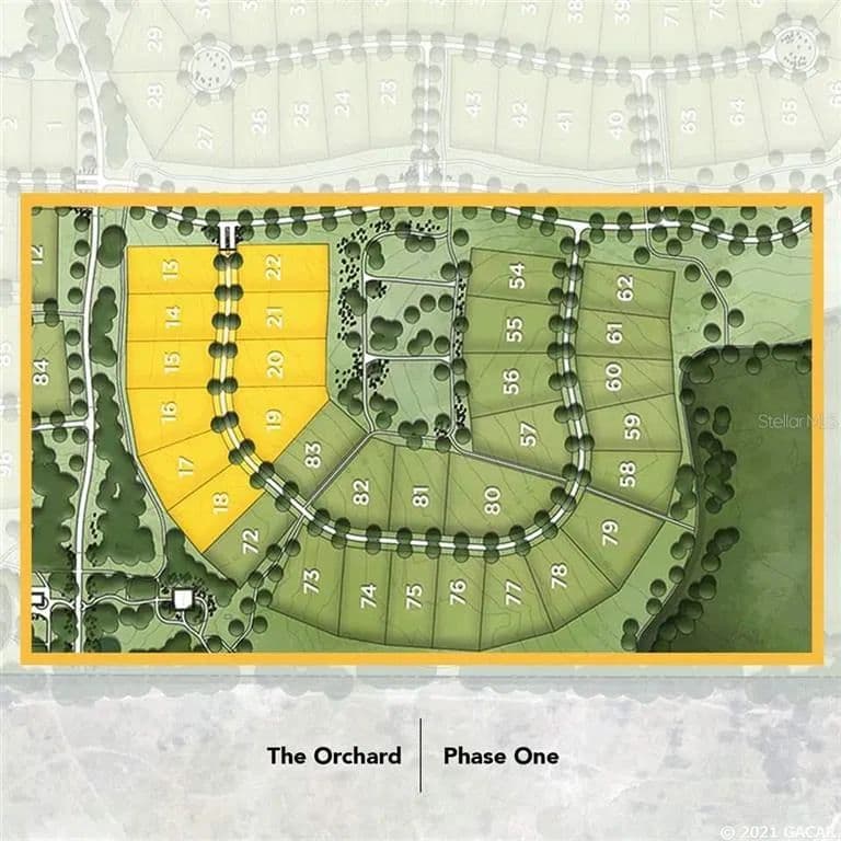 Lot 13 is a one acre corner lot that expands 150 feet across its rear property line. With a south facing front yard, its backyard abuts a large greenway. Gainesville's first Agrihood, Flint Rock promotes a lifestyle of healthy living and wellness, carefully crafted to embrace the farm-to-table lifestyle. This luxury residential community is centered around its recreational spaces, nature trails, gardens, orchards and conservation preserve. With 2.5 miles of walking paths and expanses of land, its residents will enjoy more green space than your average Gainesville subdivision. Owners will have access to their Event Barn, a unique venue for hosting outdoor activities. The Residents' Farmhouse offers a catering kitchen with spacious indoor gathering areas, surrounded by a fire pit area for casual outdoor entertaining. Offering expansive green space, The Orchard gated subdivision has a unique U-shaped center that is almost 9 acres in size, featuring a collection of fruit and nut bearing trees along paved community walking paths.