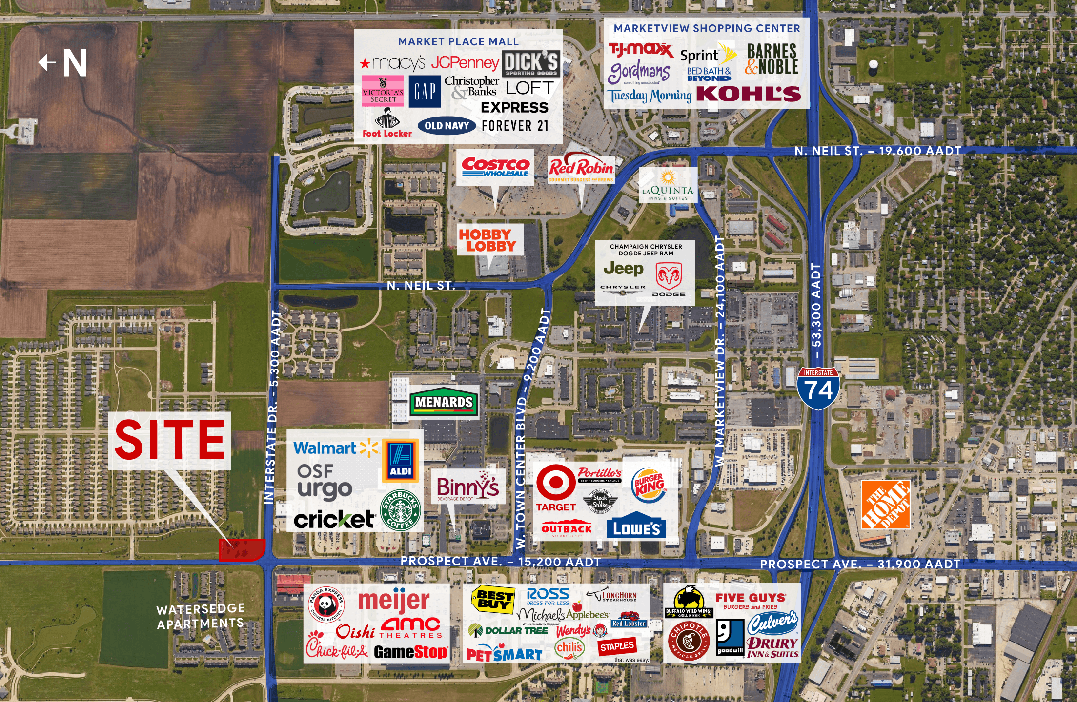 This 1.25 acre site is ready to be developed with all utilities to the site. It provides the developer with 343 ft. of frontage along the N Prospect retail corridor and 139 ft. of frontage on Interstate Dr.