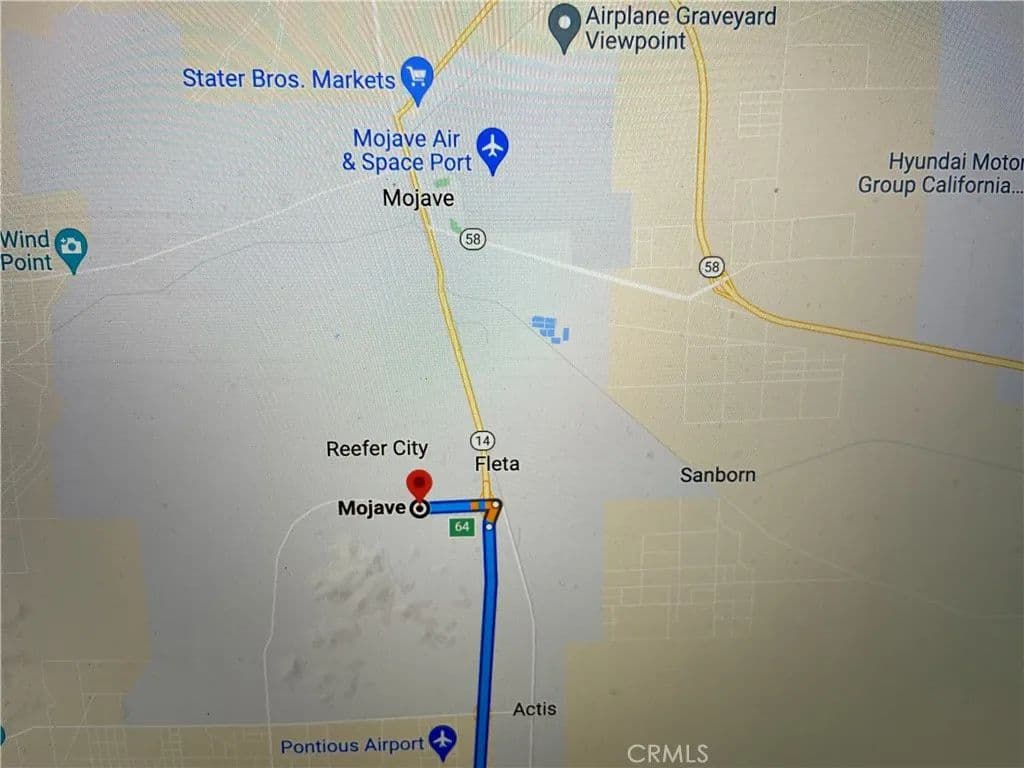Seller financing available if needed for the 7.5 acres land in the city of Mojave close to Rosamond.Palmdale California. The property is near Pontious Airport, Mojave Air and space Port, hotels, shopping, restaurants. Directions are at Palmdale starting point. Head east on E Palmdale Blvd toward 9th St E 0.1 mi Make a U-turn at 9th St E Pass by Domino's Pizza (on the left in 0.2 mi) 1.0 mi Use the right lane to take the CA-14 N/State Route 138 W ramp to Mojave 0.3 mi Merge onto CA-14