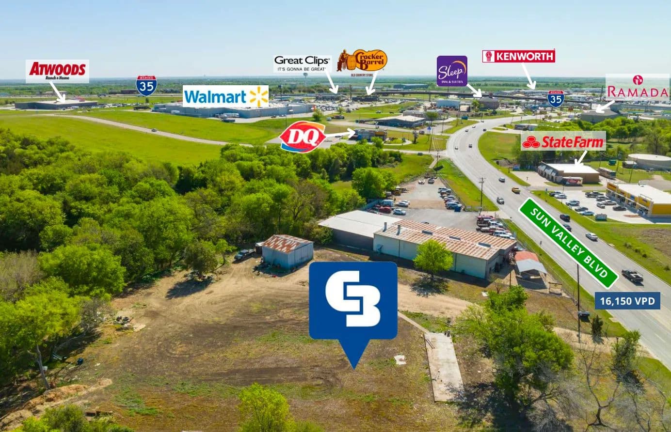 Sun Valley Boulevard is a major thoroughfare between I-35 and Hewitt Drive in the rapidly growing city of Hewitt. The combination of heavy local traffic, proximity to schools, and nearby residential neighborhoods make this a perfect opportunity for high visibility restaurant or retail development.