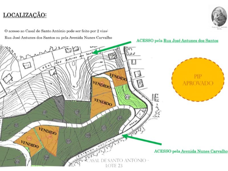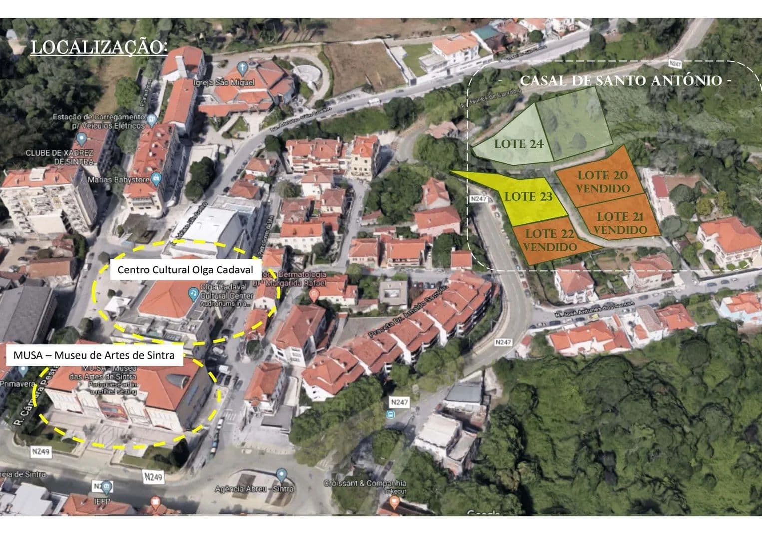 O lote está localizado numa área privilegiada, em zona de moradias, junto ao centro histórico de Sintra e junto ao Centro Cultural Olga Cadaval, a 5 minutos da estação de comboios da Portela de Sintra.