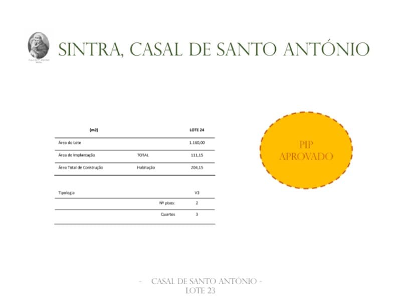 Lote 1.160 m2, PIP aprovado para construção de moradia com dois pisos e piscina, área de implantação 111m2, área total de construção 204 m2.