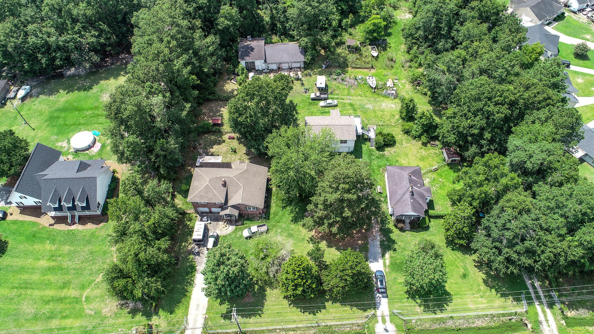 Land developers and investors! Three parcels packaged together! 10.8 acres, X flood zone. TMS #s 2210000034, 2210000057, 2210000030. Homes are being sold AS-IS. There is the main brick house, smaller rental house, four door garage with apartment above it, and another double bay garage behind on the two smaller lots. ZONED R1.