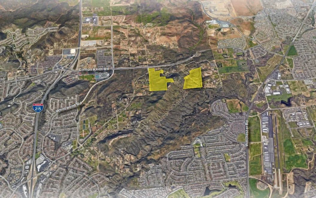 PROPERTY OVERVIEW The property consists of five parcels that make up approximately 104.5 acres of raw land in Murrieta, CA. Three of the five parcels (APN’s: 900-020-021,023,026) are adjoined starting at the intersection of Clinton Keith Rd and Menifee Rd, extending about a half-of a-mile to the south. This portion of the property makes up nearly 59 acres while the other two parcels to the east (APN’s: 900-020-014,015) make up the remaining +/- 45 acres of the property. In terms of the property’s location, it sits about 1.2 miles from the I-215 interchange at Clinton Keith Road where there is large retail presence, approximately 2 miles from Highway 79 access, and has multiple schools in a 2-mile radius. Per the Eastern Municipal Water District, the nearest water and sewer access to the site is at the corner of Whitewood Rd and Clinton Keith Road to the west of the property. The five parcels that make up the property are all zoned Rural Residential with a general plan designation for Large Lot Residential (LLR). The Rural Residential zoning is intended for singlefamily residential use with a density range of 0.1-0.4 dwelling units per acre, or rather minimum lot sizes of 2.5 acres. • LOCATION: Murrieta - Riverside County, CA • TOTAL SITE AREA: ±104.50 Acres • APN: 900-020-014, 015, 021, 023, 026 • PURCHASE PRICE: $2,900,000 • PRICE PER SF: $0.64 • ZONING: Rural Residential • GENERAL PLAN: Large Lot Residential