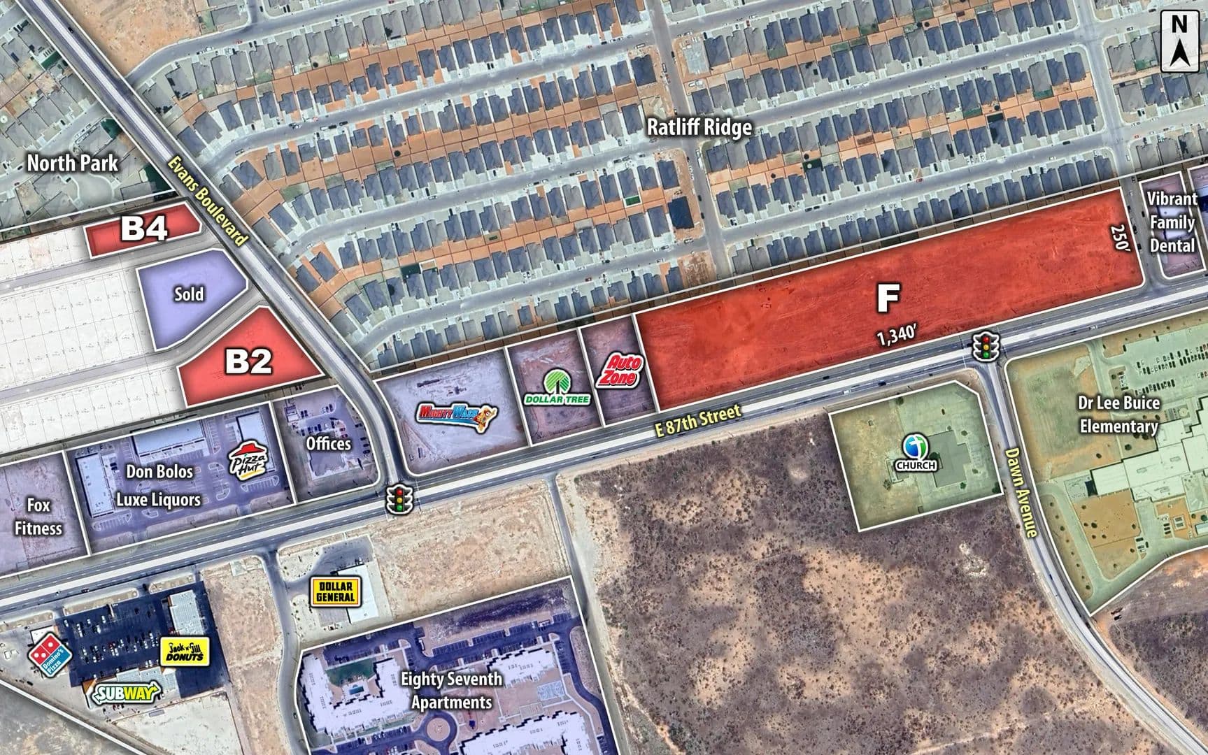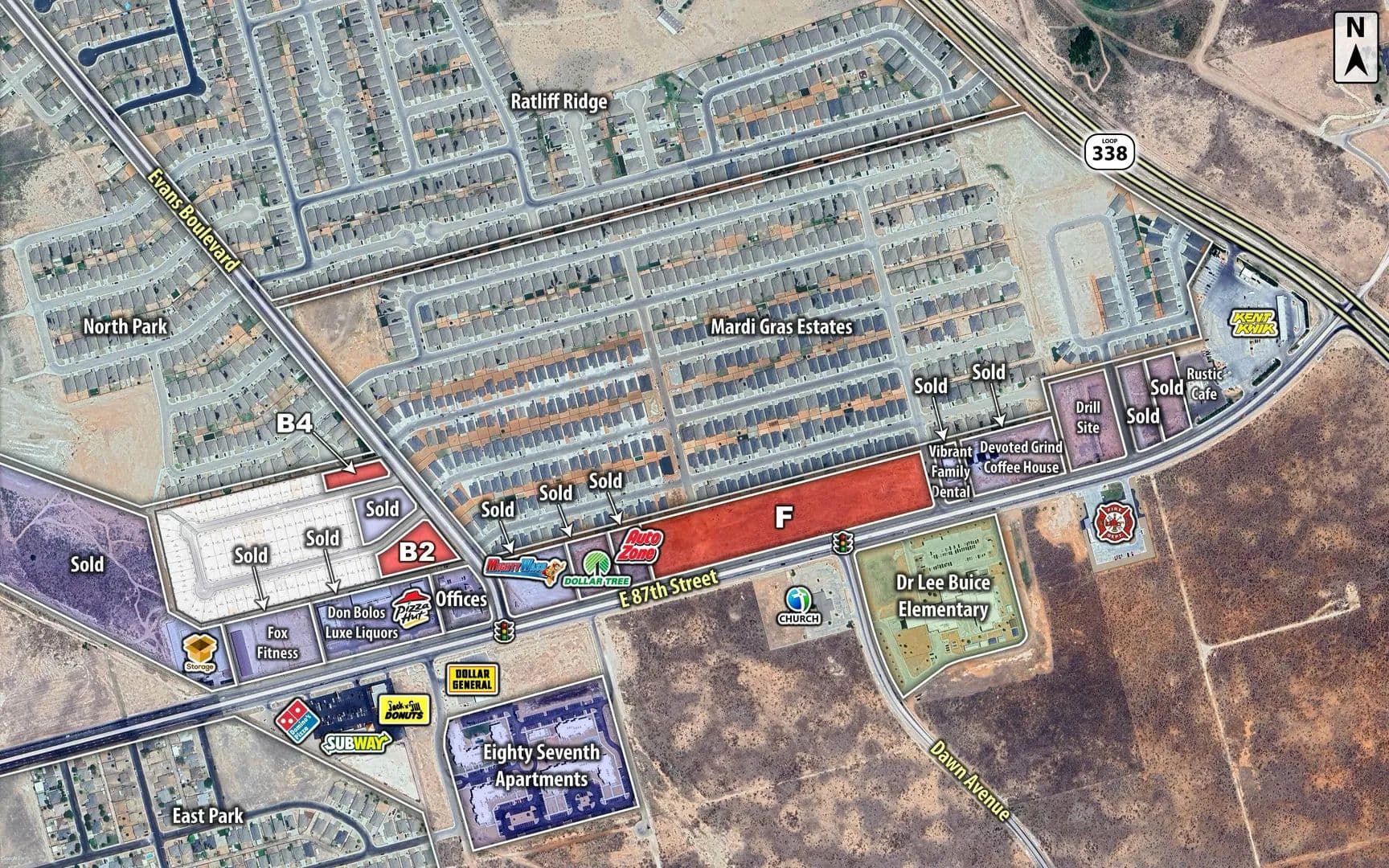 Large development tracts in the developing Mardi Gras Estates subdivision. Mardi Gras Estates offers quality and affordable new homes in Odessa, TX. This 115 acre and 560 home-site subdivision will bring themed community parks and gathering spaces, making this one of the best neighborhoods for families looking for community in Odessa. Coldwell Banker Commercial is pleased to offer 10 acres for commercial development in Odessa’s newest subdivision. Water and sewer will be brought to site and is ready for commercial development.