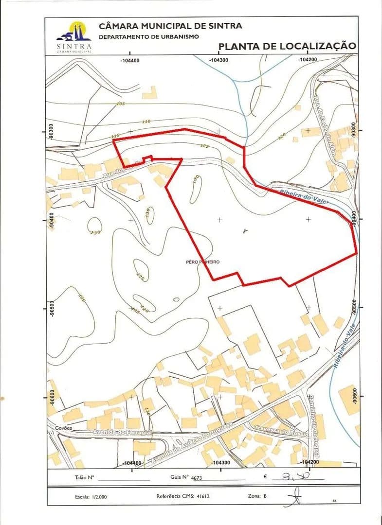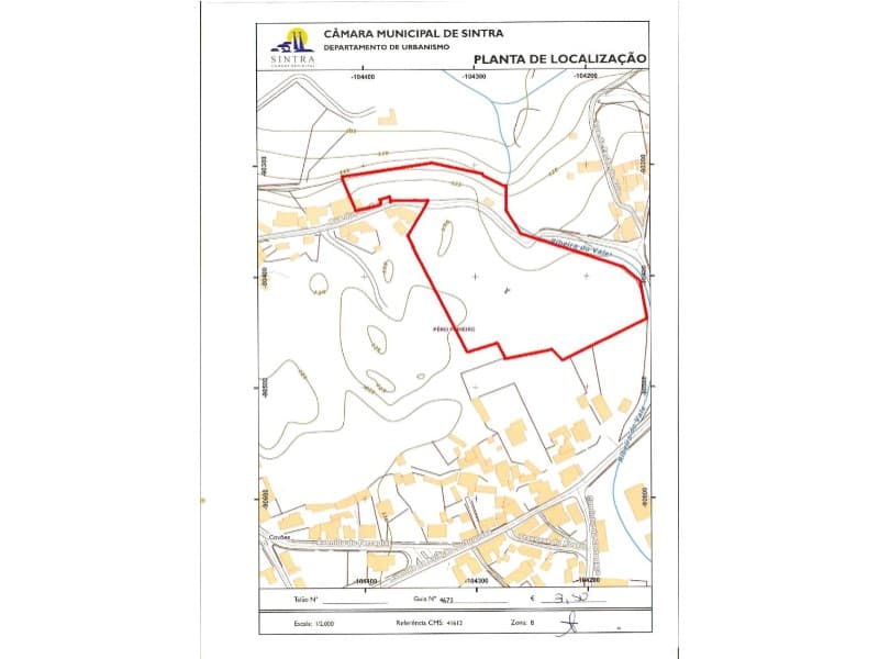 科沃斯的土地出售,兄弟。辛特拉市佩罗皮涅罗市的区域面积为2370平方米,等待回应,因PDM最后修订中请求修建城市化通道