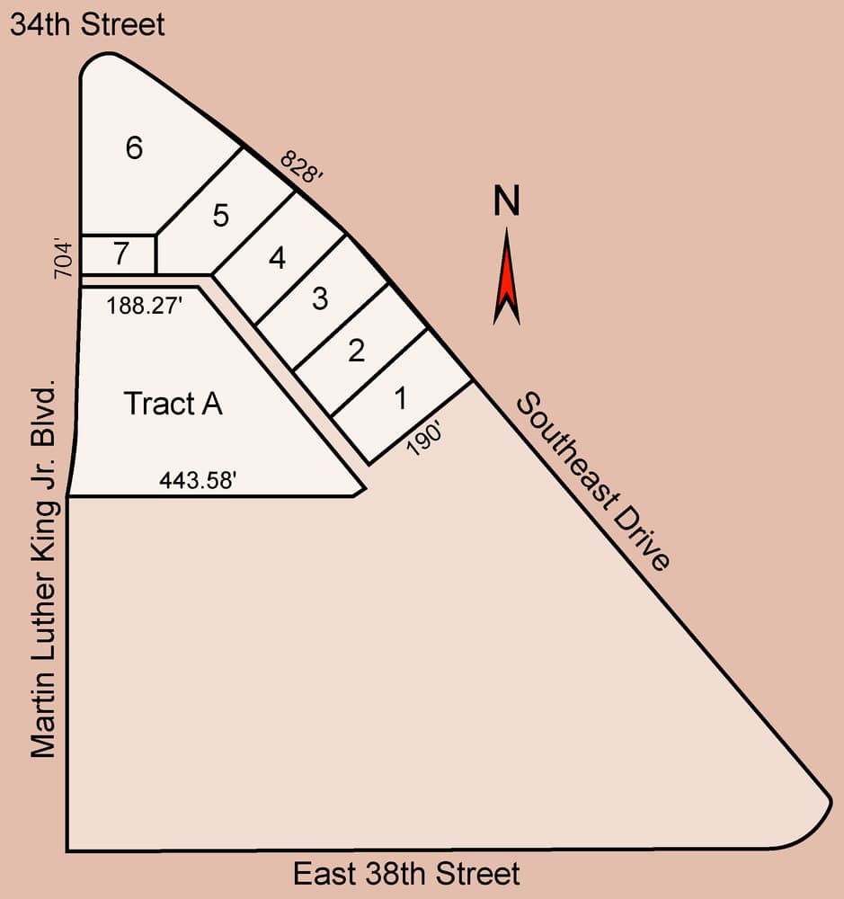 Industrial development land available for sale. This 6.246 acre tract of land located at the intersection of 34th & MLK | SE Drive & MLK provides for development opportunity close to major roads. 34th Street leads to I-27 which provides access to all parts of the city. The property is relatively flat with city utilities adjacent to the site.