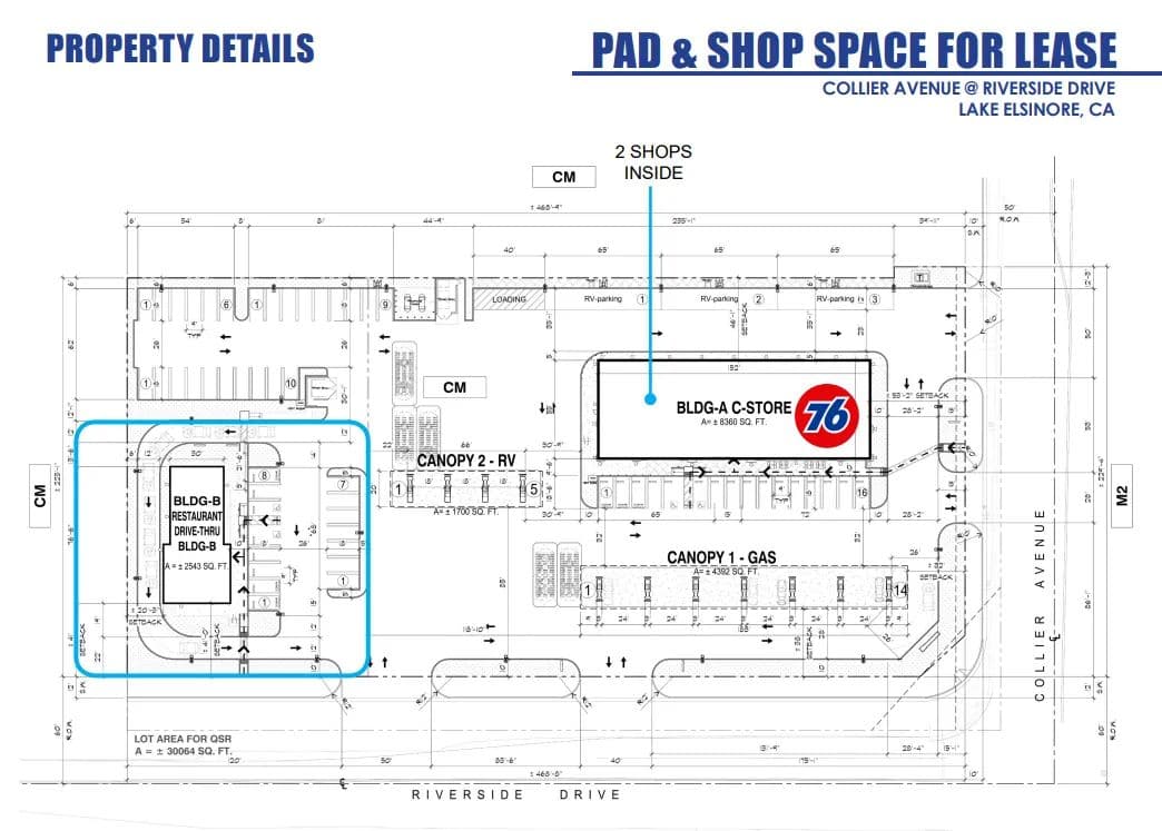 Building: ± 8,300 SF Convenience Store ± 30,000 SF Drive-through Pad Lot Size: 2.78 Acres Number of Units: 2 plus Pad Parking: 54 Zoning: Commercial