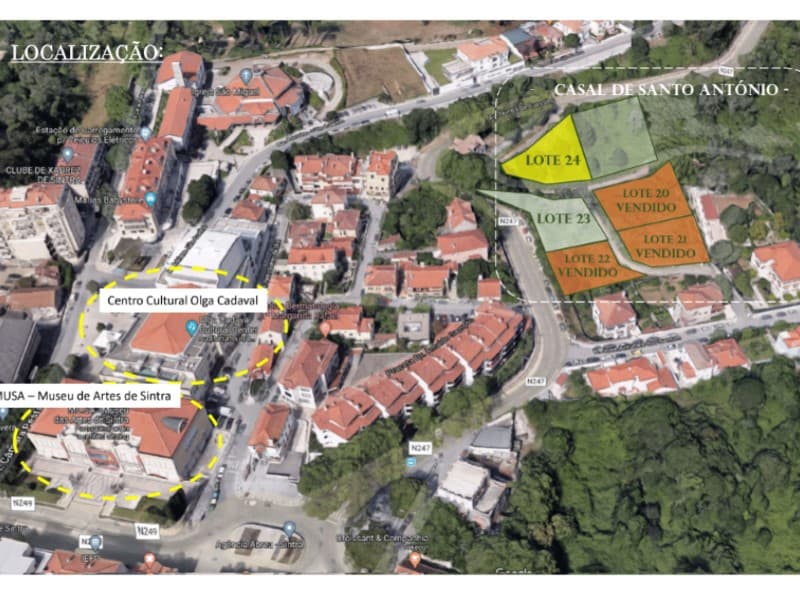 O lote está localizado numa área privilegiada, em zona de moradias, junto ao centro histórico de Sintra e jnto ao Centro Cultural Olga Cadaval, a 5 minutos da estação de comboios da Portela de Sintra.