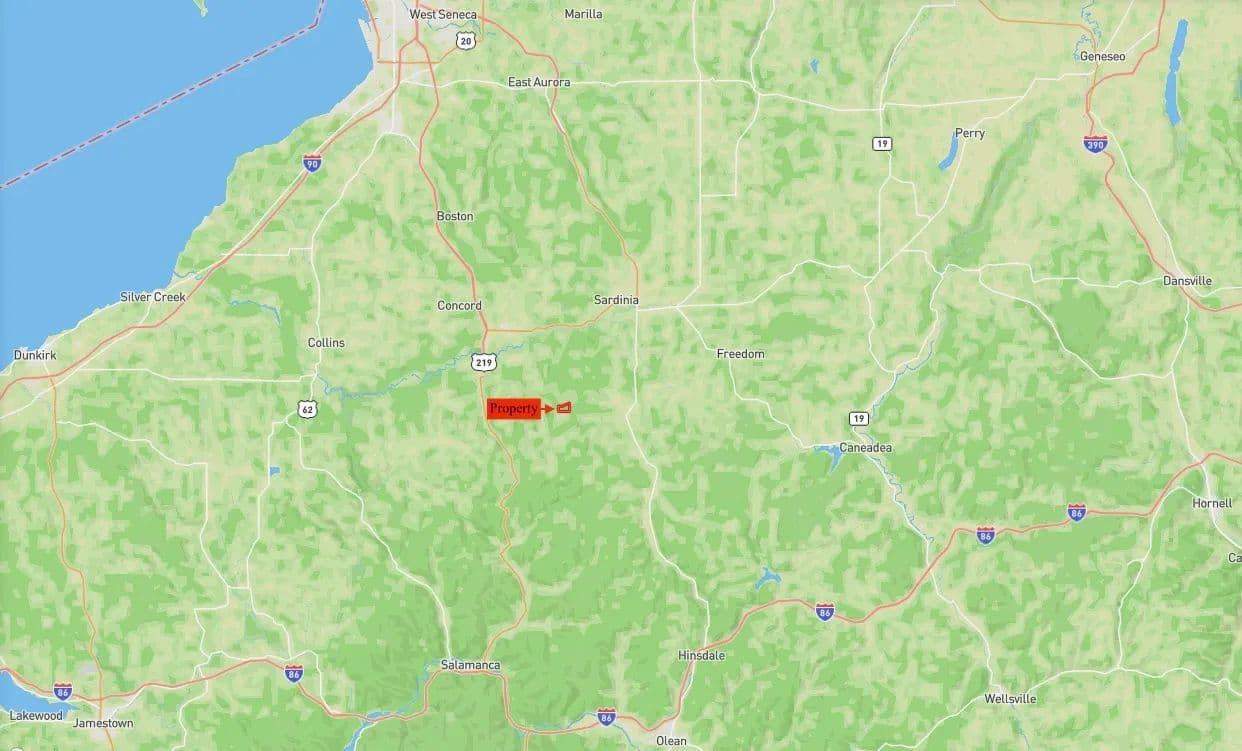 This property is located approximately 15-minutes from Springville NY, 25 minutes from Ellicottville NY, 50 minutes from Buffalo NY, 1 hour from Dunkirk NY and Warsaw NY, 1 hour 45 minutes from Rochester NY, and 1 hour 50 minutes from Erie PA.