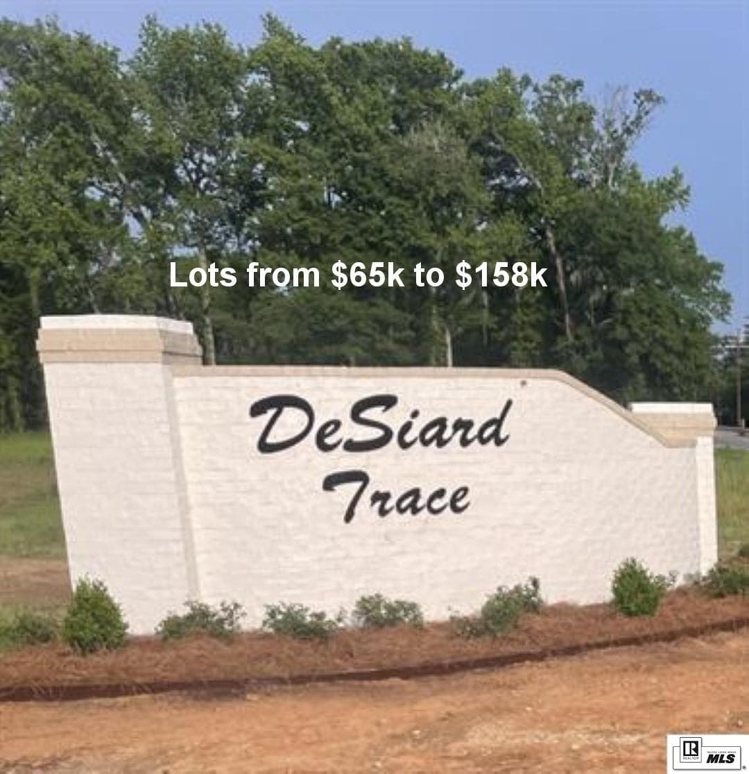 DeSiard Trace is a little different than the average subdivision. The property sizes are much larger with a minimum of 1.25 acres and larger. The Development offers 31 properties on Bayou DeSiard and 30 non water properties. The road and infrastructure are of the highest quality. DeSiard Trace is about one mile from all 3 Sterlington schools. If you're looking for a property that offers more room,DeSiard Trace may be for you and your family. Restrictions are reasonable but firm, values are protected. Home size requirements are 2,100 hsf on bayou and 1,800 hsf on properties not on the bayou. Marion State Bank is offering special financing options for DeSiard Trace lots. Lots from $65,000 to $158,000