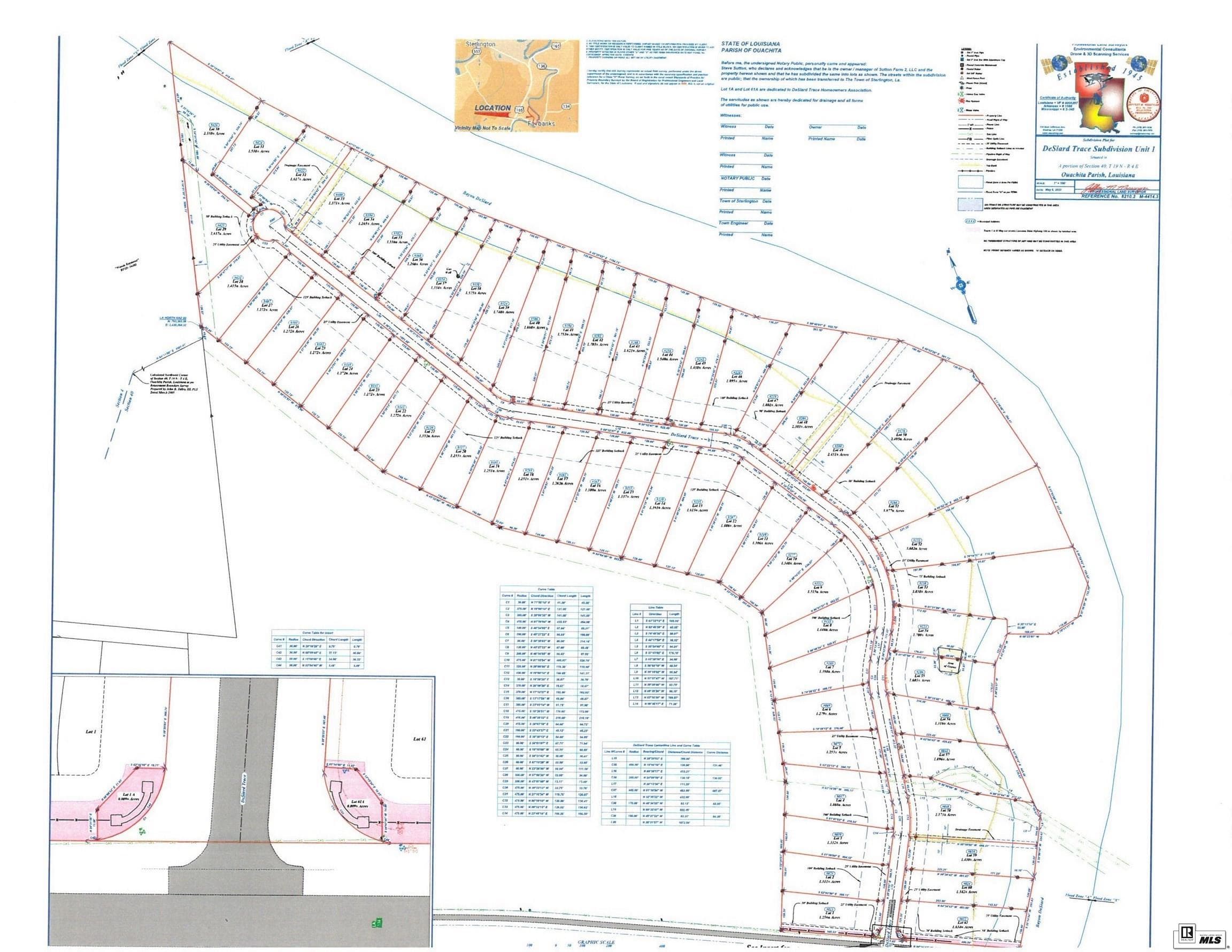 DeSiard Trace is a little different than the average subdivision. The property sizes are much larger with a minimum of 1.25 acres and larger. The Development offers 31 properties on Bayou DeSiard and 30 non water properties. The road and infrastructure are of the highest quality. DeSiard Trace is about one mile from all 3 Sterlington schools. If you're looking for a property that offers more room,DeSiard Trace may be for you and your family. Restrictions are reasonable but firm, values are protected. Home size requirements are 2,100 hsf on bayou and 1,800 hsf on properties not on the bayou.