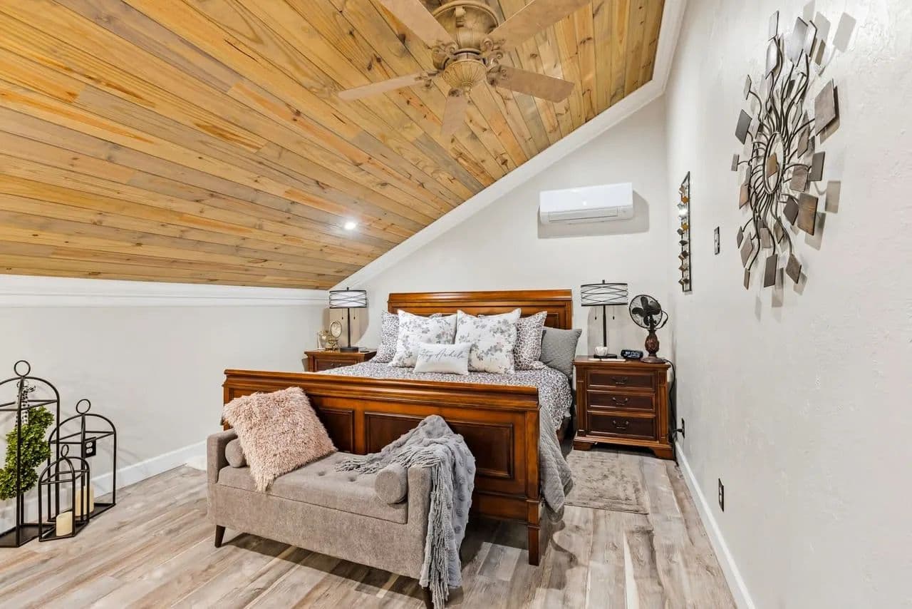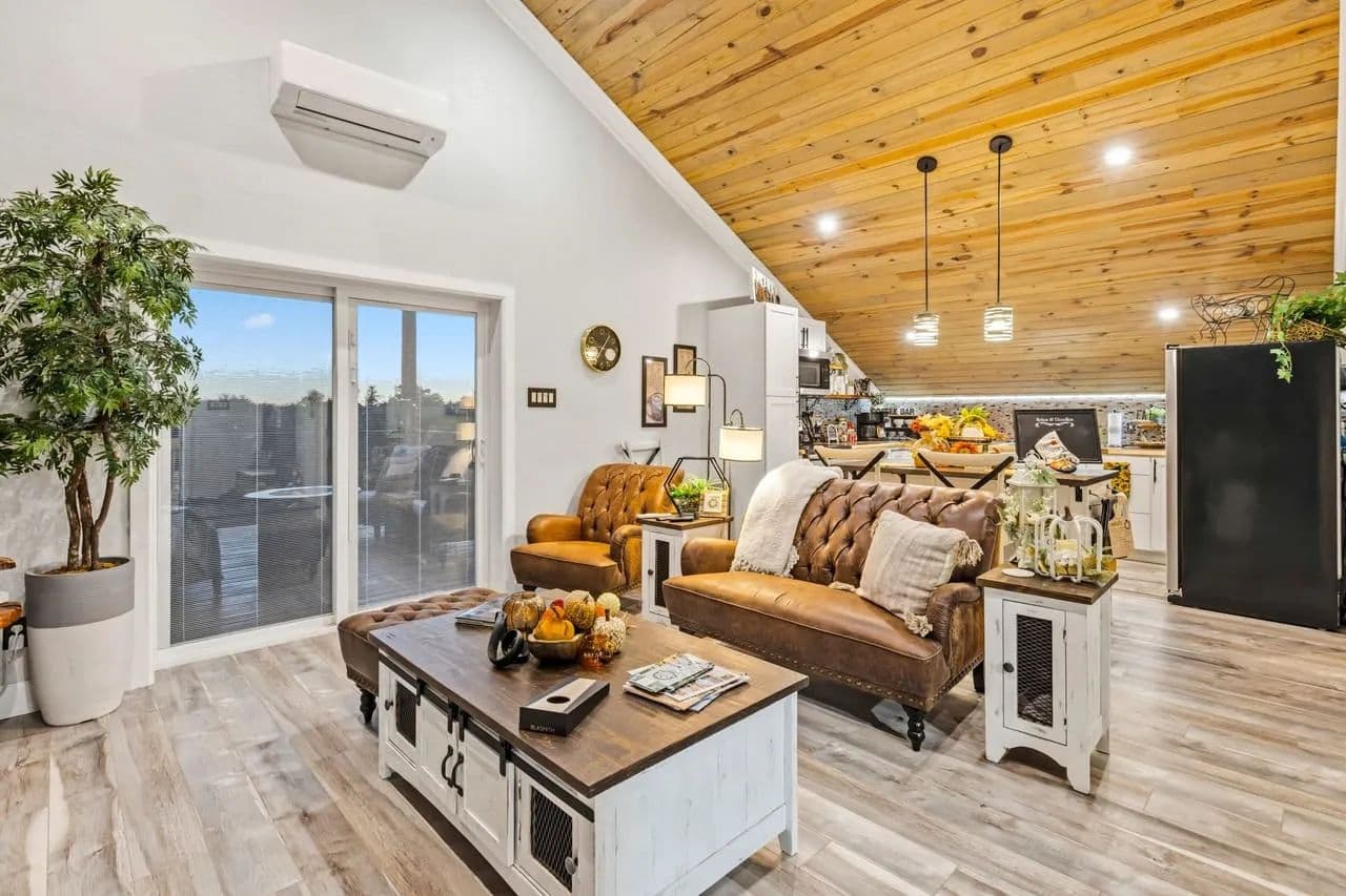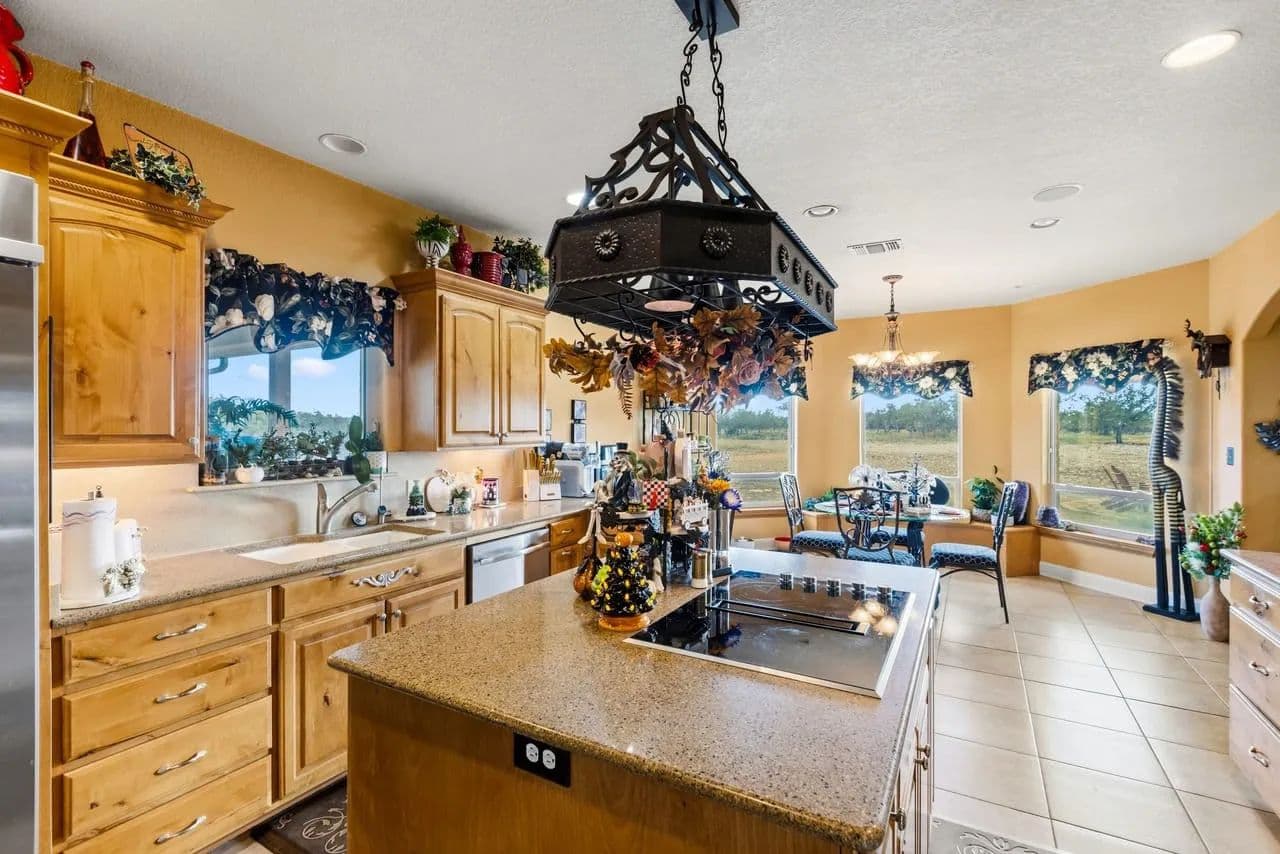 Complementing the main home is an impressive 3,200± square-foot insulated shop, complete with an 800± square-foot loft apartment and a unique three-story lookout tower that delivers sweeping views of the surrounding countryside. Outdoors, a beautifully landscaped koi pond with a water fountain serves as a tranquil focal point, framed by mature fruit trees and manicured grounds.