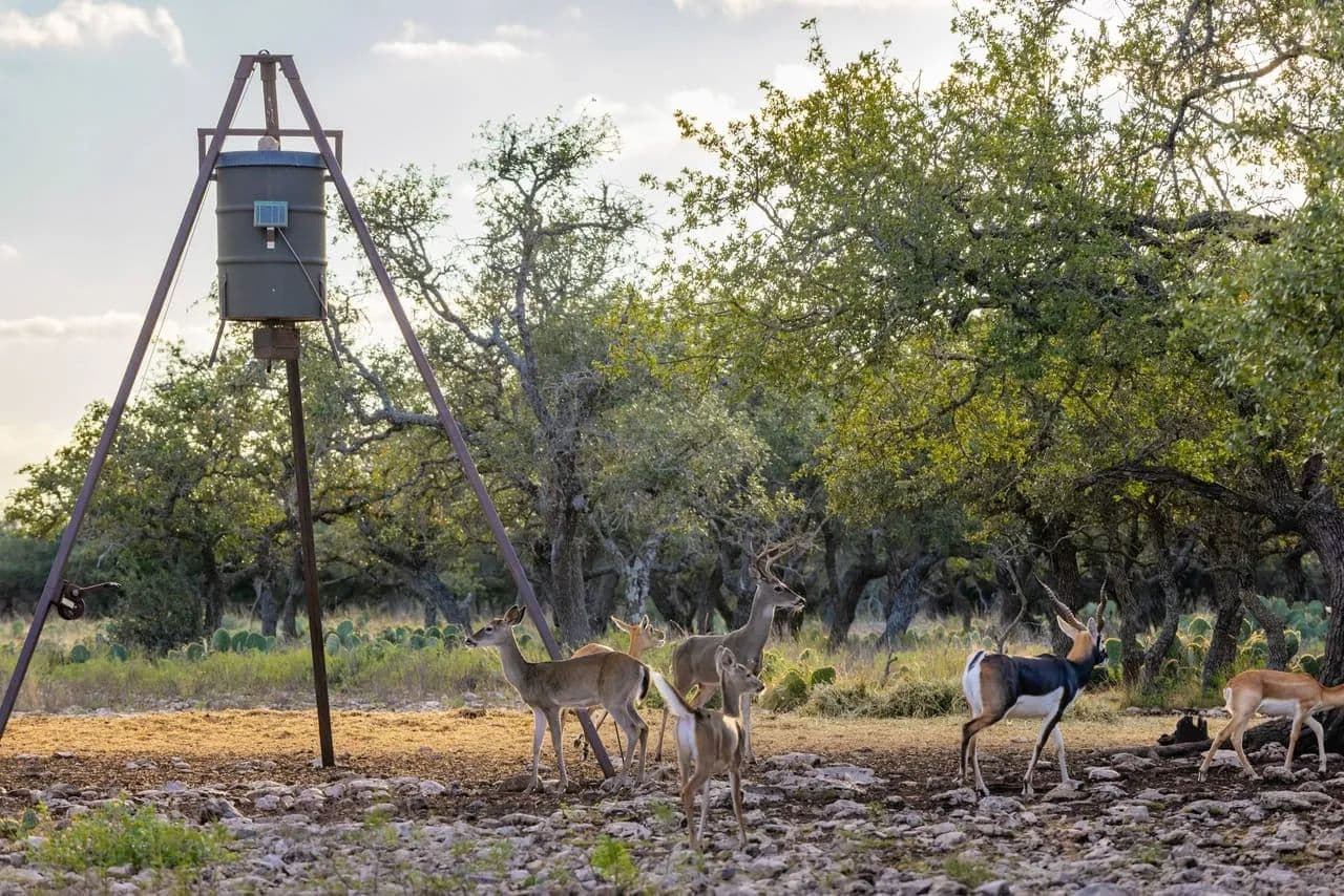 The land is equally remarkable, offering prime habitat for a diverse array of wildlife and livestock. The ranch is home to trophy-quality oryx, axis, and blackbuck, along with thriving populations of turkey and native whitetail deer, making it an outstanding Texas exotic hunting ranch and wildlife retreat.