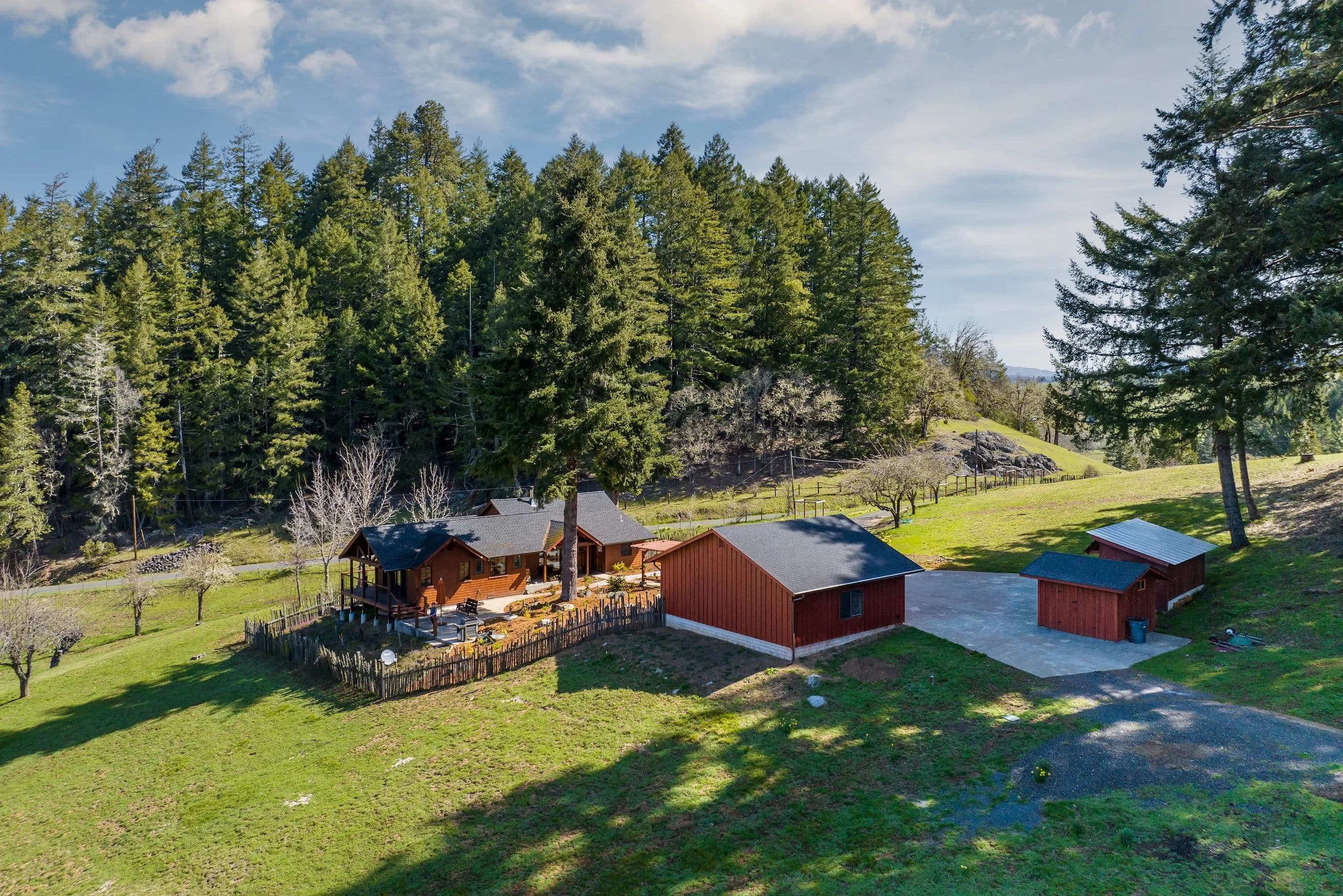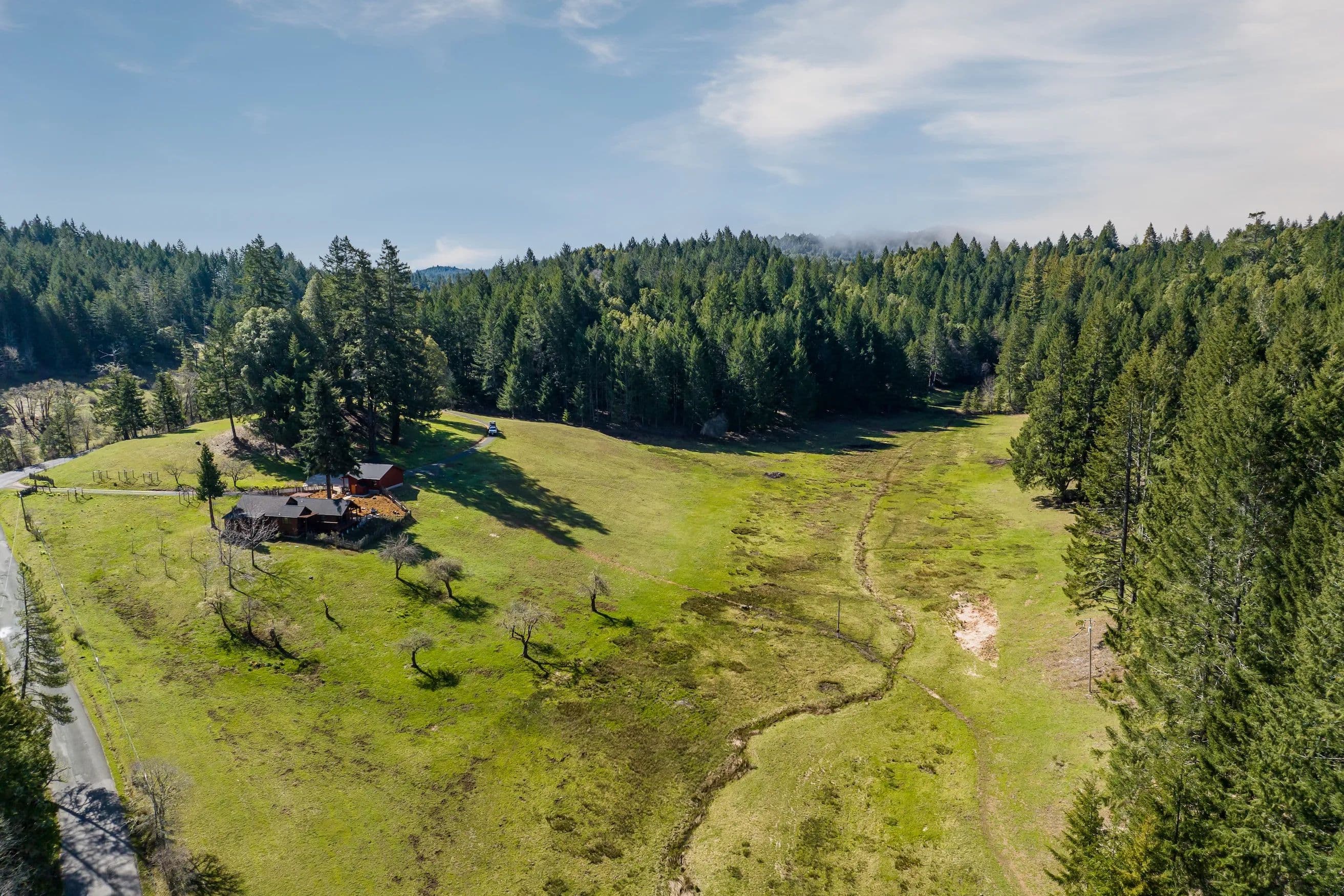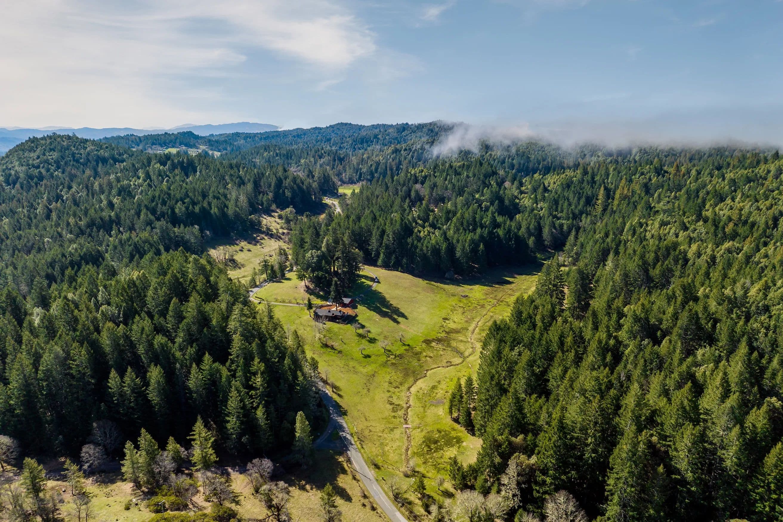 Winding through a two-lane country road framed in by towering Douglas Fir and Redwood Forest until emerging into the bright sunlight of Elk Meadow Ranch, one is mesmerized by the purity of this idyllic landscape. Set in the coastal mountain range of central Mendocino County, the Elk Meadow Ranch exudes the serenity of an undiscovered alpine sanctuary where elk and deer carelessly feed in its lush meadow while eagles and hawks circle overhead. Though only a short 15-minute drive out of Willits, one feels as if they are completely removed from chaos of modern society.