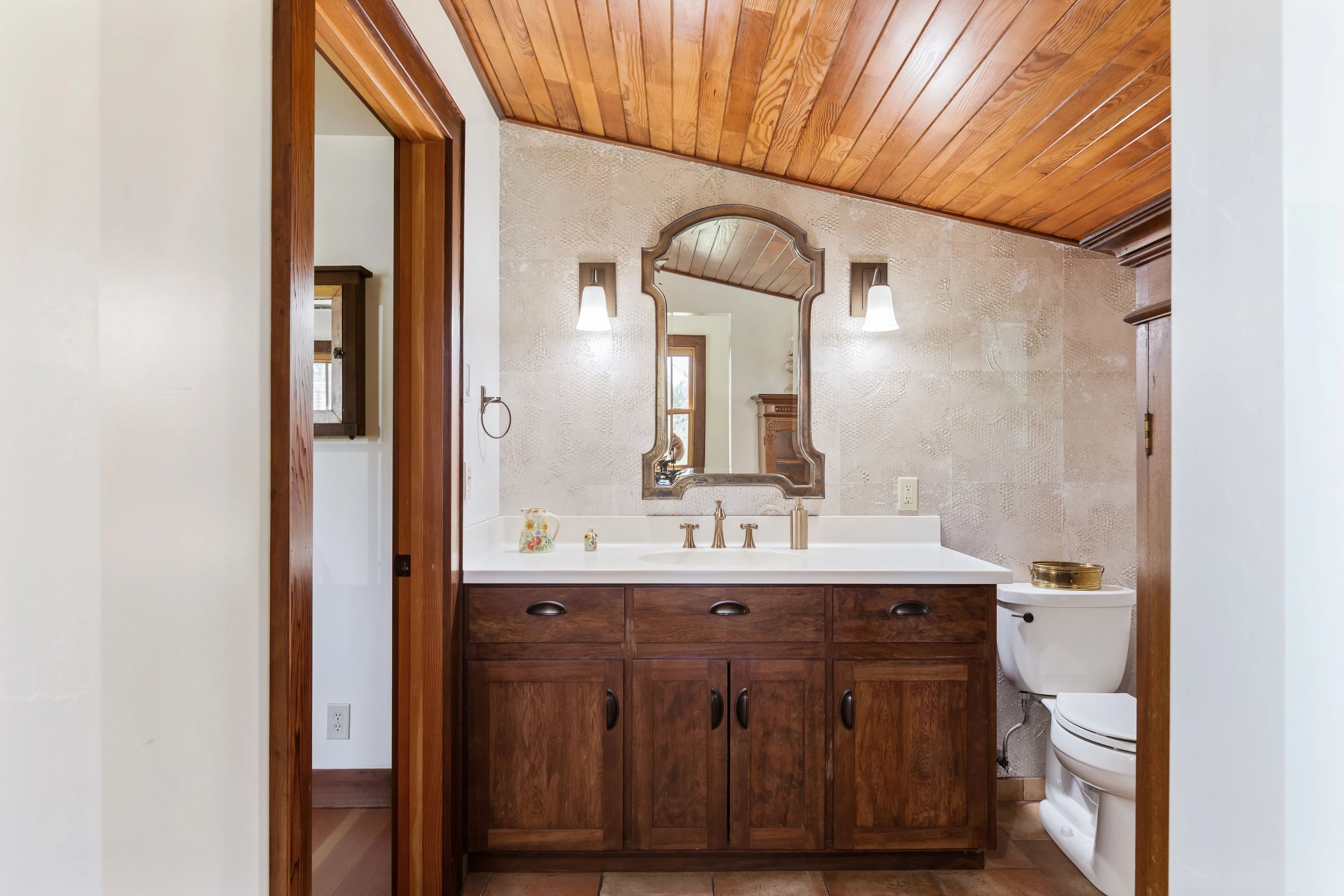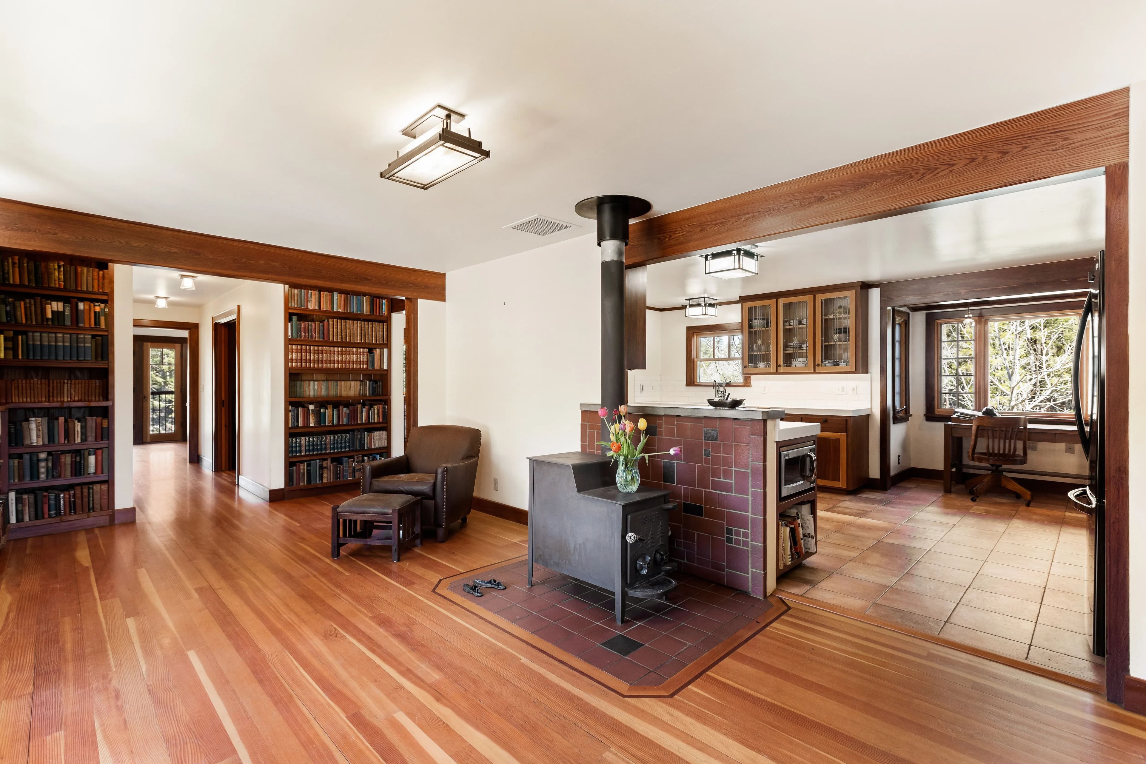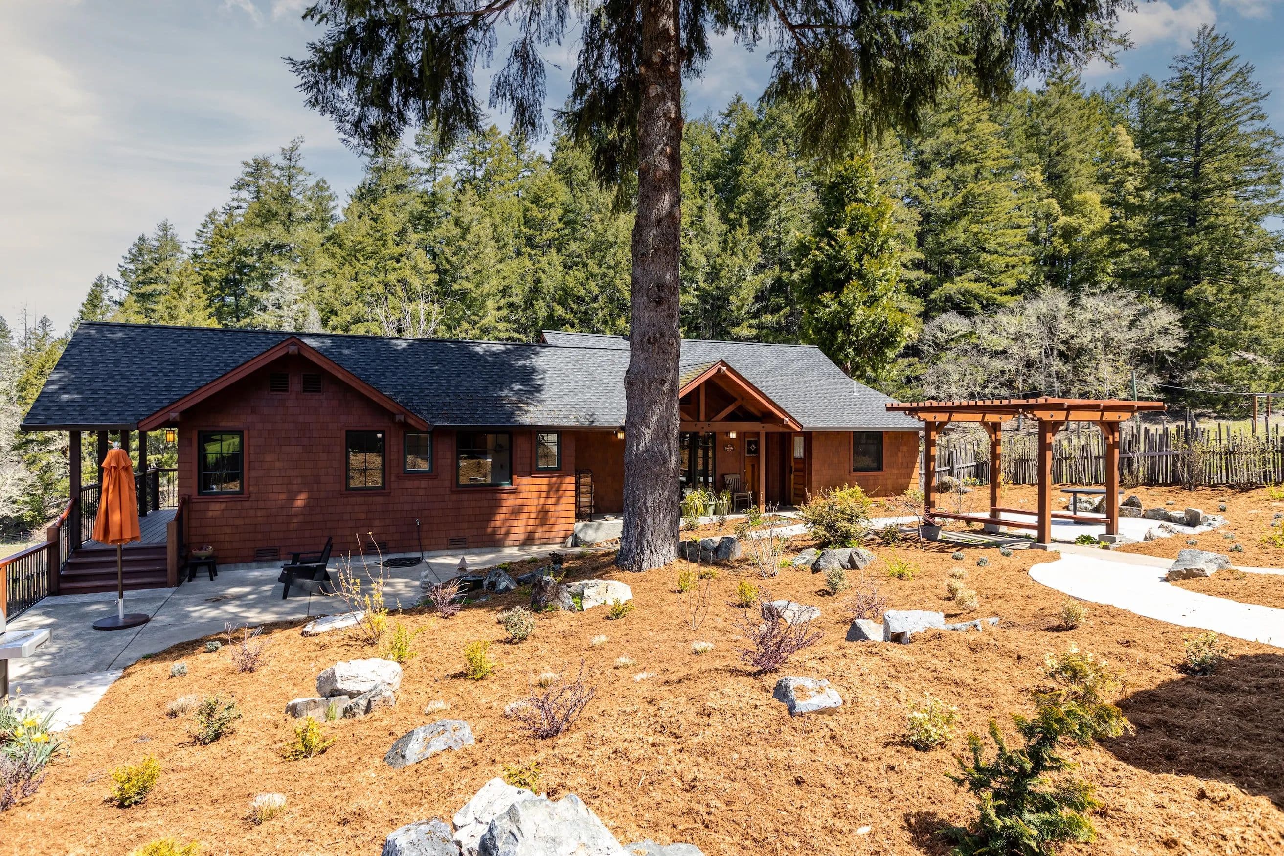 The house consists of 2 bedrooms, 2 baths with each room show casing the different woods used to their true magnificence. The house is serviced by PG&E with a backup generator. Two wells provide the water. Besides the house, there is a stand-alone and sturdily built Workshop/ Garage. Opposite the house is also a tastefully done studio cabin. There is a consistent and harmonic theme between all the structures. One clearly see the appropriateness of the structures to the environment.
