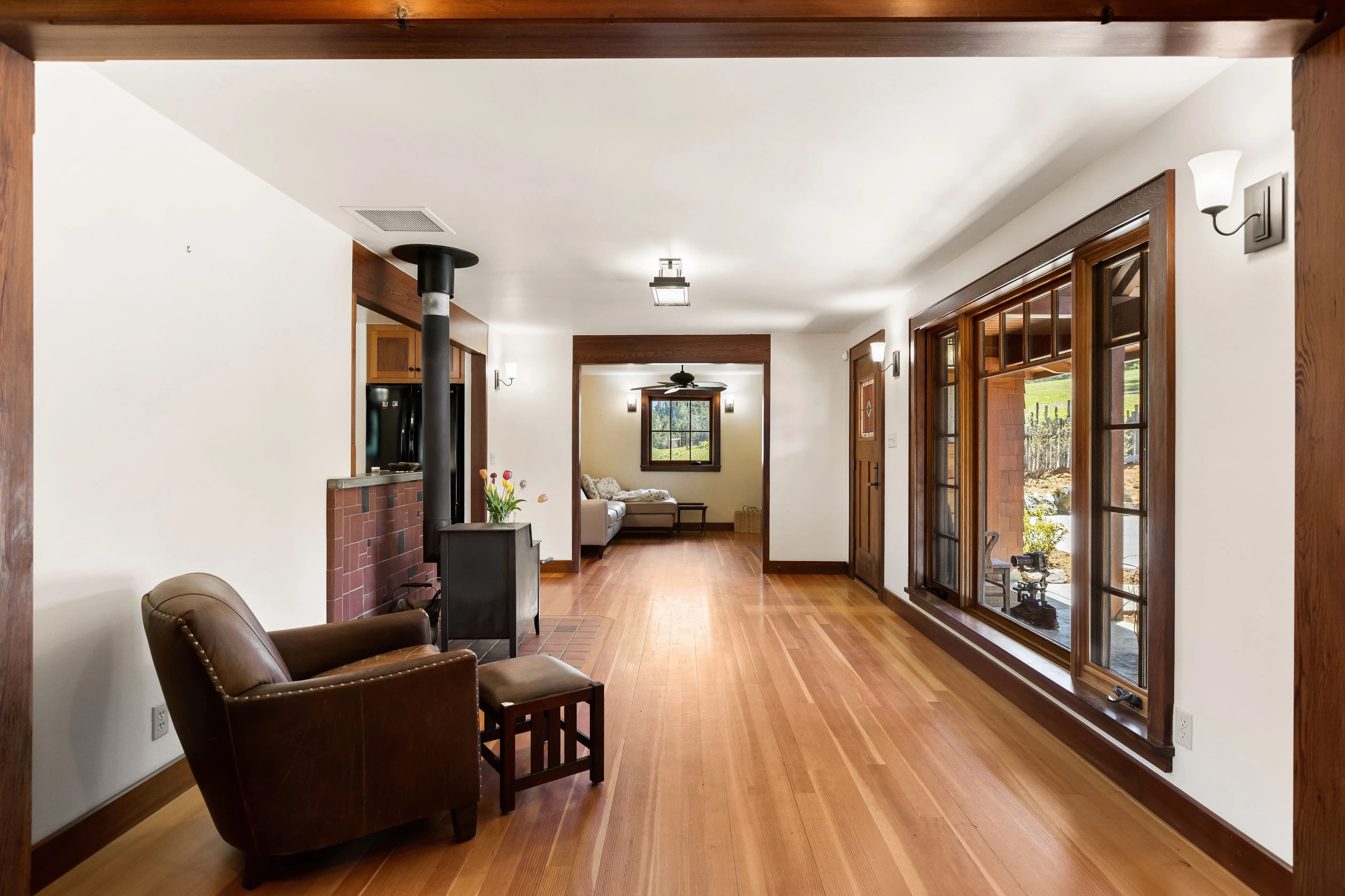 Elk Meadow Ranch encompasses 50 acres of manicured grounds including a sprawling meadow encased and protected by a curtain of century old Douglas Firs. The Smith Family bought the Ranch back in 1975 with its existing old craftsman style house in a worn but functional state. It was not until 2014 that the Smith’s embarked on a major and meticulous remodel and expansion of the house, transforming the structure into what could only be considered a living piece of art that preserved its historical integrity while incorporating modern functionality. Attention to detail is evident in every aspect of the house. Much of the redwood and fir used in the project were sourced and milled from the Smith’s timber holdings. In an era where emphasis is put on the economic bottom-line and not pride of craftsmanship, it’s a rarity to see the level of quality construction.