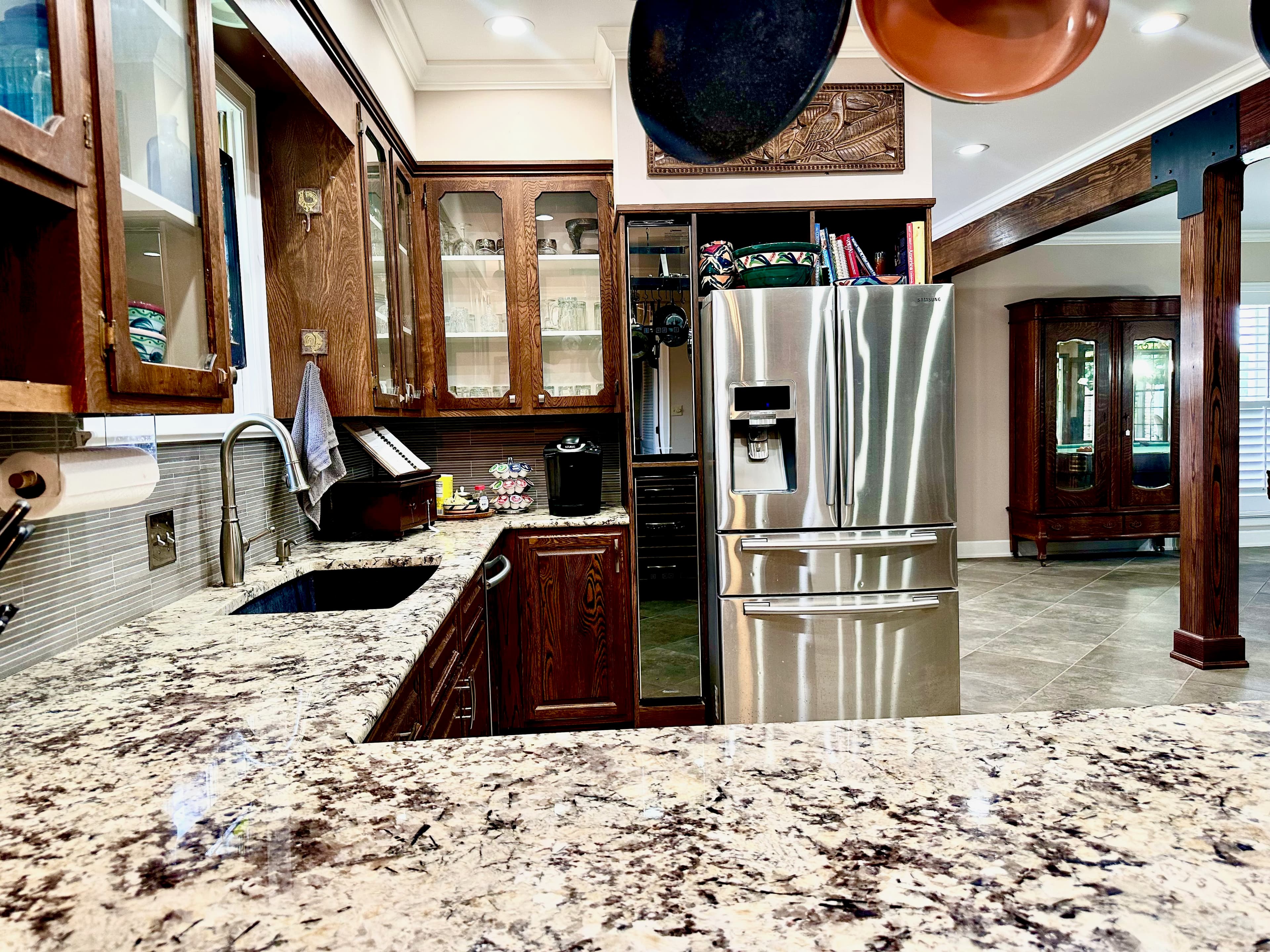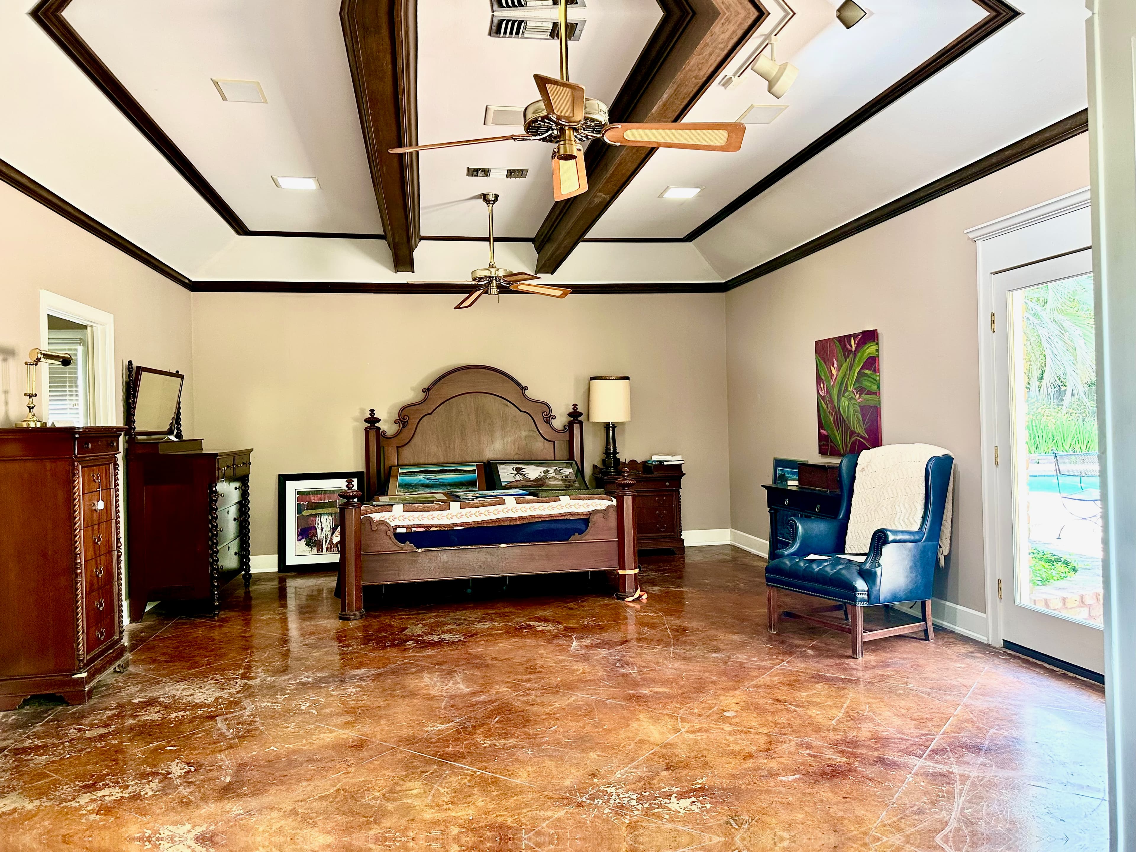 Uniqueness abounds in this exquisite home and property. Large primary suite opens onto multi paneled glass enclosed Florida room with built in hot tub-this room has its own separate heating and cooling system, and is home to an oversized Fiddle Leaf Fig tree and a giant Monstera (Philodendron) to make your own private grotto. Open concept extensive kitchen with heavy slab granite counters and high-end appliances open onto living areas for expansive feel. The privacy fence enclosed backyard whisks you into another world with backyard gazebo, beautiful inground pool with decorative lighting, functional greenhouse and potting shed.