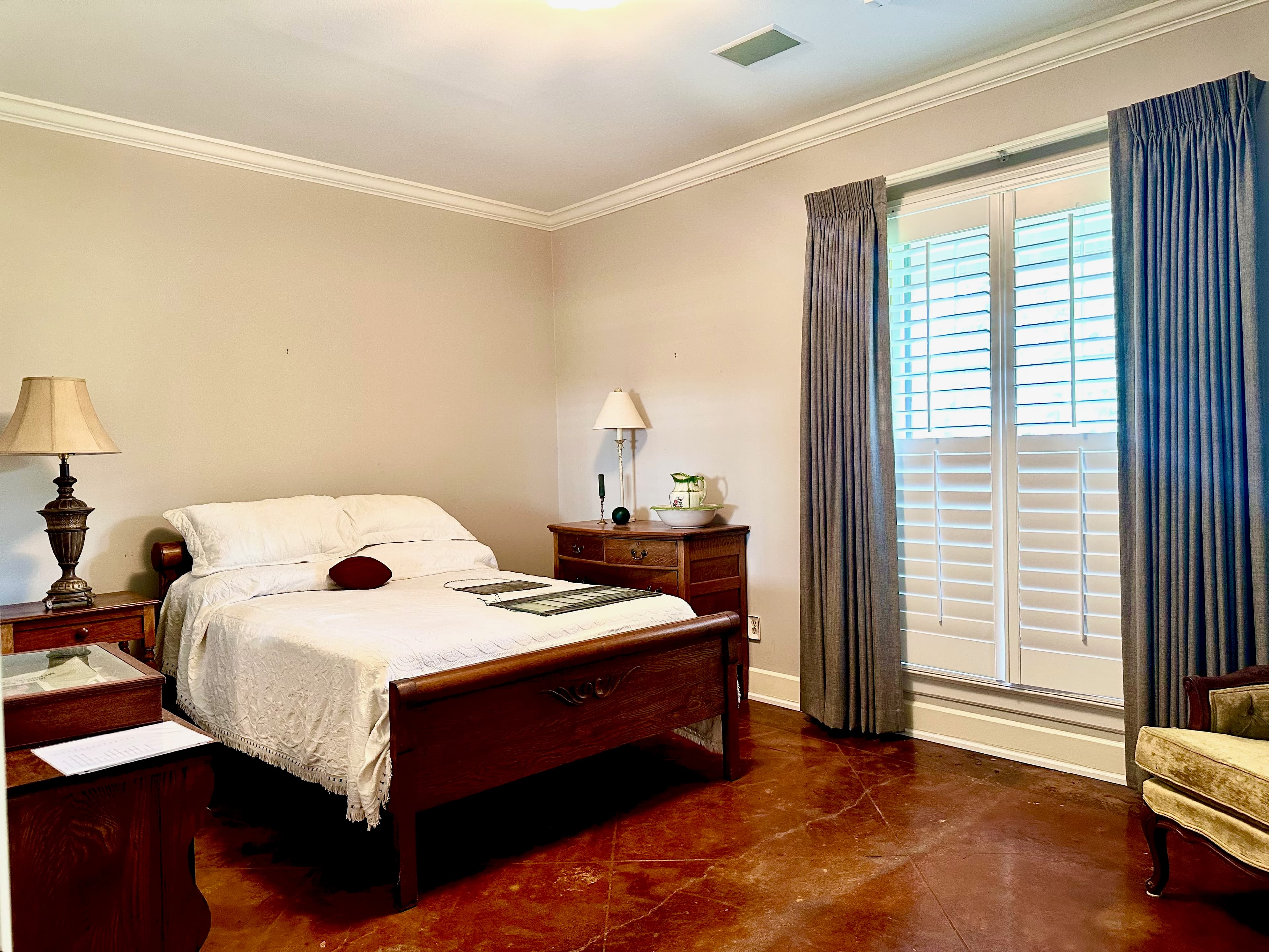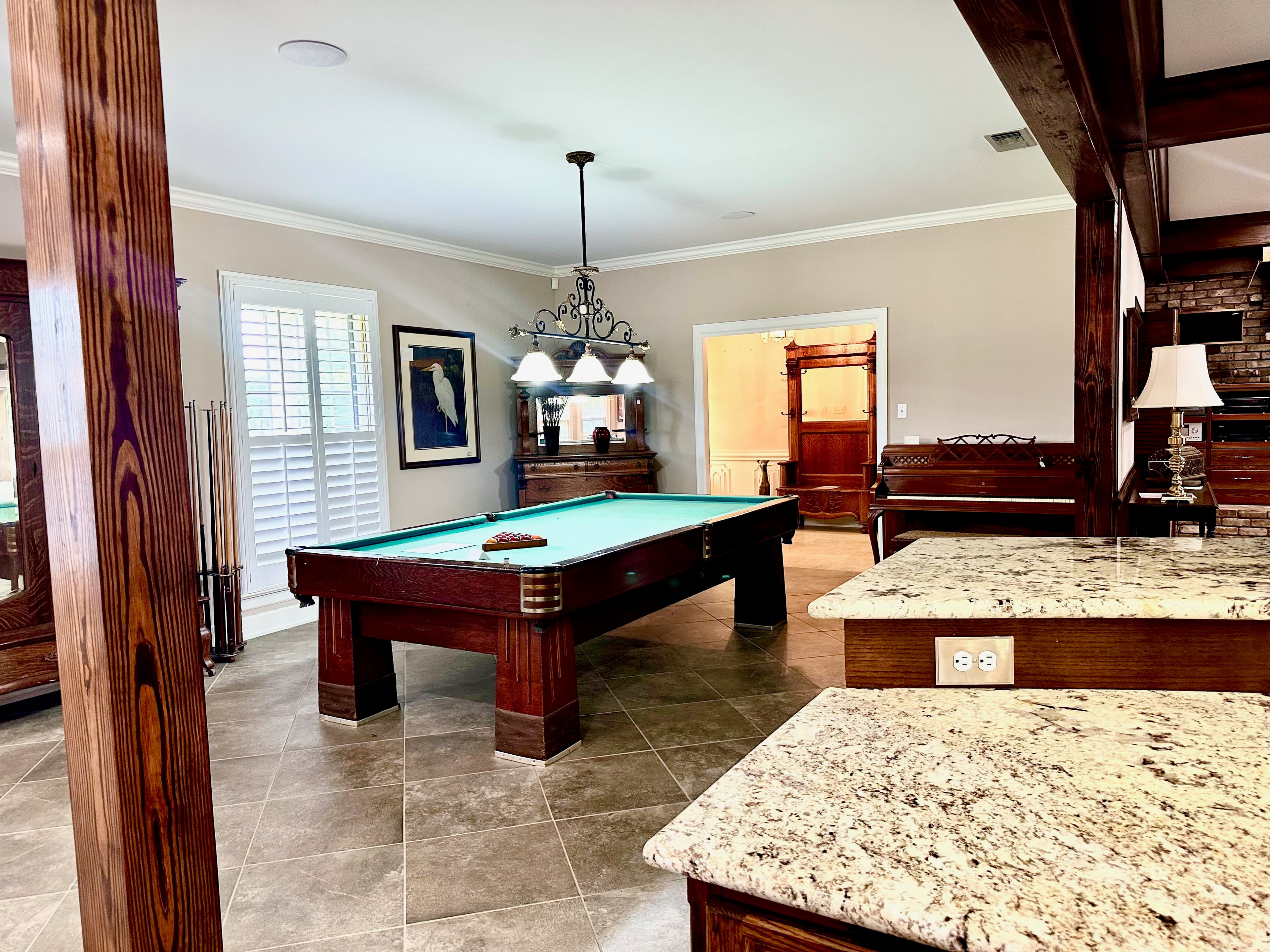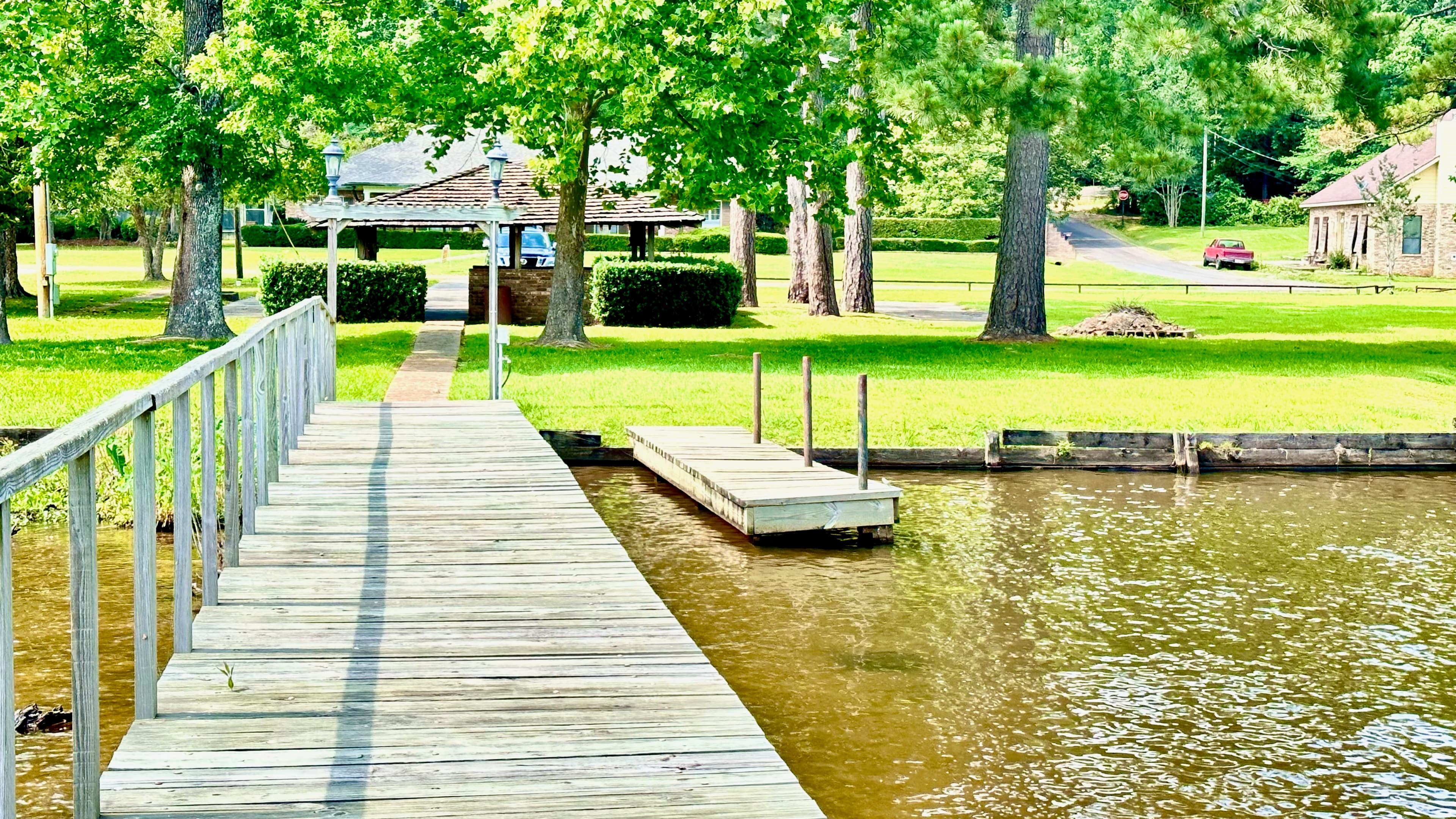 Down the private walkway is a charming arbor draped in glorious muscadine vines. Follow this to an elevated boardwalk and your private back lot with separate entrance on the next street. This back lot has a huge metal shop complete with a half-court basketball gym that comes with basketball goal and vintage scoreboard. Within 2 hours of New Orleans, LA, Baton Rouge, LA & Jackson, MS. Come treat yourself to luxury lake living!