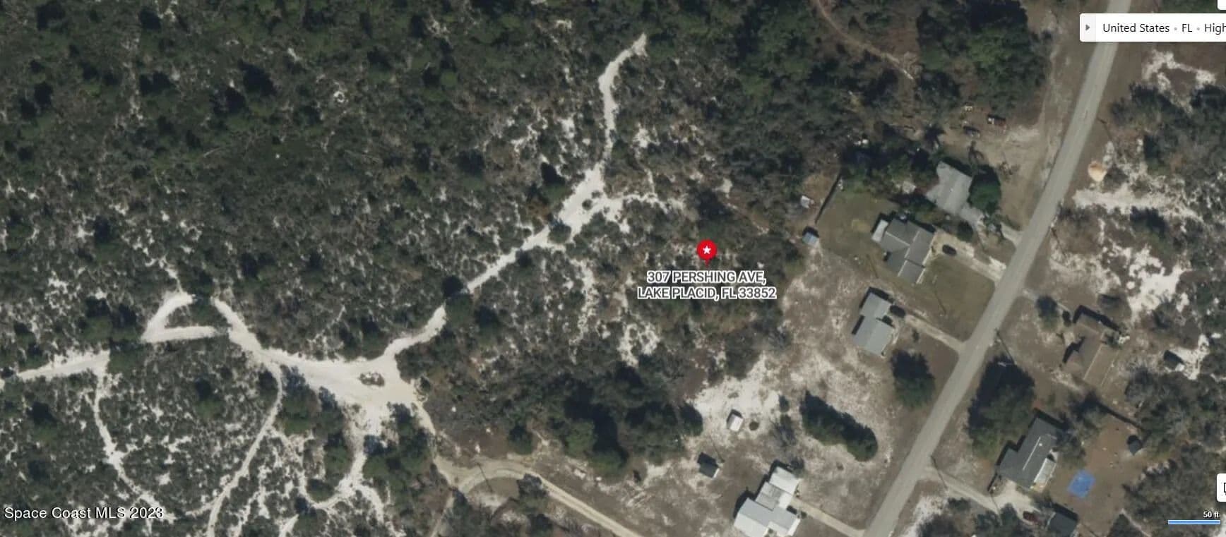 0.52 acre residential lot available in the Highlands Park Estates Section P of Lake Placid. Located close to Lake Istokpoga, this double lot currently has no road access, but would be a great investment for the future. From County Road 621 go north on Washington Boulevard for .9 miles, and left on Goldbud Street for about 400 feet. The lot is to the right of this point on the proposed Pershing Avenue at latitude 27.314057 and longitude -81.324212.