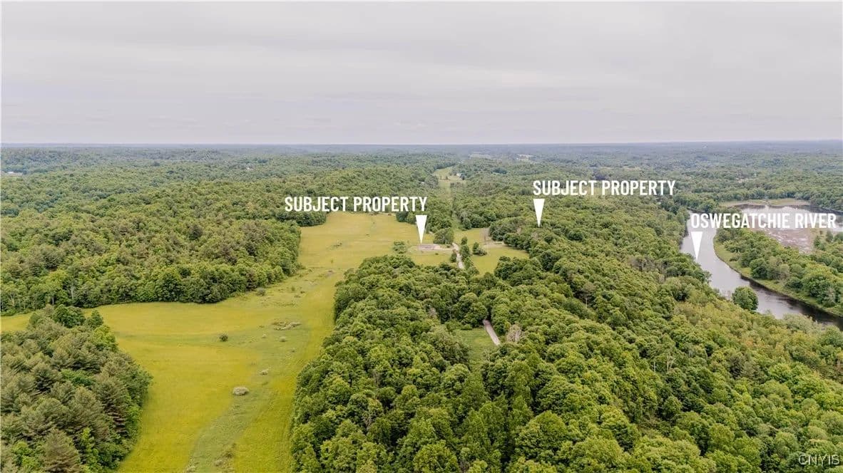 Oswegatchie River, also on the land are rolling wooded hills, an expansive pine grove, perfect for exploring.