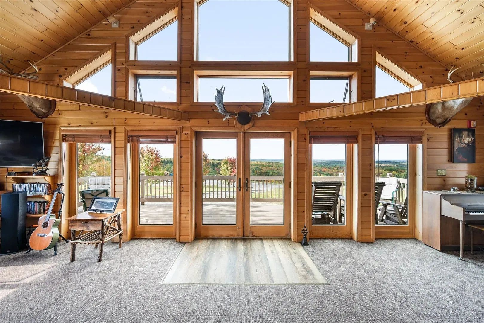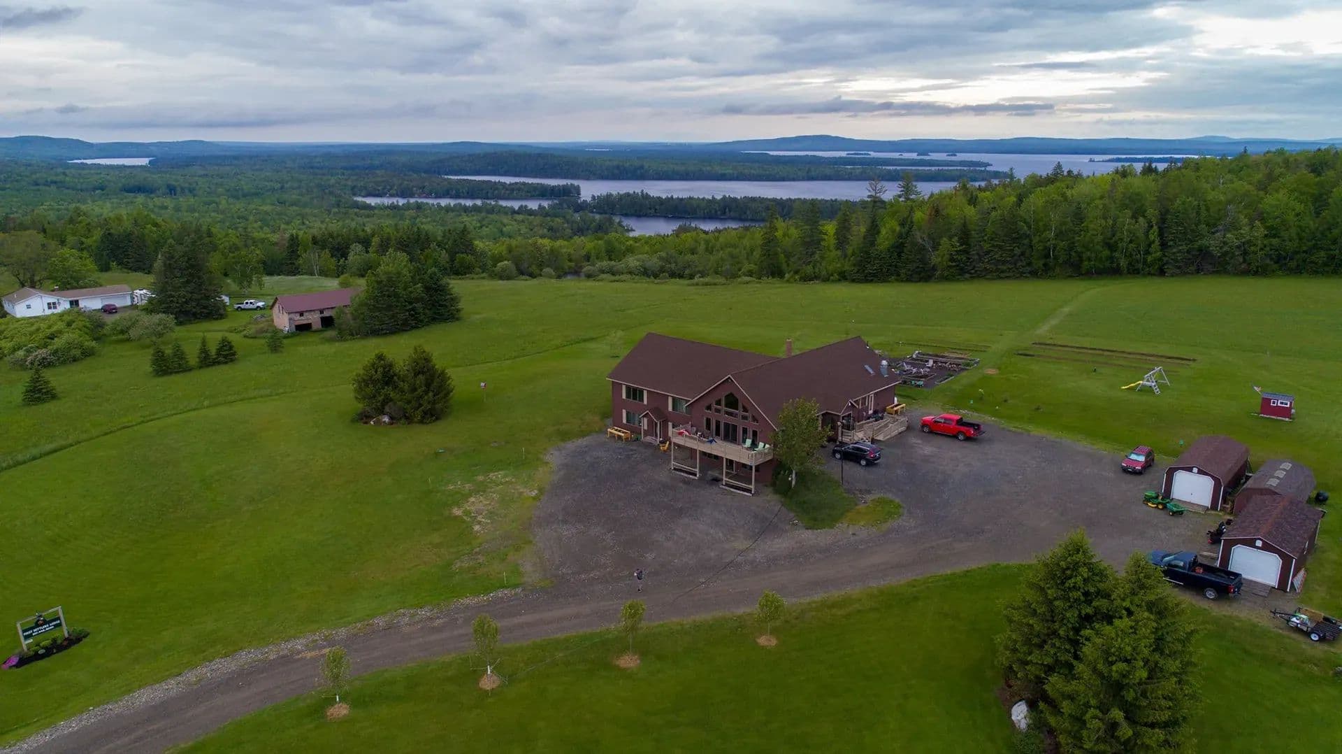 With breathtaking views of Mt. Katahdin and the East Grand Lake Region, the First Settlers Lodge offers a haven from the outside world with first class amenities. An unparalleled 42-acre private estate or commercial venture on US-1. Bordered by permanent conservation land, this four-season sanctuary guarantees ultimate privacy and endless adventures. A place to reconnect with family, friends, guests or nature whether sitting by the fireside or out on the direct trail access with hiking boots, snowshoes, cross country skis, ATV’s, ITS trail for snowmobiles or your favorite rifle during hunting season. East Grand Lake is renowned for its world class fishing and boating. The four-season lodge has something for everyone…reunions, retreats, celebrations, meetings, fishing, hunting, or the forgotten art of relaxing. The lodge offers a main residence plus a guest wing, perfect for multigenerational living or a commercial entity while living on site. It includes 6+ bedroom suites, each with a private bathroom, plus a large bunk loft for gatherings. A stunning chef’s kitchen with commercial-grade appliances, dining room, a great room with a fieldstone fireplace and pellet insert. The guest rooms are in separate wings, while the upper level overlooks the great room, plus a guest room with full bath and deck offering views of East Grand Lake. The lower level offers a specious meeting or event room along with private living space for the owners and an in-law apartment. This is a turnkey property, fully furnished and equipped for a seamless transition. Some of the features included are a 2023 Chevy 2500 Duramax truck with a Boss plow, Polaris Ranger UTV, & multiple trailers. Enterprise-grade UniFi WiFi 6, security camera system, and dedicated AC units for all suites. Three large outbuildings (two 10x30, one 10x20) for all your storage needs. A true legacy property combining total privacy, modern comfort, and direct access to the best of Maine’s outdoor recreation. See MLS 1641170 also!