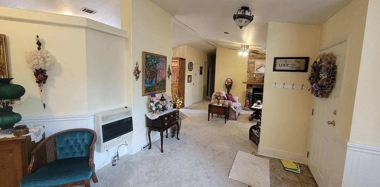 NICE! NICE! NICE! 4BR/2.5BA Completely rebuilt, better than new! This home is located in the quiet little community of Buffalo Valley, OK. Nestled near the end of a little dead end street, it has a feel of seclusion although there are a couple of homes nearby. It sets on nearly 2 acres so one has to some room to breathe. The home is a 28’x76′ manufactured home, that’s 2128 sf of beautiful completely renewed heated and air-conditioned living space, that looks better that new! The home is set up on runners so it is not settling or going anywhere. The sellers completely gutted the interior down to the stud walls, ceilings and floor joists, completely rebuilding the entire inside all new with first class material to do the finest home proud! All new sub-floor, sheet rock, plumbing, electrical and propane lines. Like I said, completely new. There are 3 bedrooms, the hall bathroom, utility/laundry room and half bath on the west end. Kitchen, living room, dining room in the center, with the master suite on the east end. This amazing home was appointed with all new custom cabinetry throughout the entire home. Check out the pictures, this place is awesome! This wonderful home was completed approximately 2 years ago and has had light use, therefore it is all the same as new. A few of the amenities are as follows: The kitchen appliances, including a propane gas cook stove, Bosch Dishwasher, Samsung side by side refrigerator with huge drawer freezer at bottom and eye level microwave. The master bedroom boasts a luxury claw footed soaking tub as well as a huge shower! There are 3 backup propane heaters strategically located throughout the home to provide heat in case of an unexpected power outage. The home is all electric otherwise, except for the gas kitchen range. The living room, dining room and all bedrooms are very nice carpeted in luxury carpeting. Bathrooms and laundry room have very nice vinyl flooring. There are nice ceiling fans in the living, dining and master bedrooms. One very attractive feature of this home is the wood-burning fireplace in the living room! Don’t miss out on this one. FOR BEST INFORMATION, please call Chuck Clark at 580-380-7093 or Terry Humphreys at 918-839-2106. You really need to see this one and appreciate the quality of the home. You’ll be glad you did!
