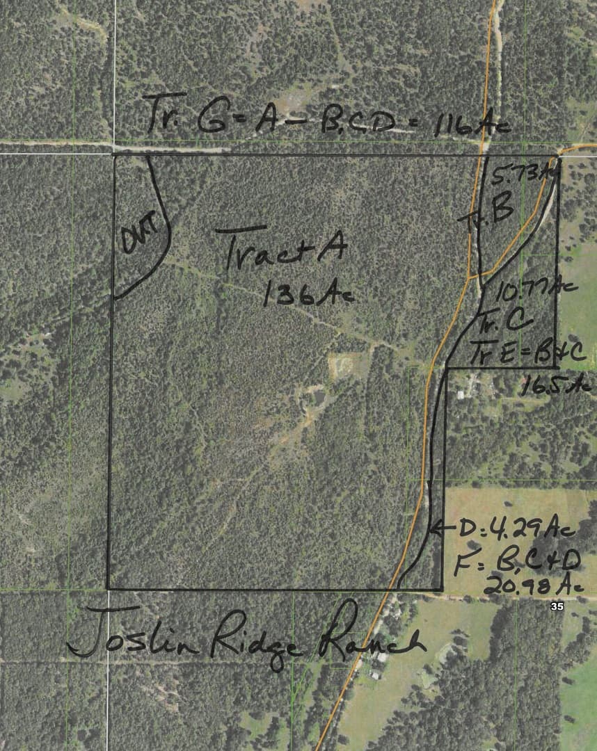 This 116 Ac is part of a larger parcel. You can purchase a smaller parcel or the entire 136 Acres. Visit our website for the properties under Joslin Valley or Joslin Ridge Ranch to see what else we have to offer.