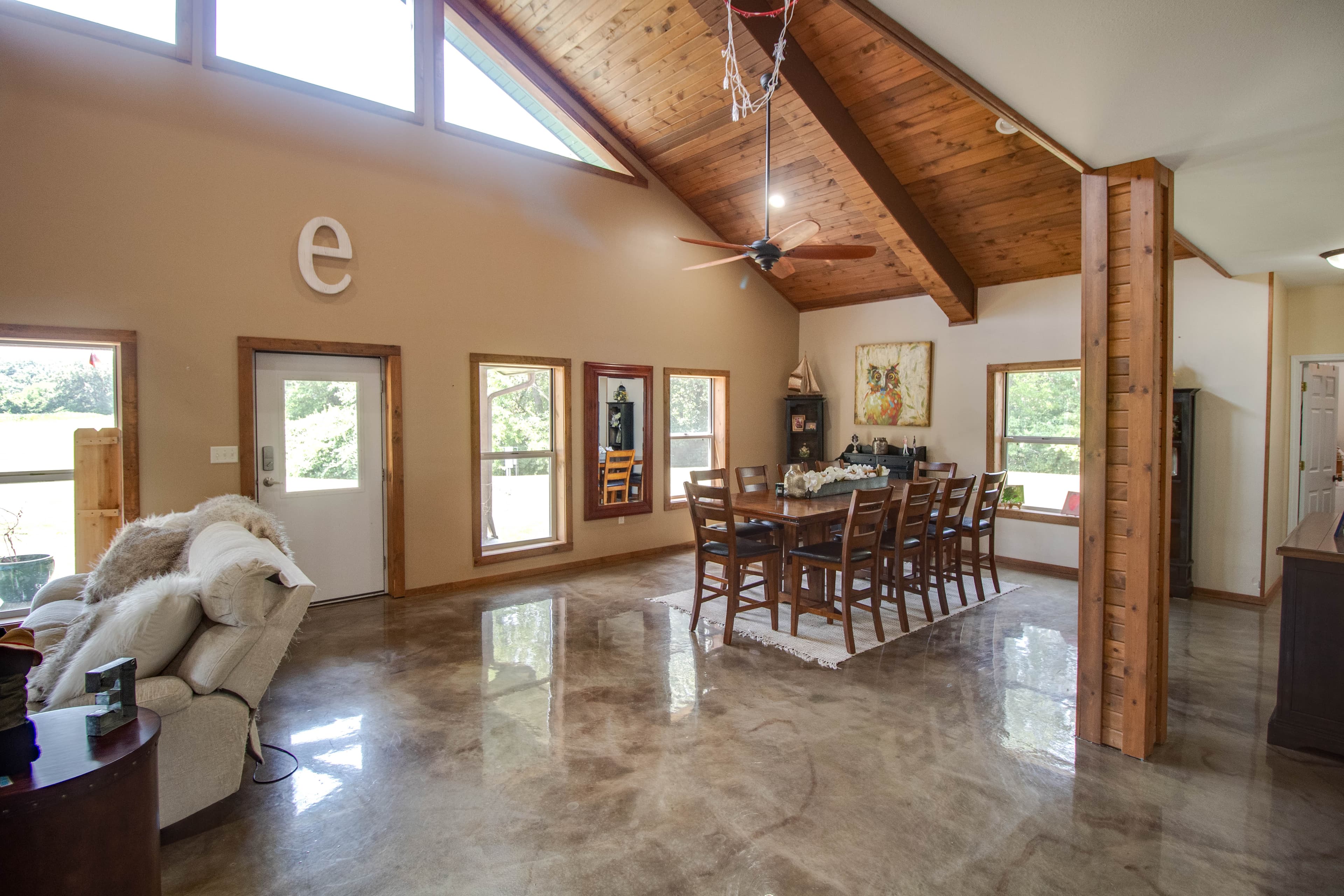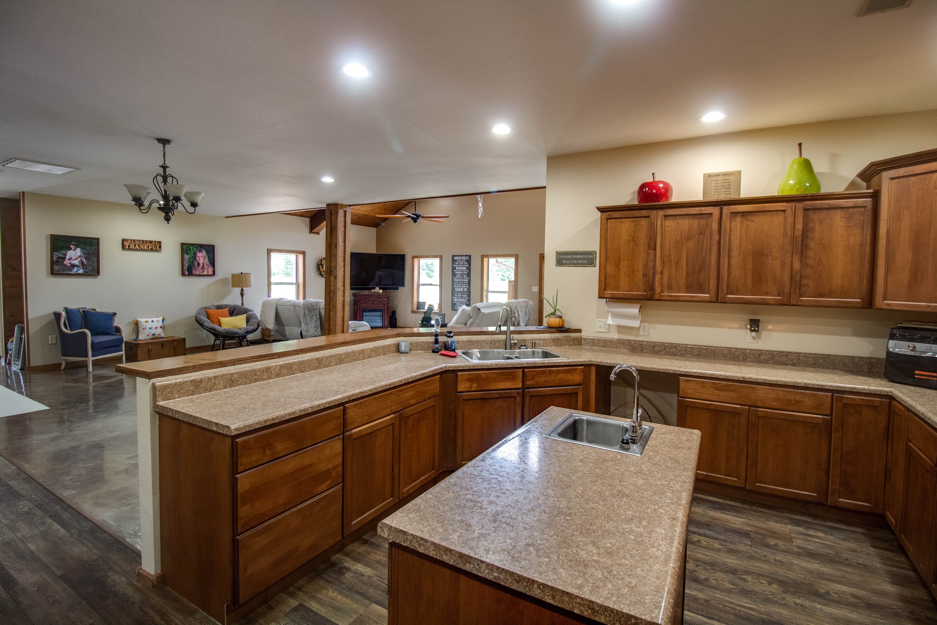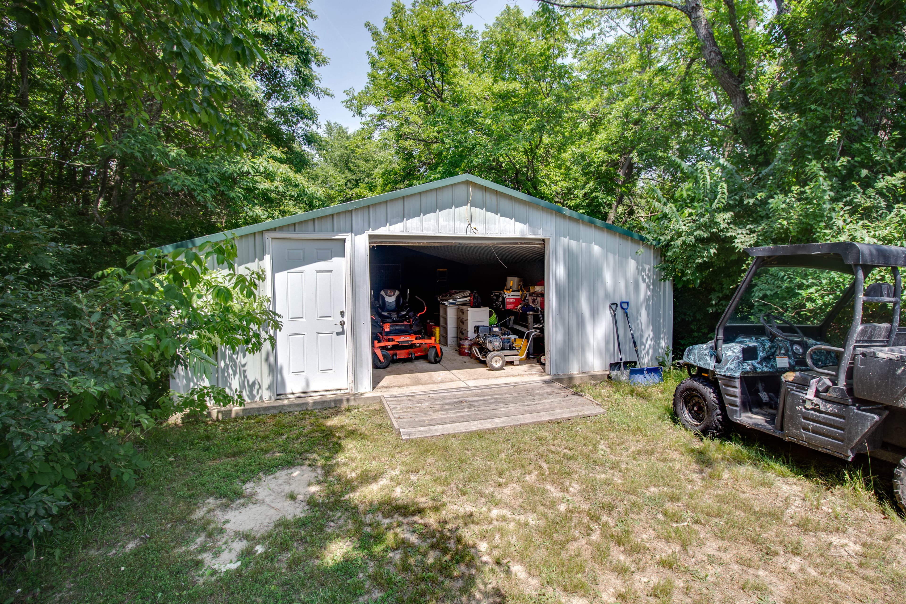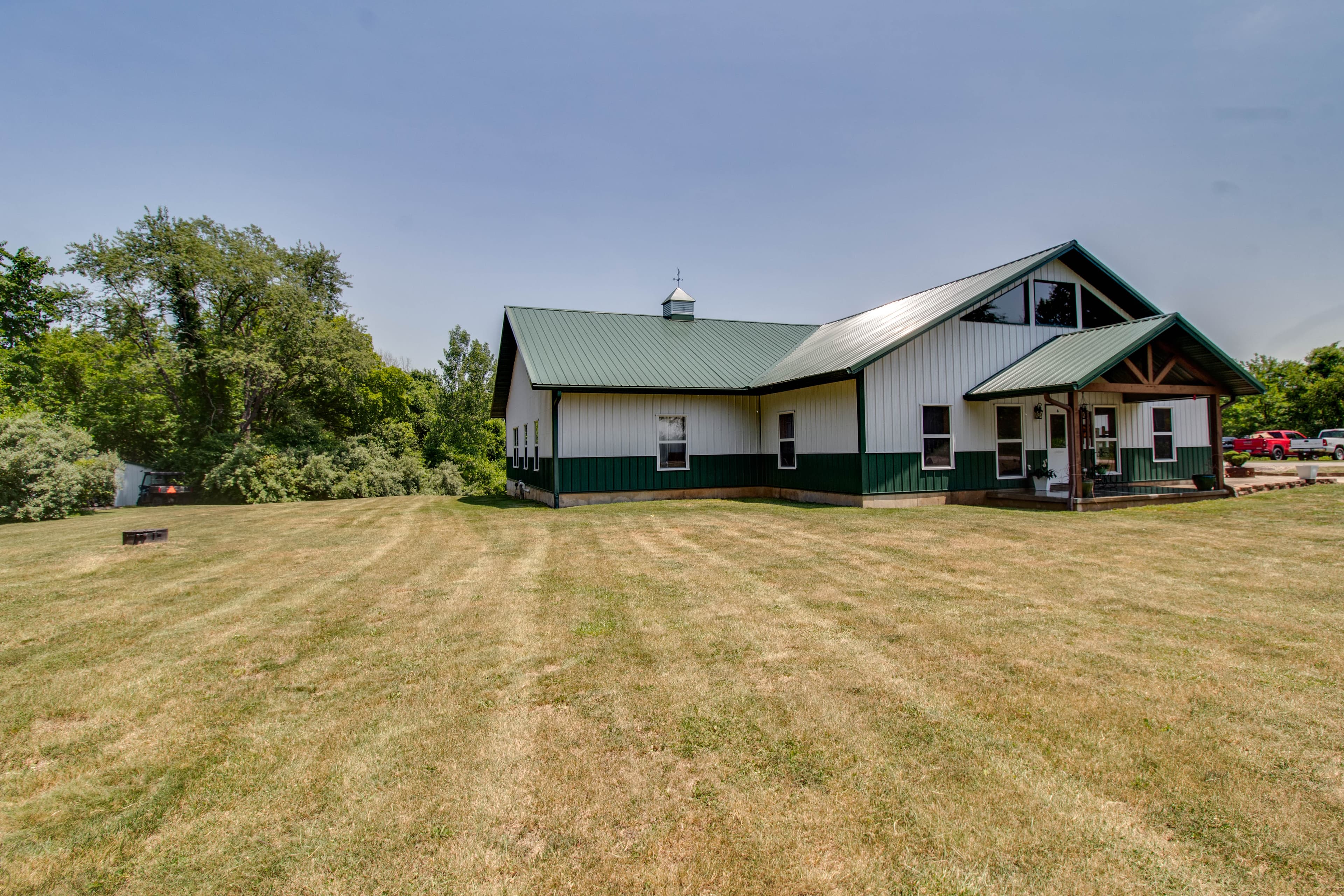 Tastefully designed pole barn house situated on 5 acres in a nice country setting. This home offers a wonderful open floor plan, vaulted ceilings, custom kitchen cabinetry, epoxy floors, spacious main floor, walkout basement, large deck, covered front porch and much more. In addition to the attached garage there is an outbuilding with a concrete floor. The lot offers seclusion and plenty of room for enjoyment. Also included is a recently built sand volleyball court.