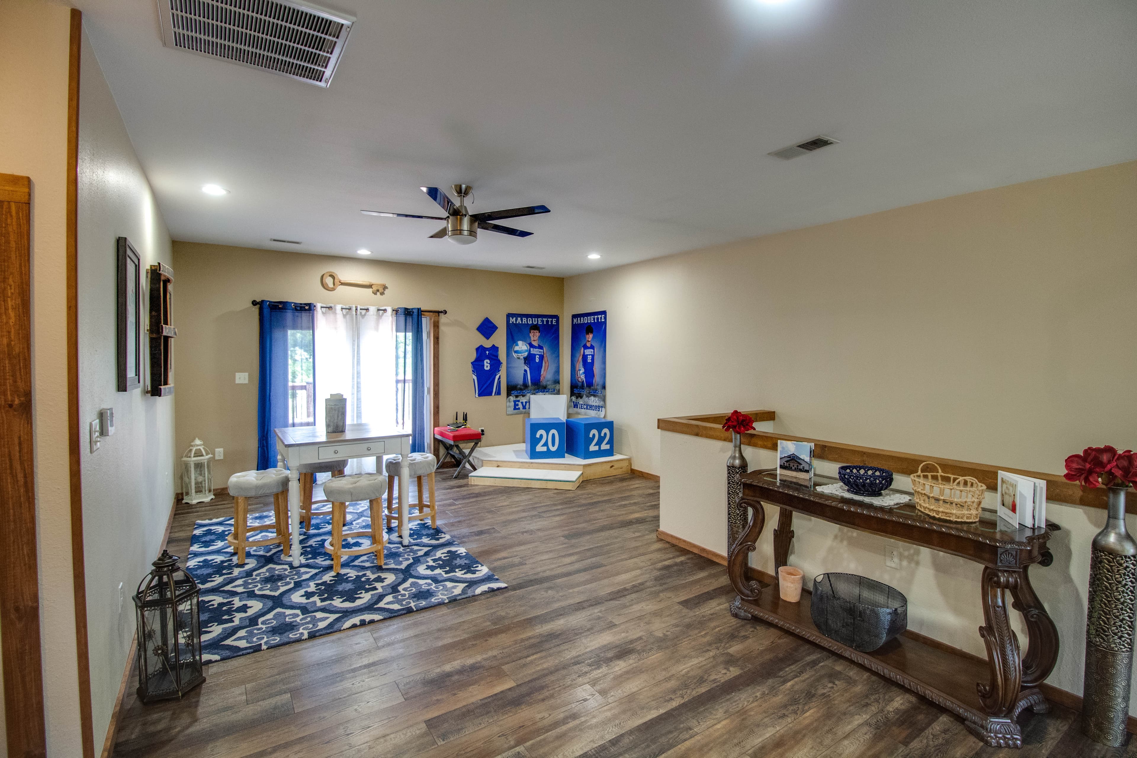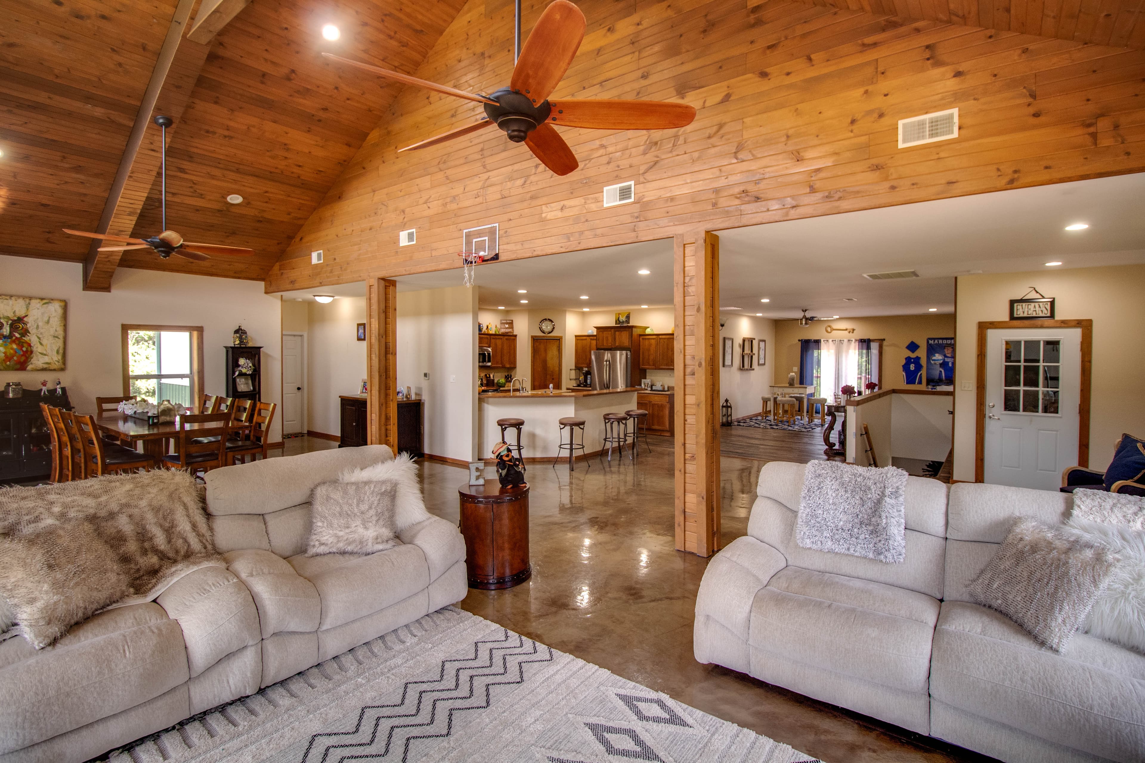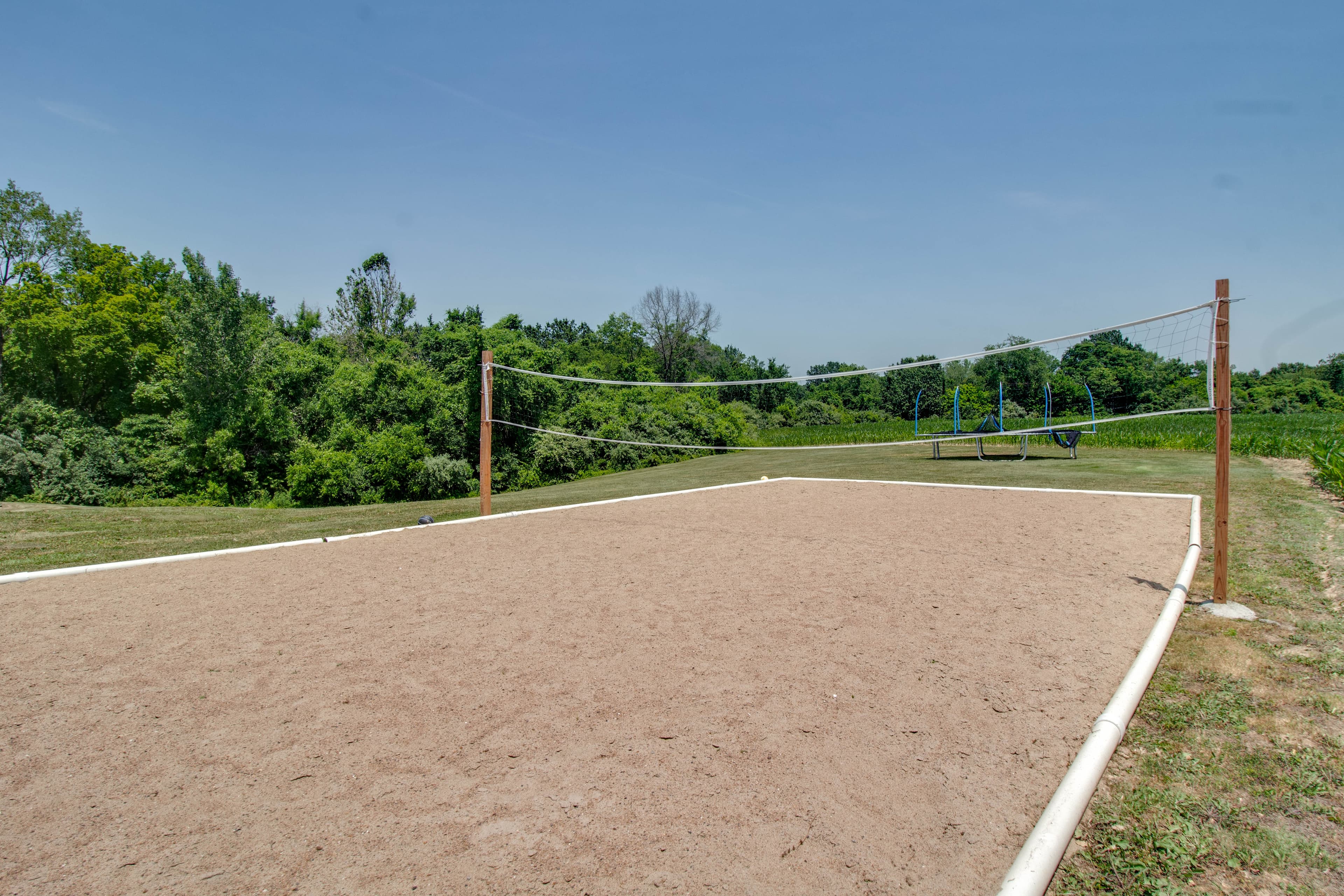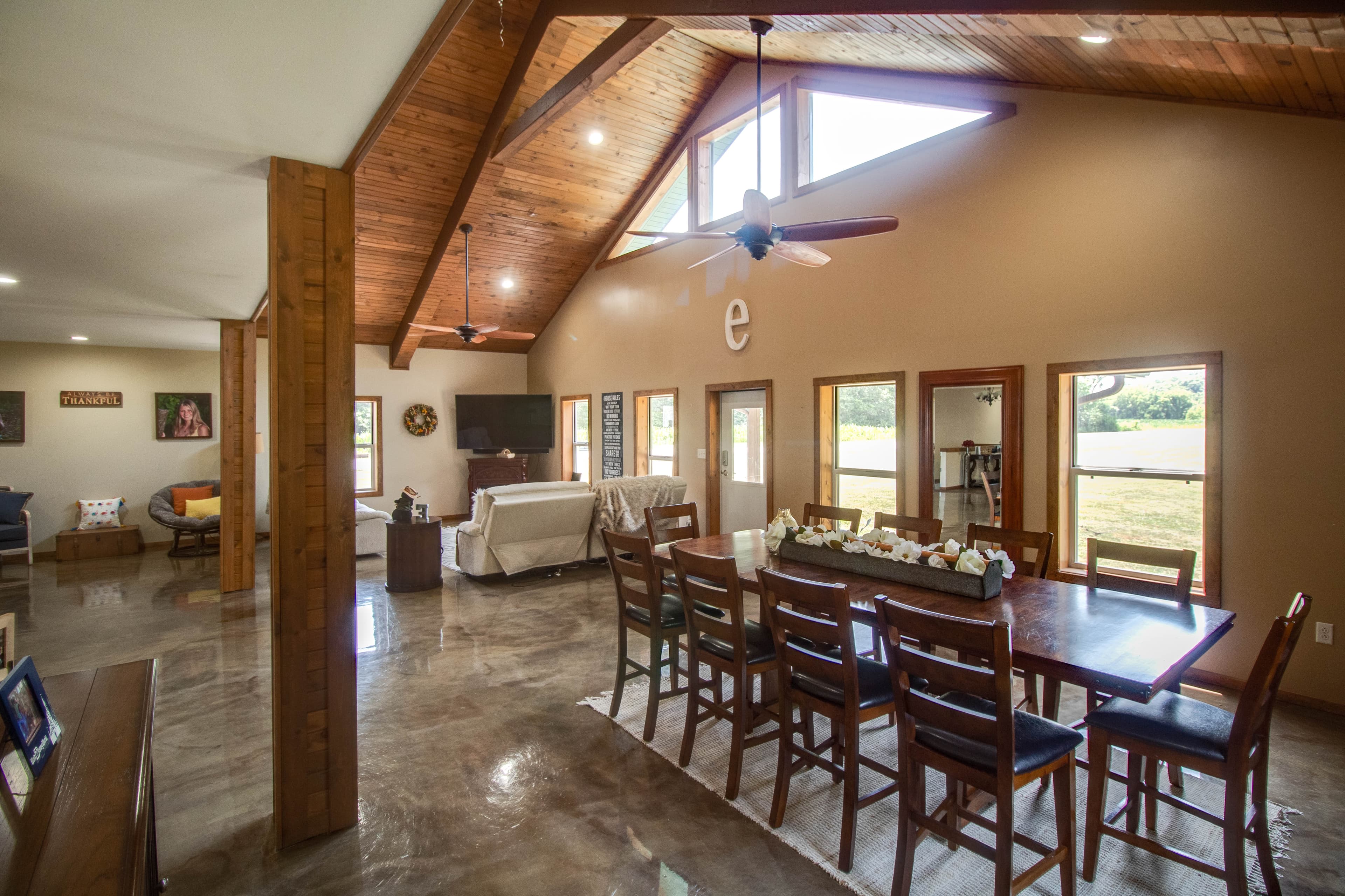 Tastefully designed pole barn house situated on 5 acres in a nice country setting. This home offers a wonderful open floor plan, vaulted ceilings, custom kitchen cabinetry, epoxy floors, spacious main floor, walkout basement, large deck, covered front porch and much more. In addition to the attached garage there is an outbuilding with a concrete floor. The lot offers seclusion and plenty of room for enjoyment. Also included is a recently built sand volleyball court.