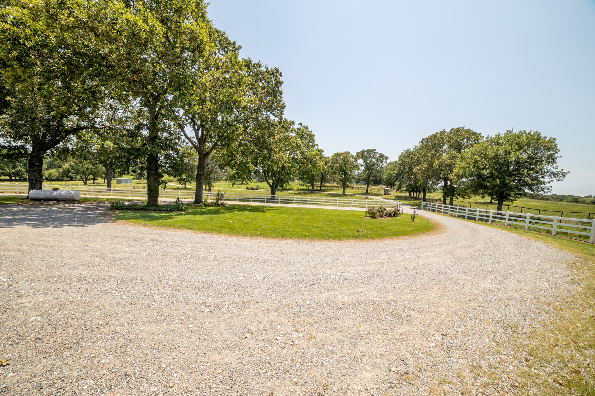 The road winds past a good fishing pond that appears to never go dry. The home is surrounded by a white acrylic fence and is landscaped with Crape Myrtle trees and flowers. The grounds have a set of steel pens with a holding pen. The owner is running 8 mama cows and 6 babies. There is a loafing shed.