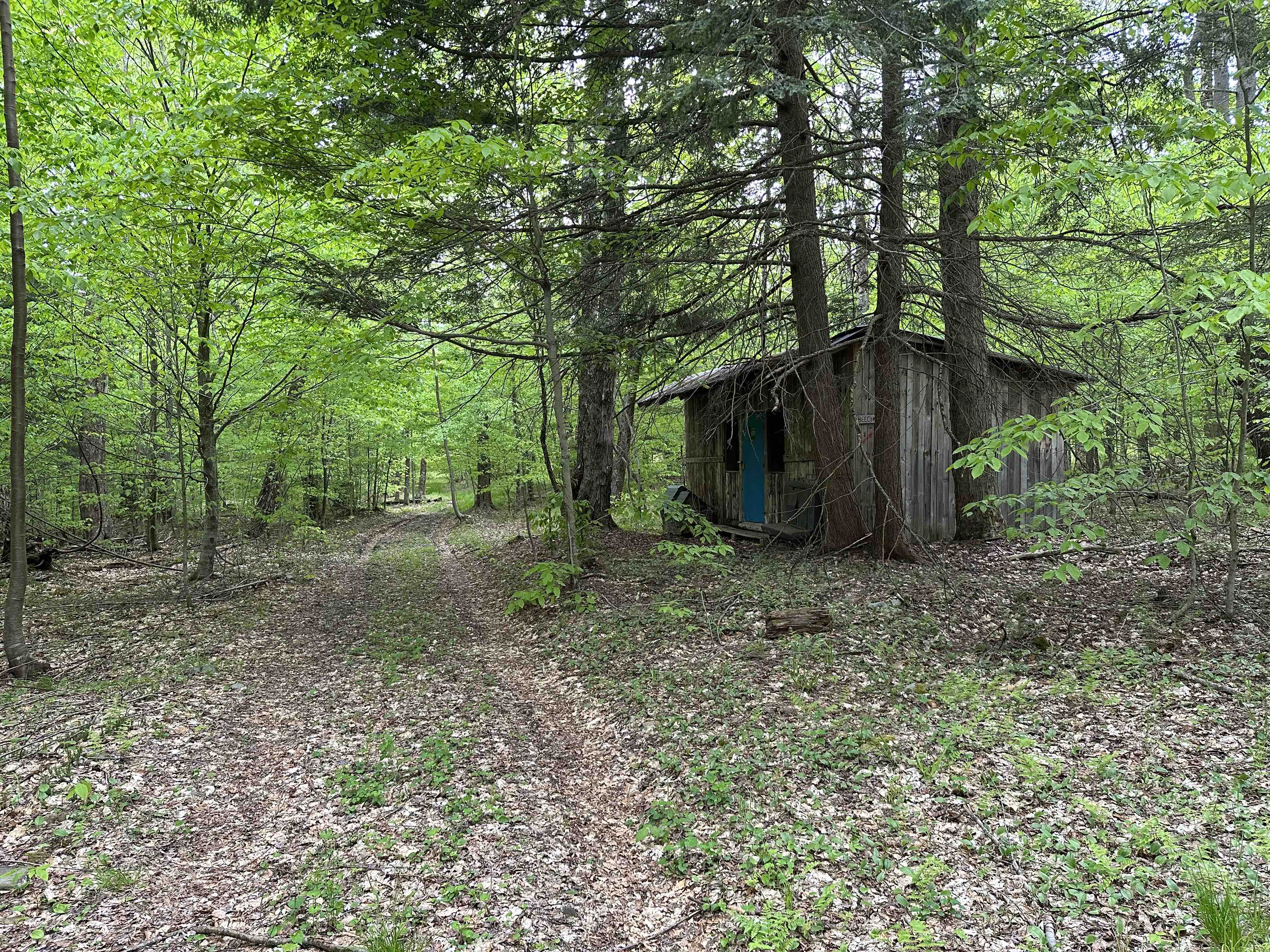 There are trails in the woods, now being used by deer, with some trails leading to small bunk houses with metal roofs that have bunks in them set up to hold 6 to 10 kids. Surprisingly, some of the bunk houses are still in usable condition! The trails continue through a forest with a good assortment of softwoods and hardwoods, some of which are definitely marketable. There is no sign of recent logging. The northwest section of the property lies along a seasonal dirt road that is a border of the 3,181 acre Genegantslet State Forest, which is additional land available for hunting and fishing.