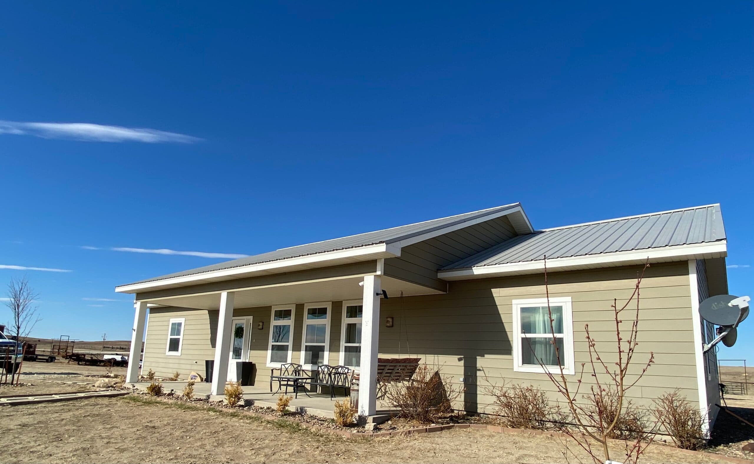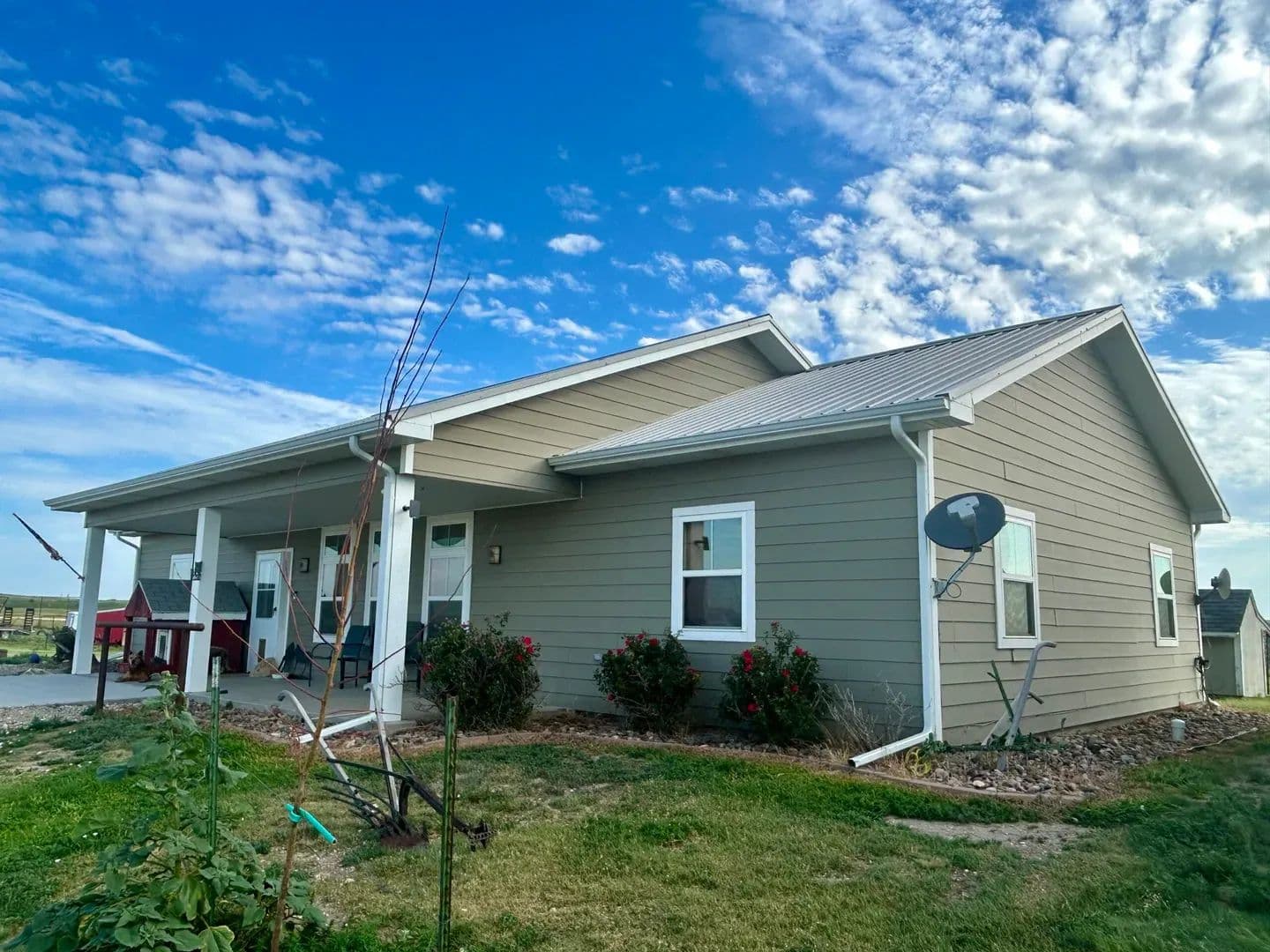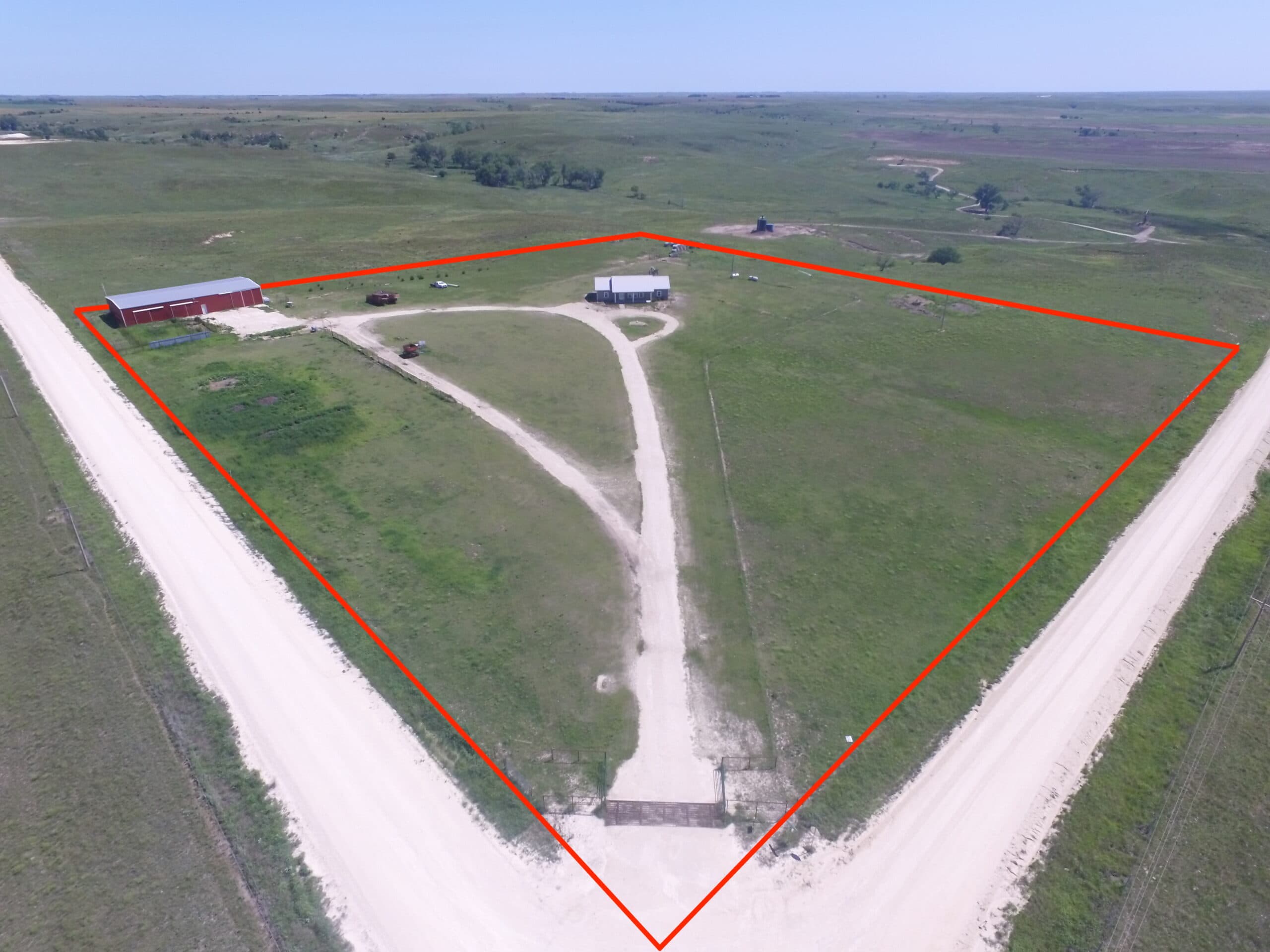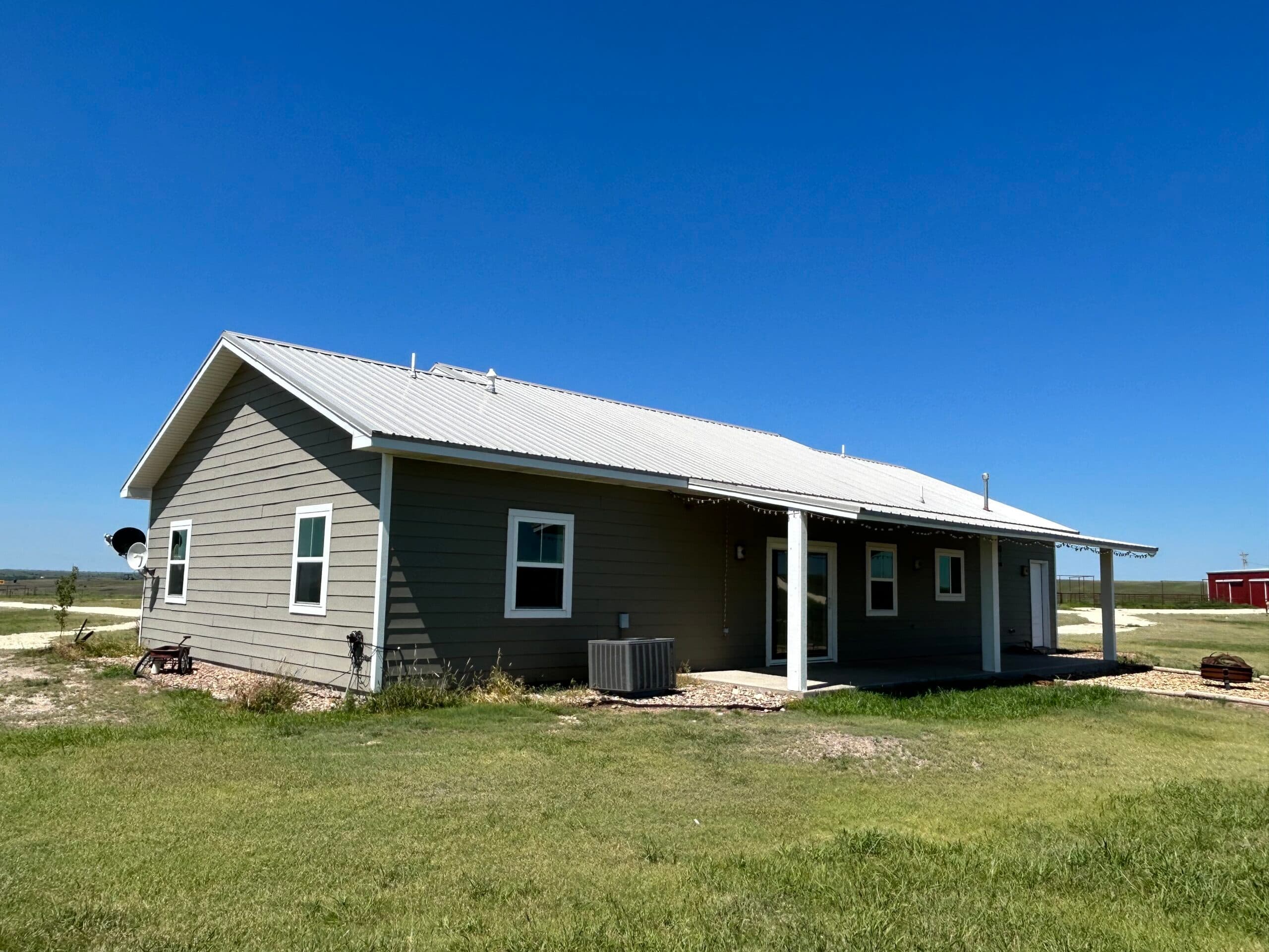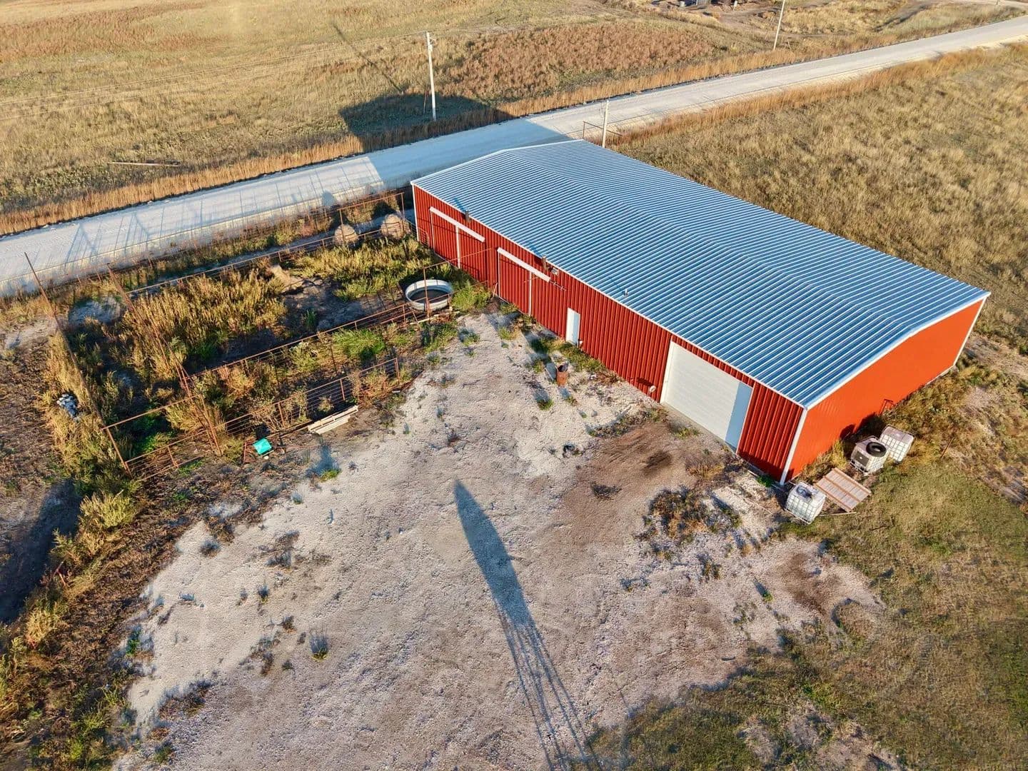 This country property features a beautiful, move-in ready home, detached garage and a large shop located northwest of Hays, Kansas. Improvements Built in 2011, this Ranch style home has around 1800 square feet of finished living space. The home has a steel frame with a metal roof and concrete siding. It is highlighted by an open concept main room that has 18 foot vaulted ceilings and large windows that allow plenty of natural light. The home has 3 bedrooms and 2 bathrooms including the master suite. The master closet also serves as a concrete storm shelter. The home is on a water well, septic system and propane. There is also a reverse osmosis system. Enjoy the peace and quiet this property has to offer on either one of the two covered porches on the house.