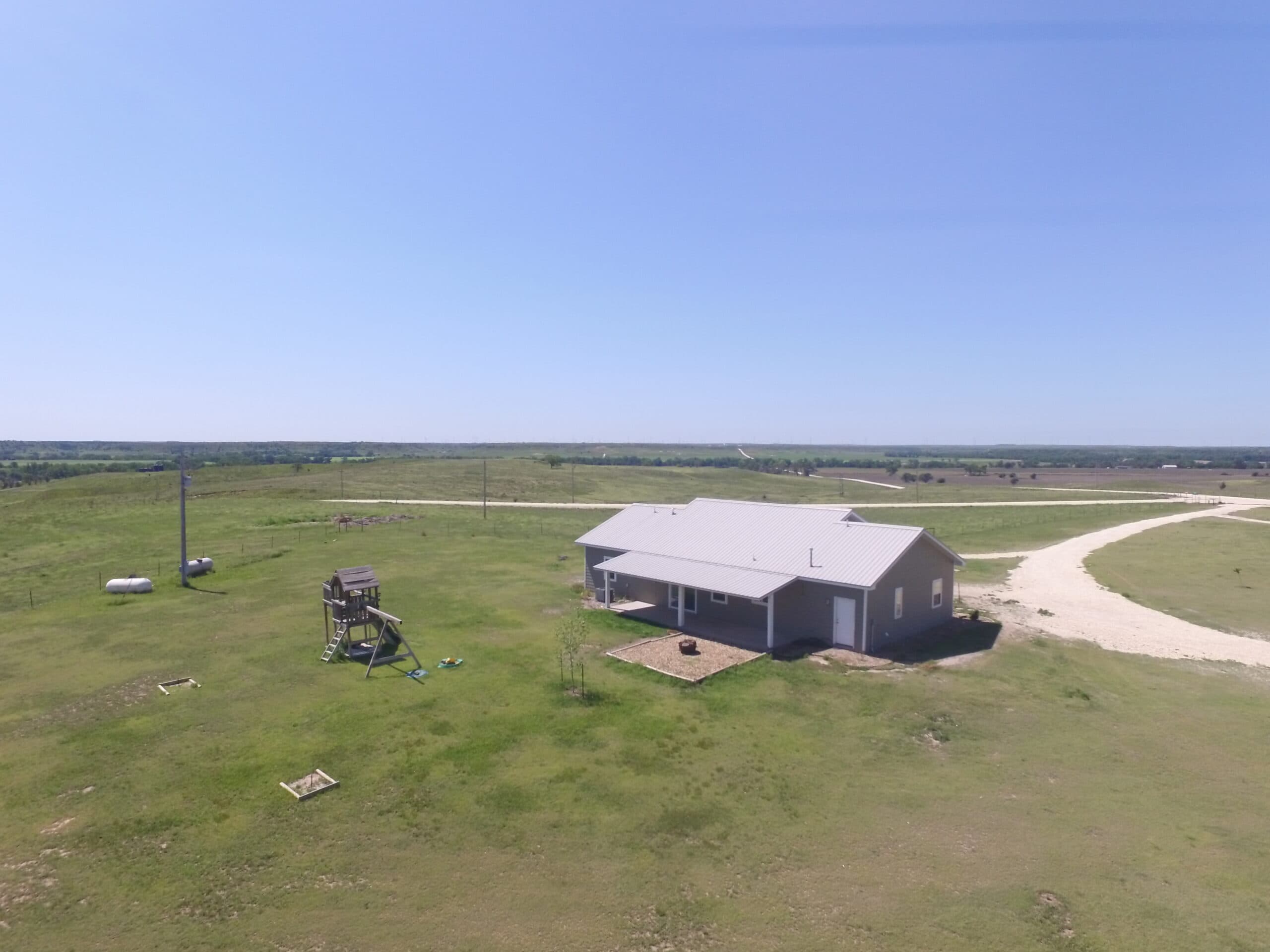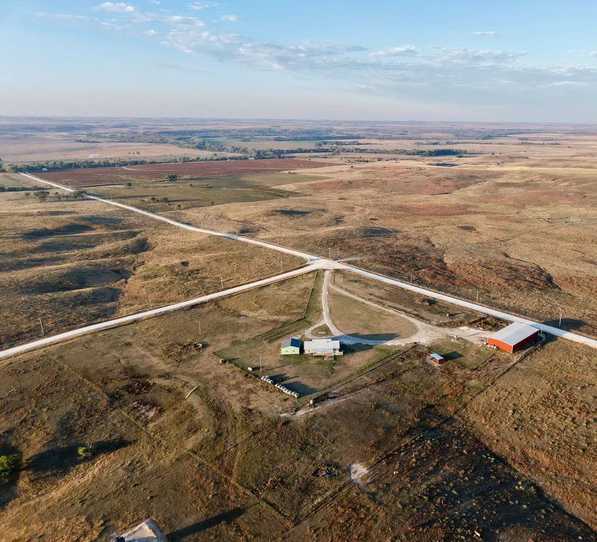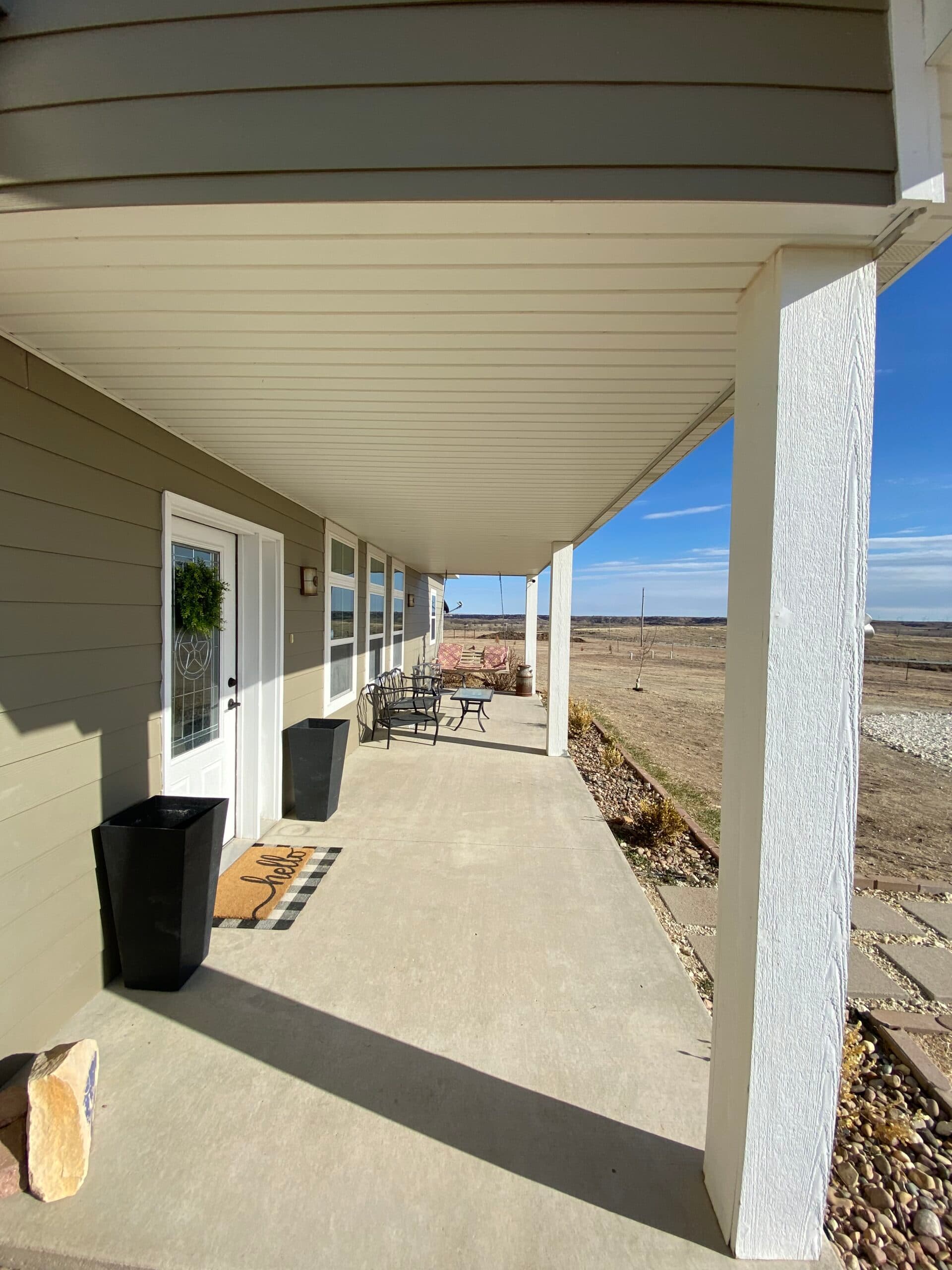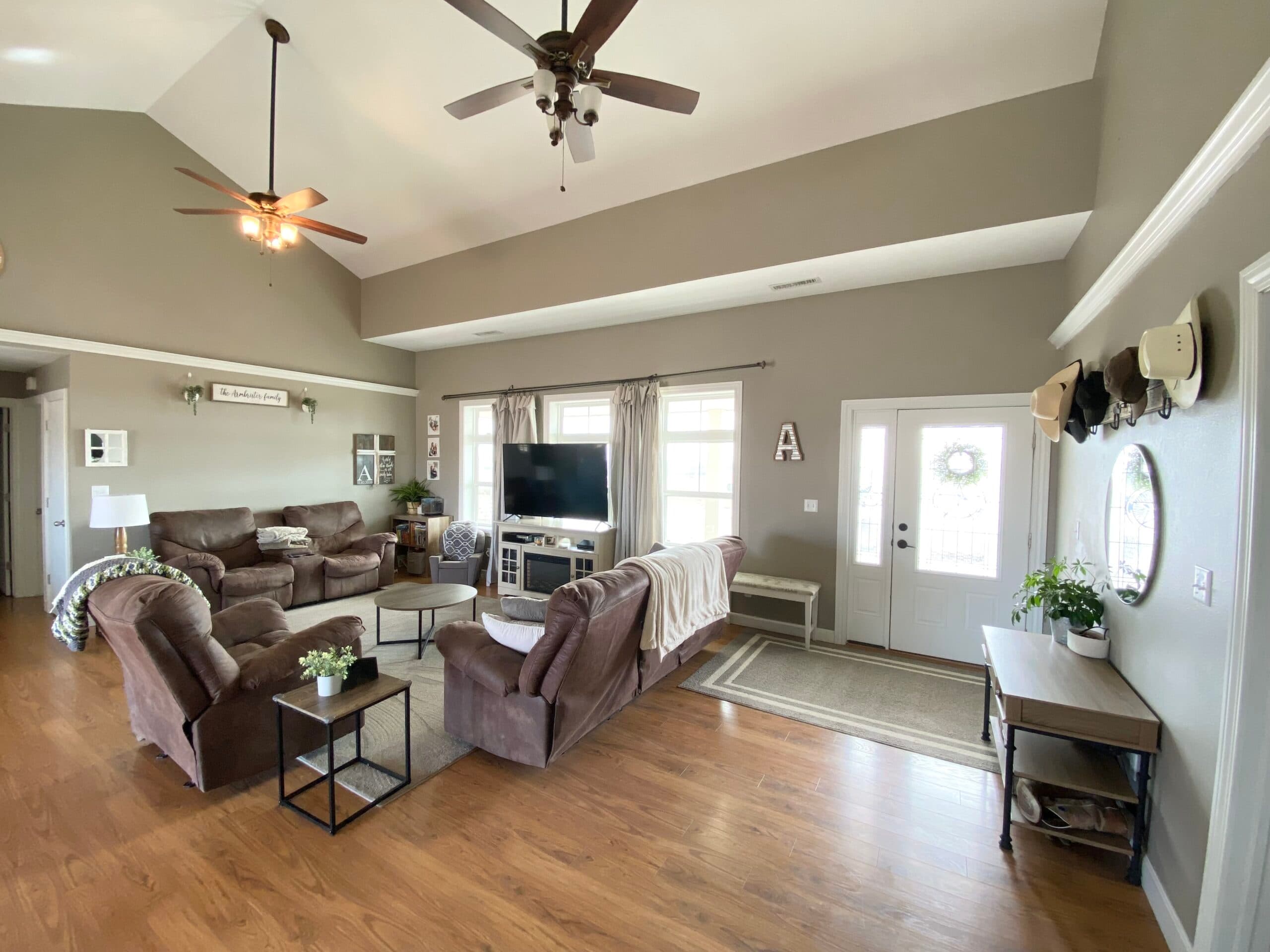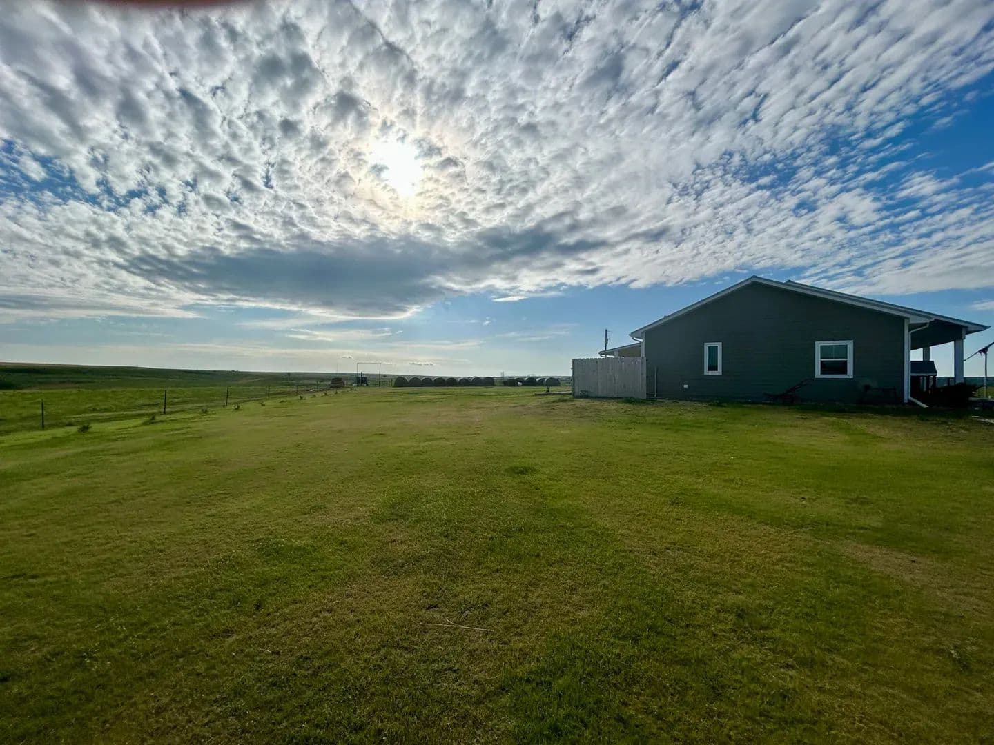 This country property features a beautiful, move-in ready home, detached garage and a large shop located northwest of Hays, Kansas. Improvements Built in 2011, this Ranch style home has around 1800 square feet of finished living space. The home has a steel frame with a metal roof and concrete siding. It is highlighted by an open concept main room that has 18 foot vaulted ceilings and large windows that allow plenty of natural light. The home has 3 bedrooms and 2 bathrooms including the master suite. The master closet also serves as a concrete storm shelter. The home is on a water well, septic system and propane. There is also a reverse osmosis system. Enjoy the peace and quiet this property has to offer on either one of the two covered porches on the house.